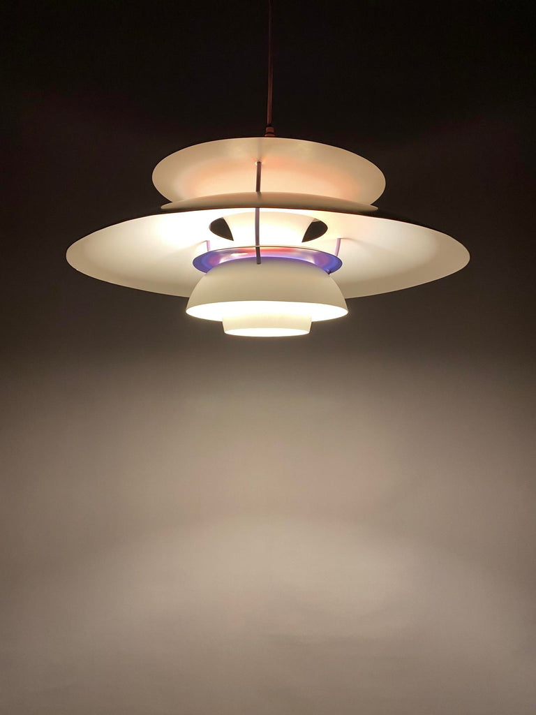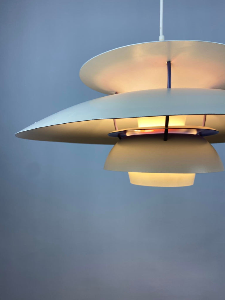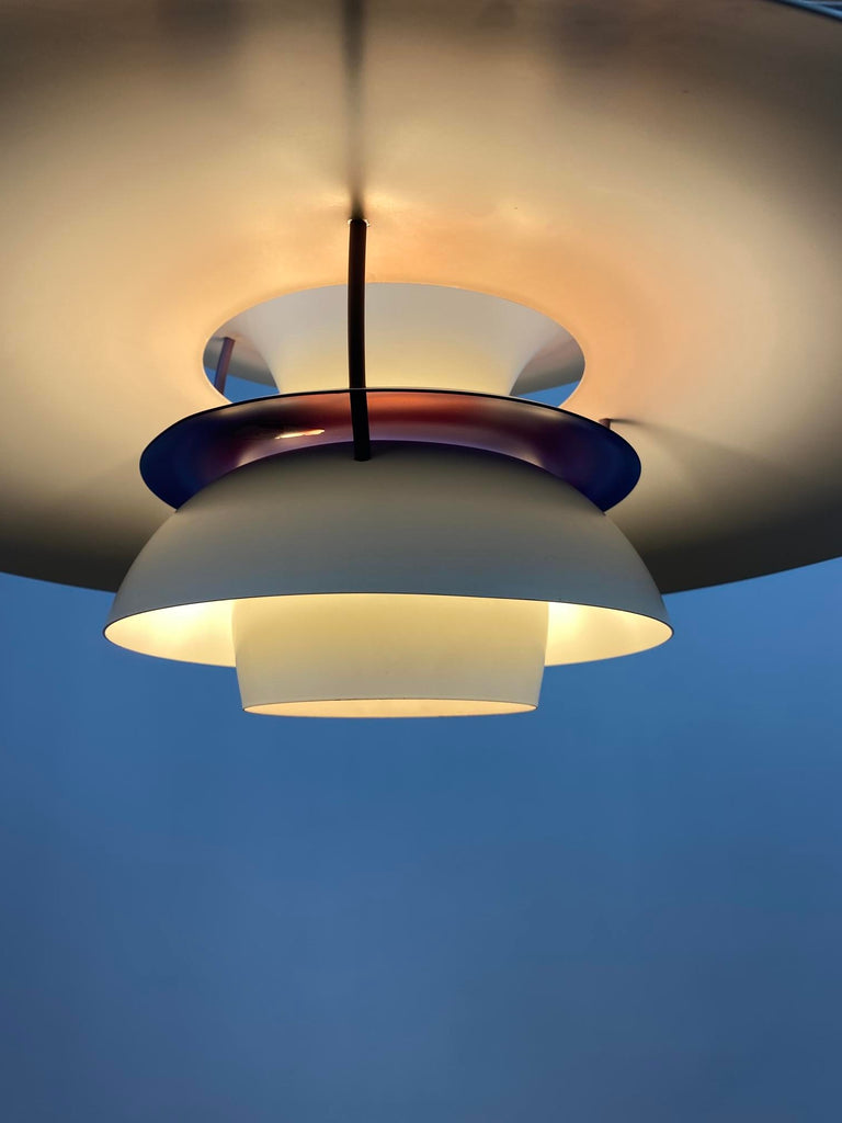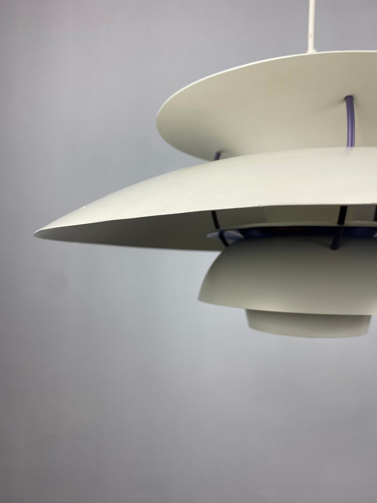 White and purple PH5 pendant light by Poul Henningsen for Louis Poulsen
