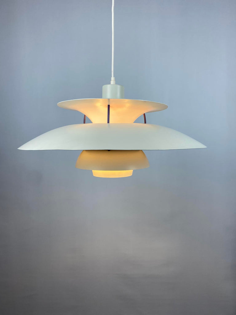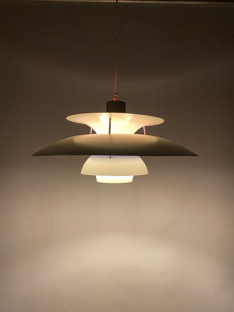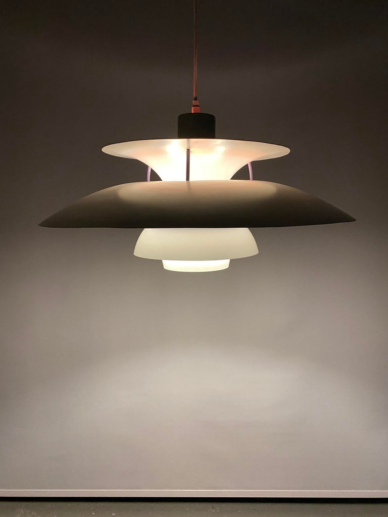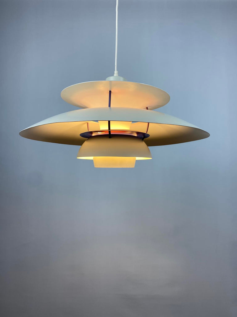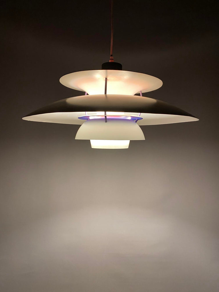White and purple PH5 pendant light by Poul Henningsen for Louis Poulsen