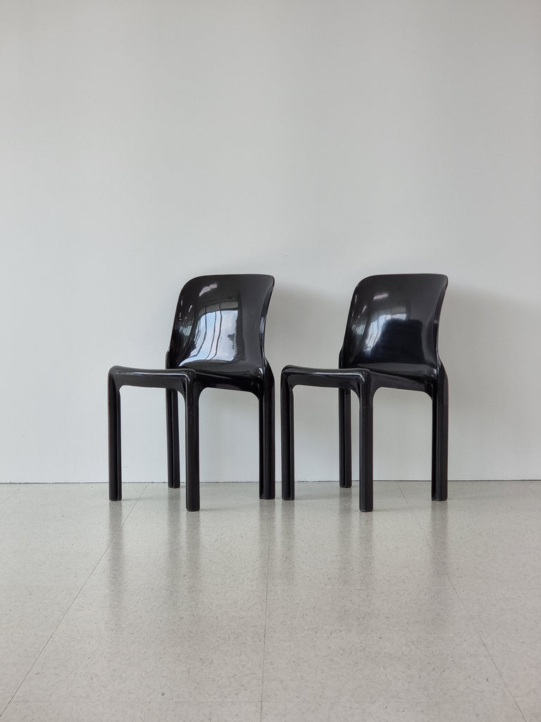 Modern Italian Black Plastic Selene Chairs by Vico Magistretti for Artemide