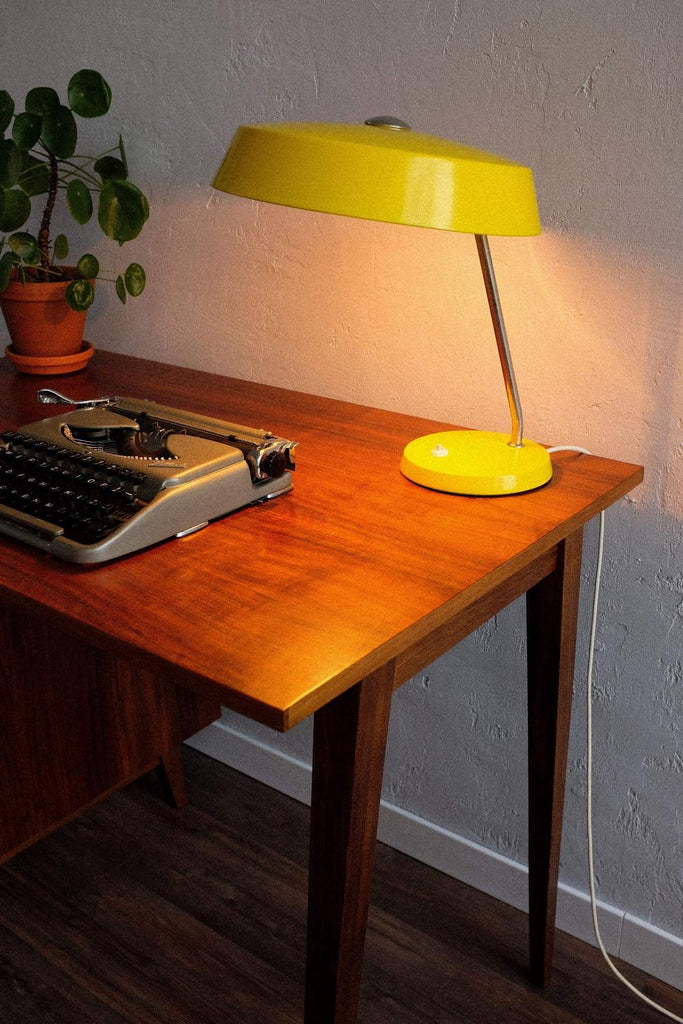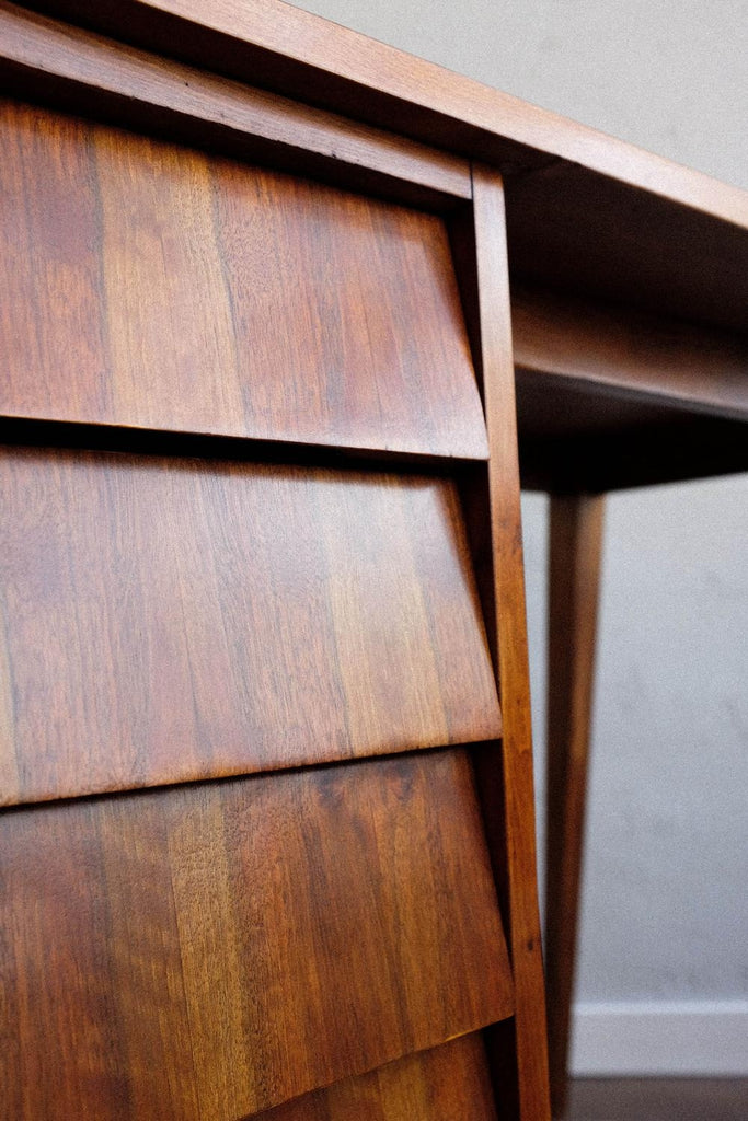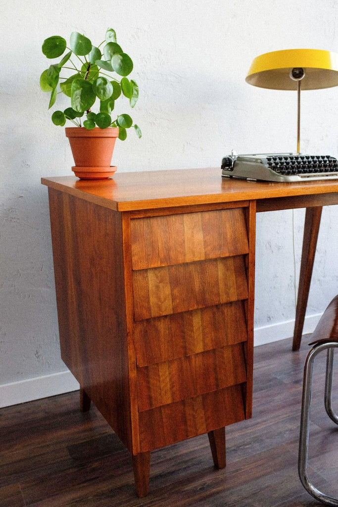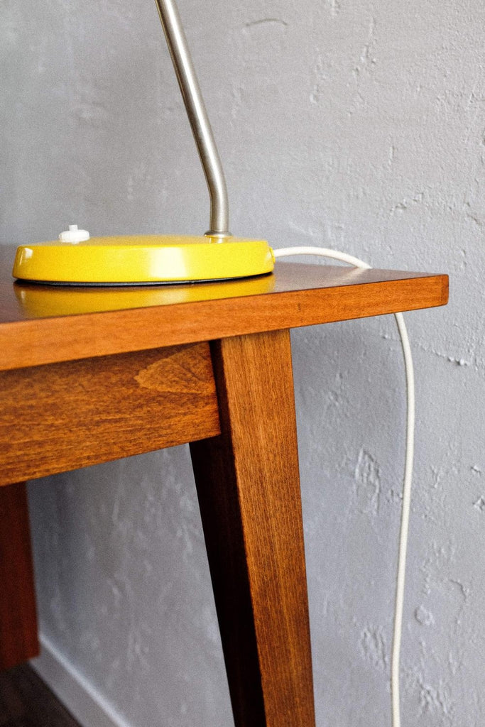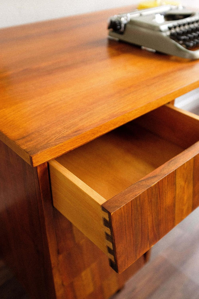 60년대 체코슬로바키아에서 제작된 완전히 복원된 빈티지 원목 책상. 아름다운 월넛 베니어로 제작되었습니다. 매우 시대를 초월하고 미니멀한 작품.