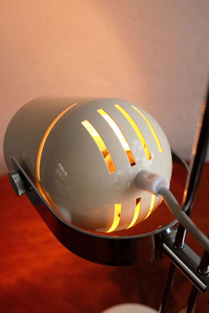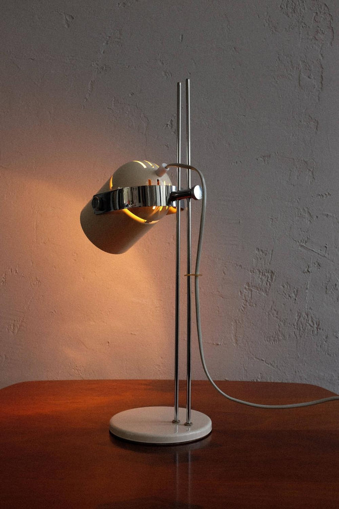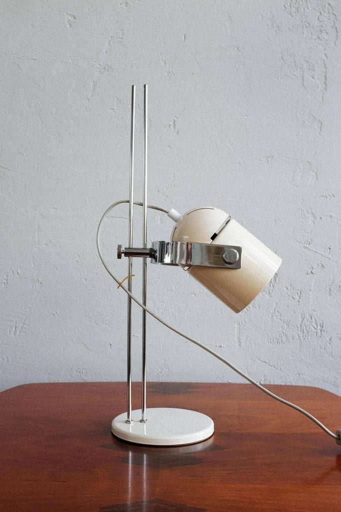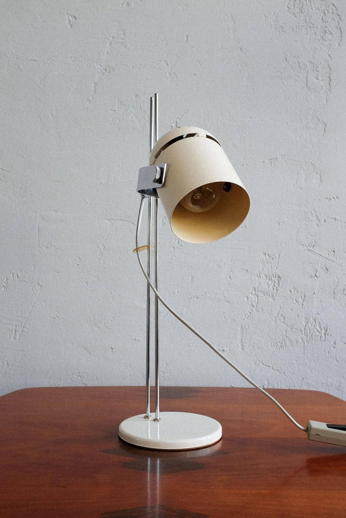70년대 체코 디자이너 Stanislav Indra가 Lidokov를 위해 디자인한 조정 가능한 빈티지 Combi Lux 테이블 램프. 램프는 원래 상태이며 세월에 따라 녹청이 있습니다. 전기 기술자가 완전히 복원하고 점검했습니다.