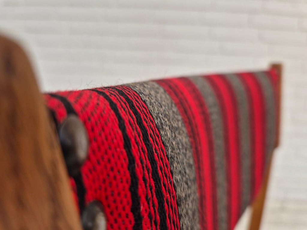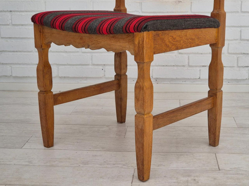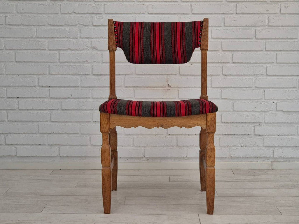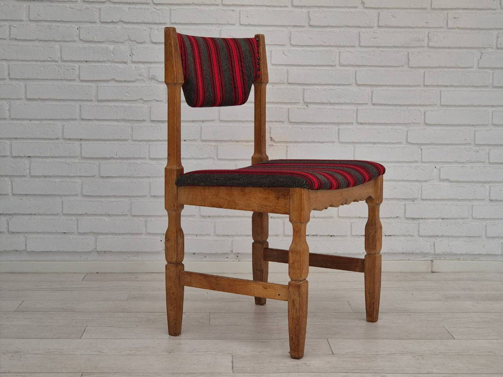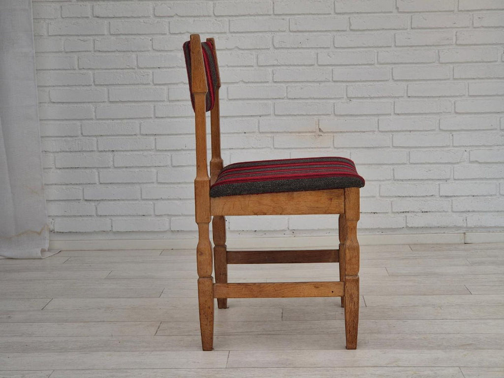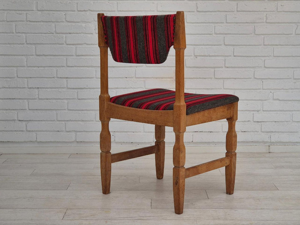 1970s, Danish design by Henning Kjærnulf, set of 4 dining chairs, original condition, oak, wool.