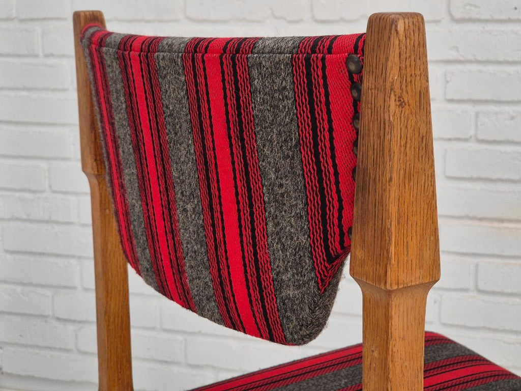 1970년대, Henning Kjærnulf의 덴마크 디자인. 원래 상태가 좋은 의자 4개 세트: 냄새도 얼룩도 없습니다. 오리지널 가구 양모, 단단한 참나무. 1970년대 덴마크 가구 제조사 EG Kvalitetsmøbler가 제조했습니다.