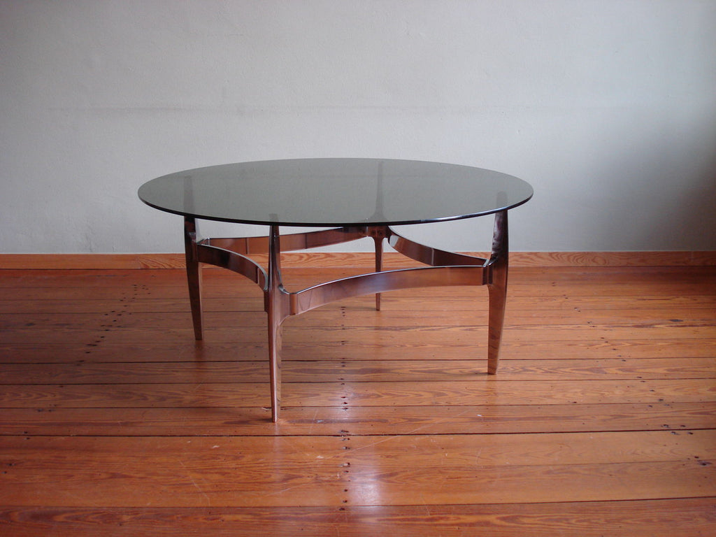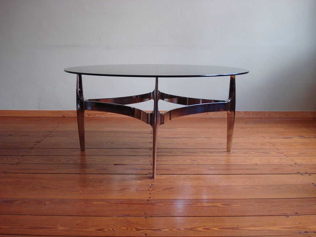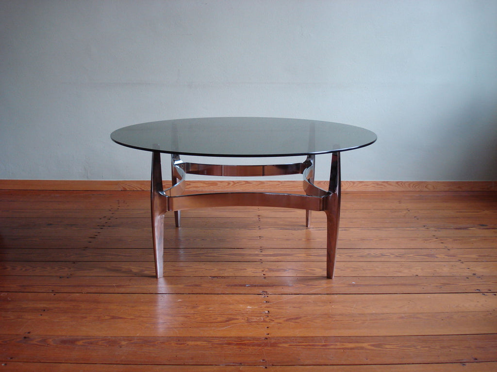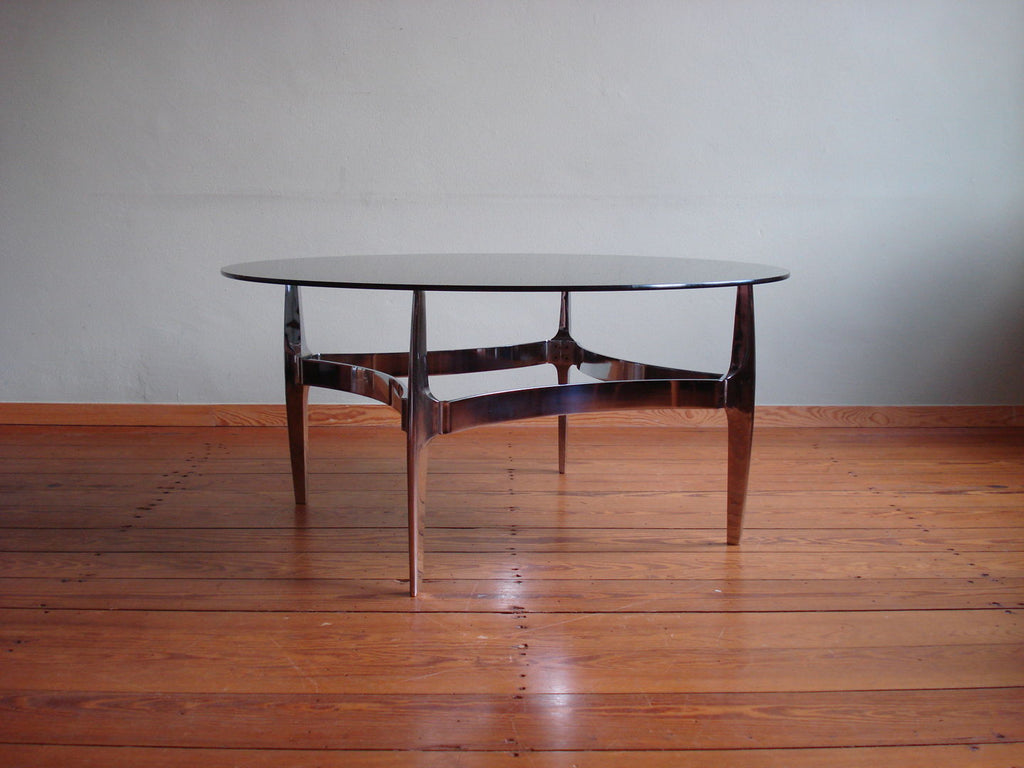 60s vintage glass and chrome coffee table by Knut Hesterberg