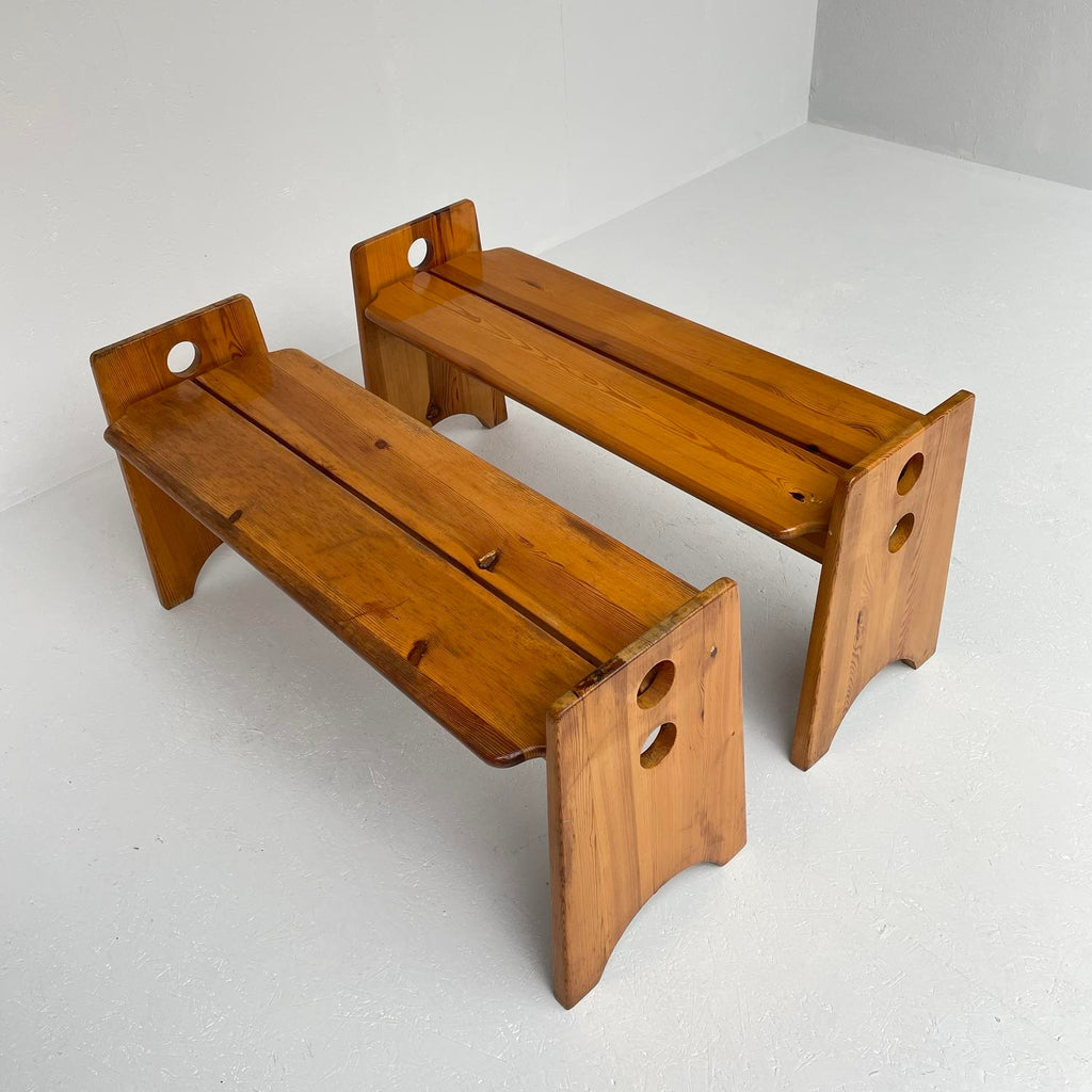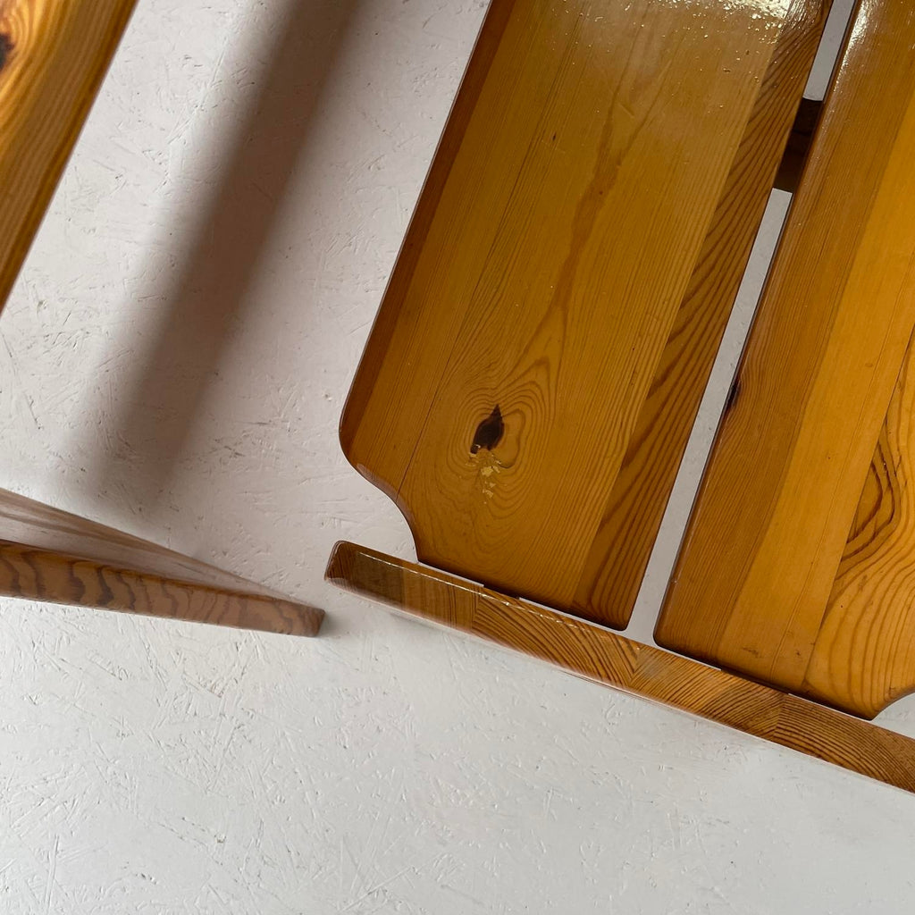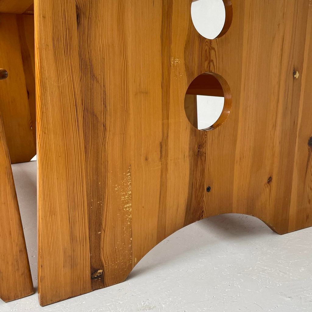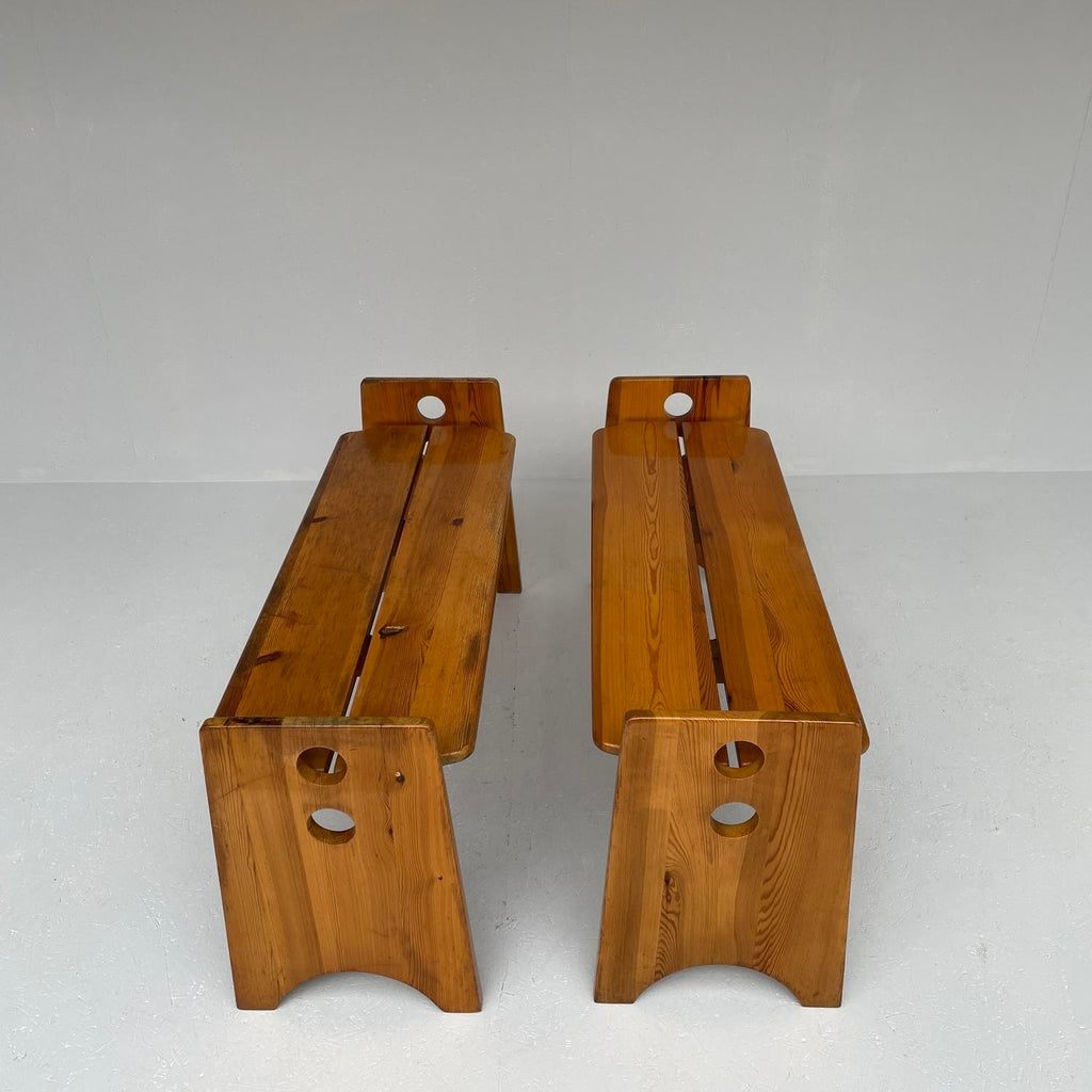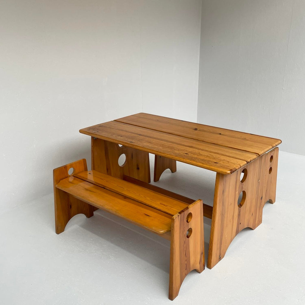 스웨덴산 원목 다이닝 세트. Furunickarn AB를 위한 Gilbert Marklund의 초안. 기간: 1969년. 이 빈티지 다이닝룸 세트에는 수제 물푸레나무 테이블과 어울리는 소파 2개가 포함되어 있습니다. 두 개의 벤치는 테이블 아래로 밀 수 있습니다. 작은 공간에 이상적입니다. 이 다이닝룸 세트는 아름다운 핀홀 연결로 수작업으로 제작되었습니다. 즐거운 식사, 게임 또는 작업. 크기: 테이블: H72 L139 W77; 벤치: L113 D35 SH45