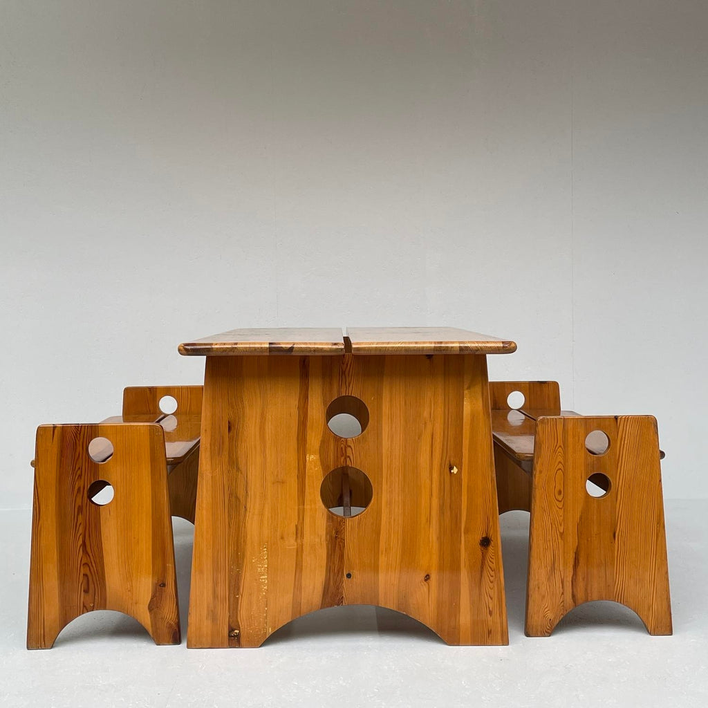 A Swedish solid wood dining set. A draft of Gilbert Marklund for Furunickarn