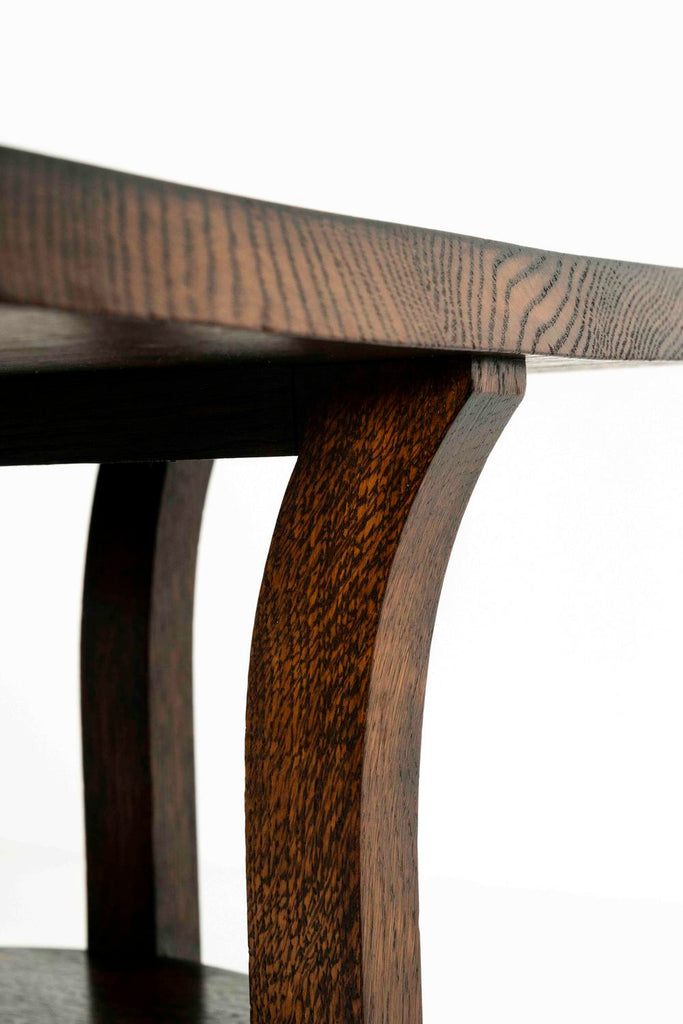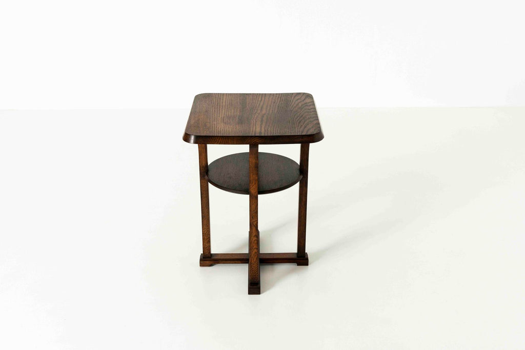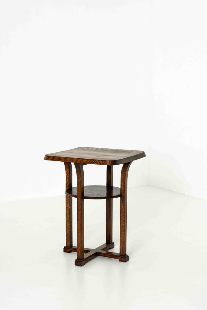 1930년대의 '운후이'로 명확하게 표시된 매력적인 암스테르담 학교 커피 테이블. 테이블에는 약간 구부러진 둥근 모서리가 있는 정사각형 모양의 상단이 있습니다. 네 개의 다리는 멋진 모양을 하고 있으며 모두 십자형으로 끝납니다. 테이블은 오래된 상태로 인해 약간의 사용감이 있으며 상단에 약간의 변형이 있는 양호한 상태입니다.