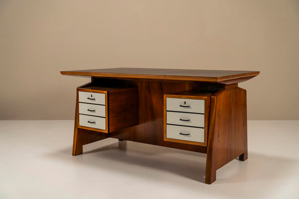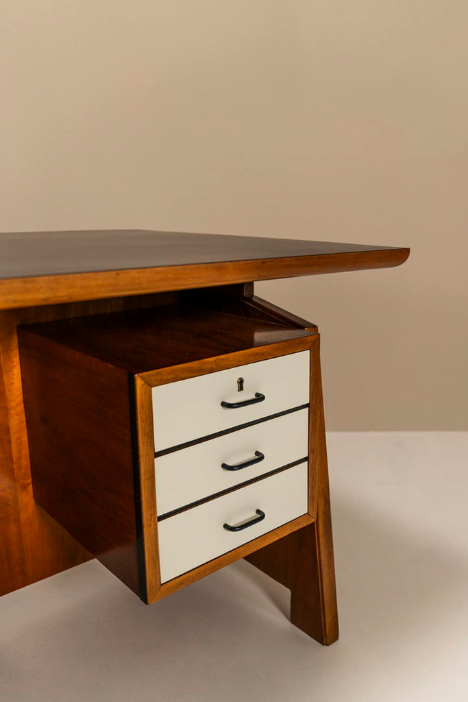 Architectural Desk In Walnut By Carlo de Carli, Italy 1950's