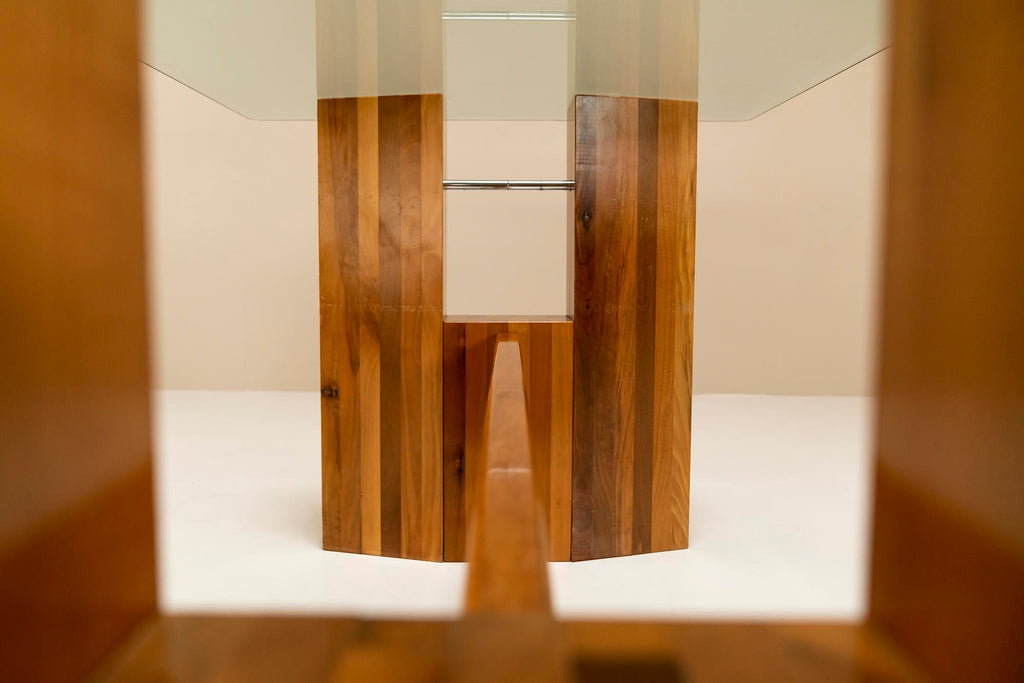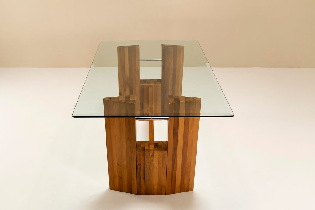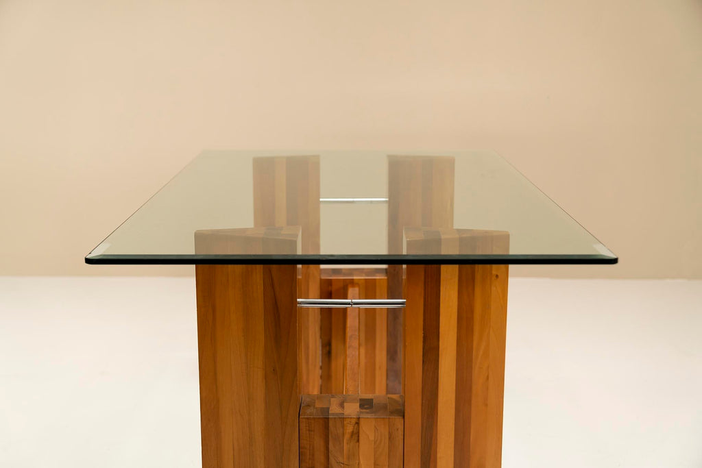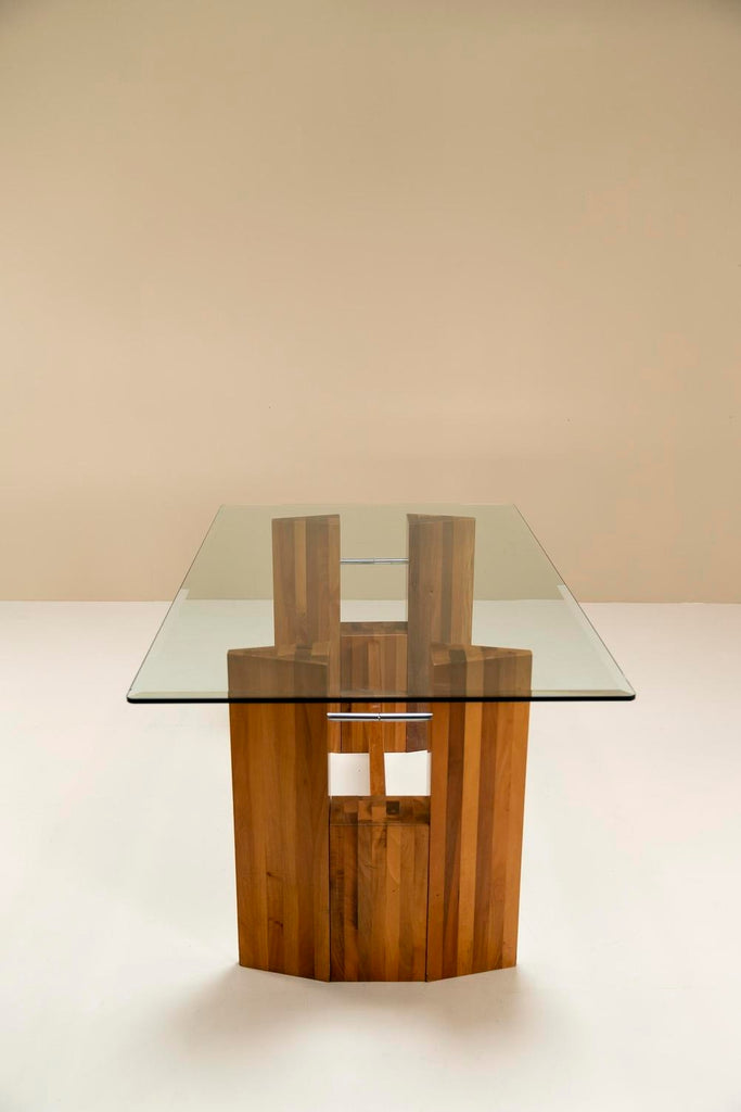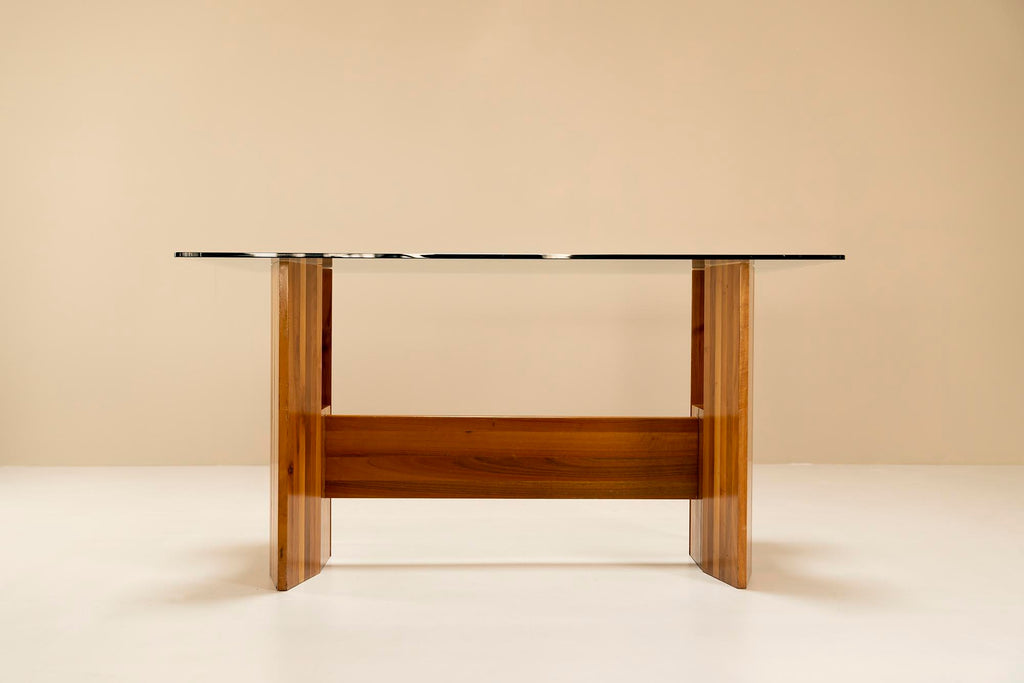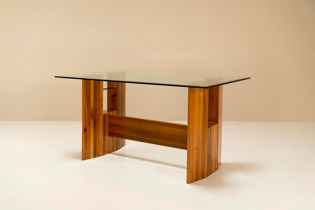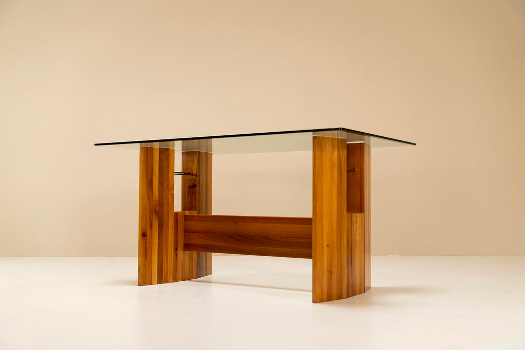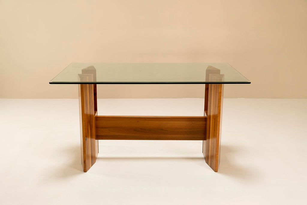 Architectural Table or Desk in Walnut and Glass, Italy 1970s