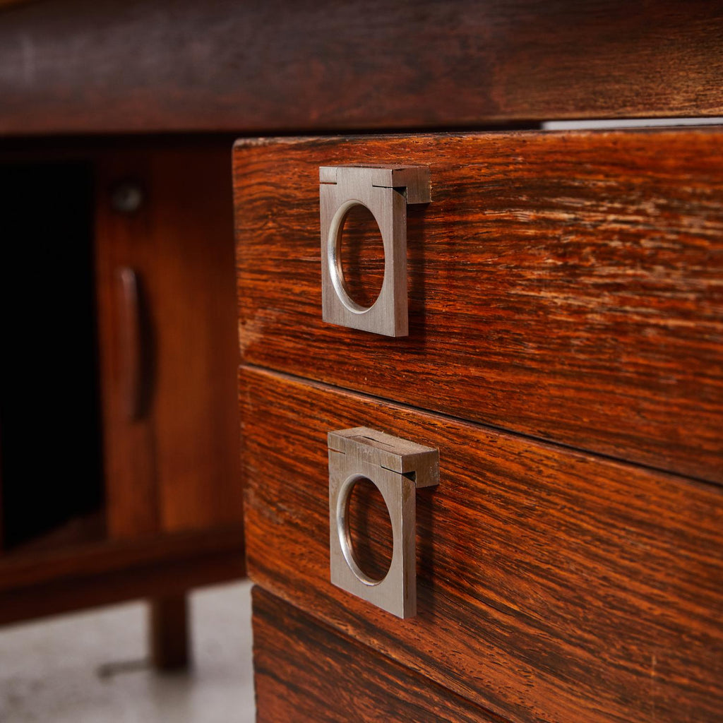 멋진 손잡이, 아름다운 디테일이 있는 로즈우드 책상, 완벽한 조화를 이루는 탬버/루버 도어가 있는 찬장과 함께 제공됩니다.