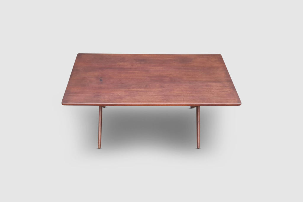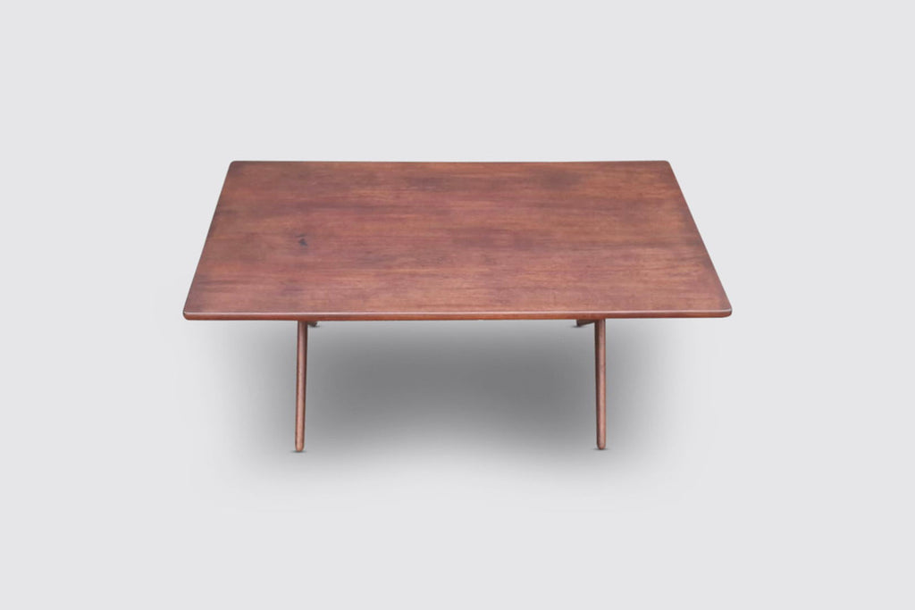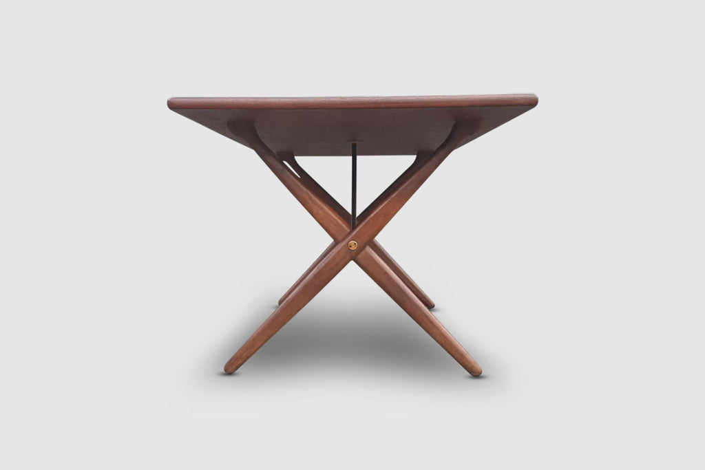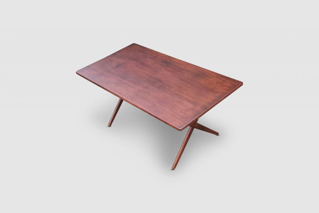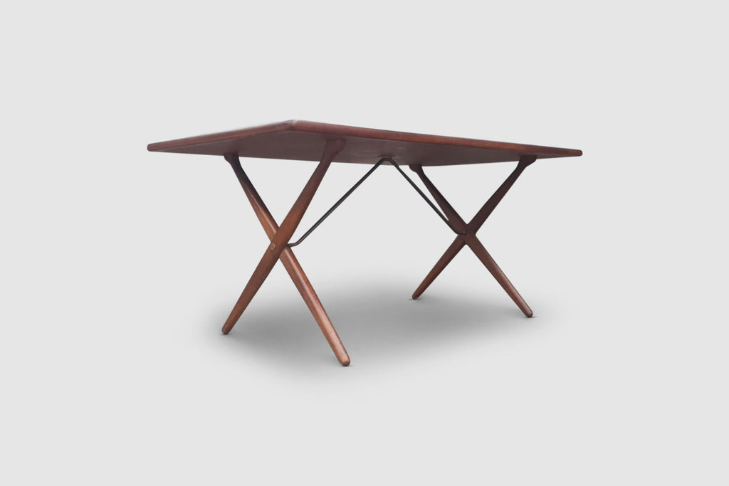 Classic Danish design by Hans Wegner; a AT-303 sawbuck dining table in solid oak, produced by Andreas Tuck Denmark in the 1950s.