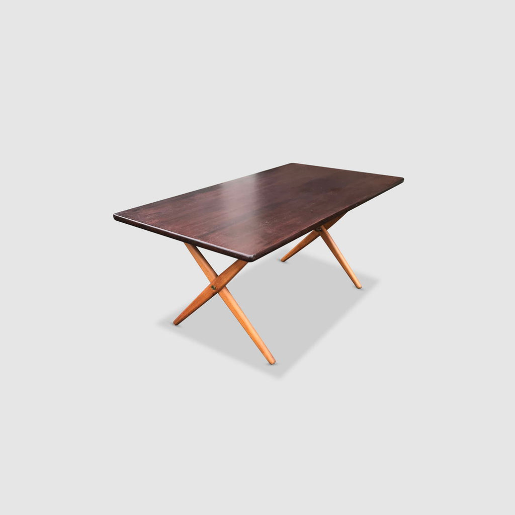 AT-303 Sawbuck oak dining table by Hans Wegner for Andreas Tuck 1950s