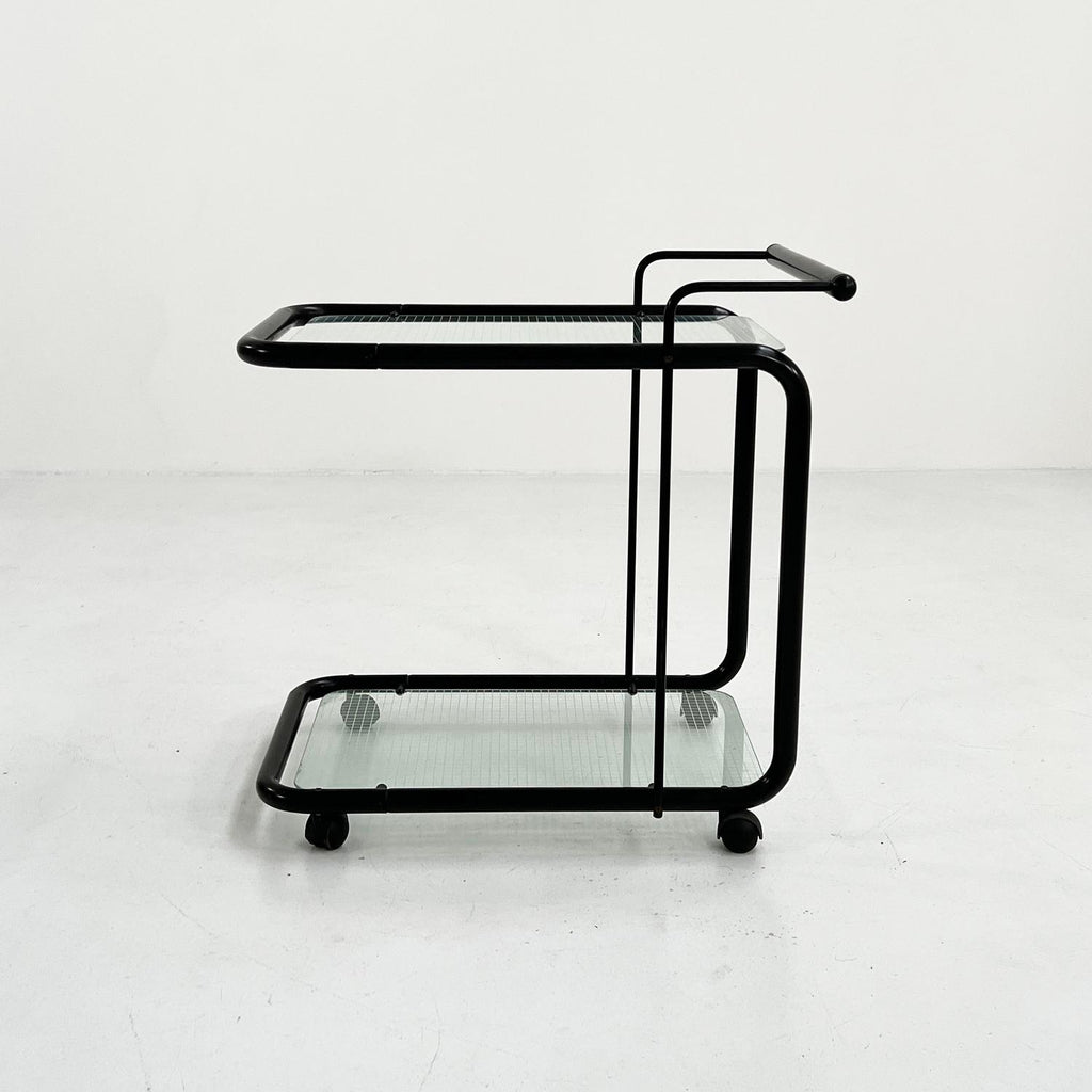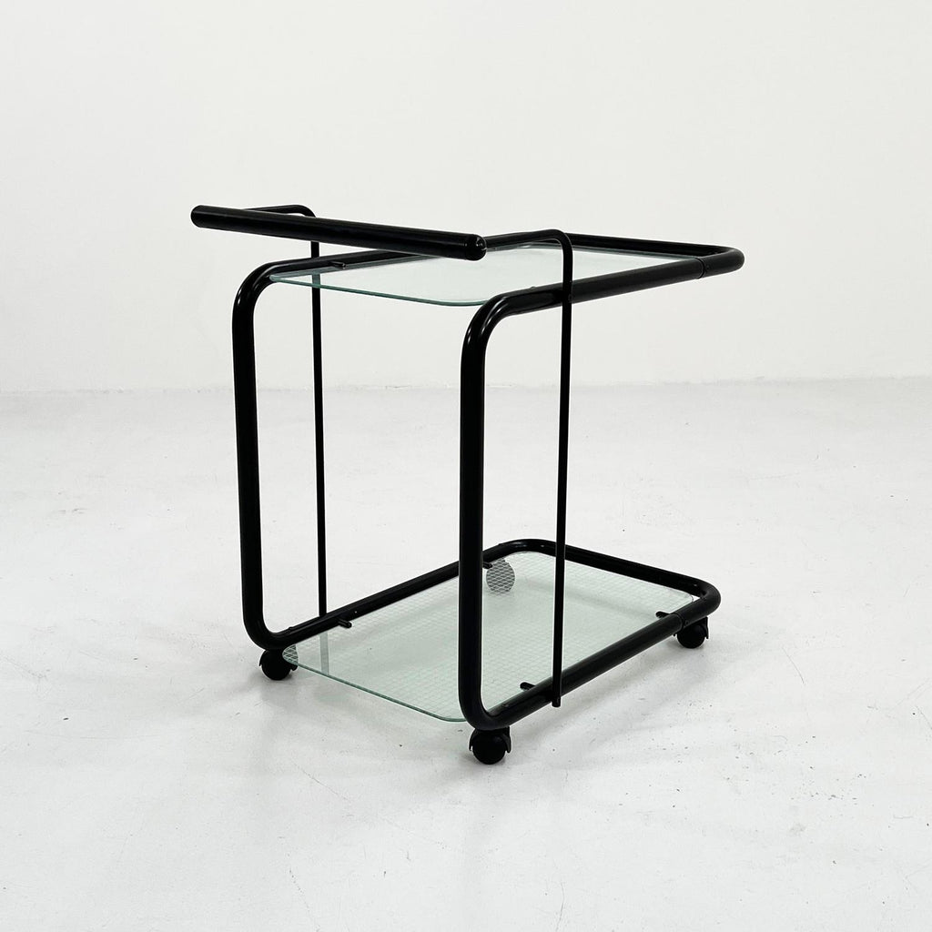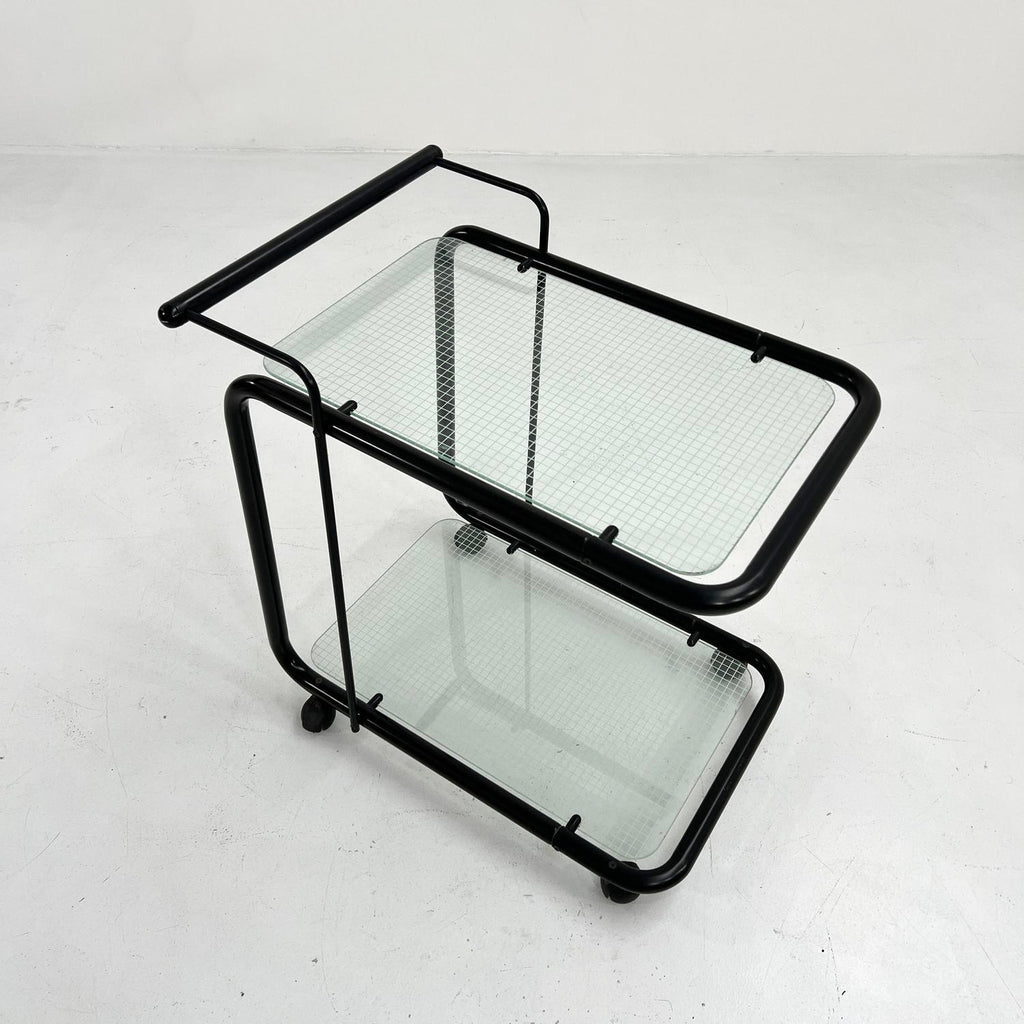 Black Postmodern Bar Wagon/Serving Trolley with Quaderna Pattern, 1980s