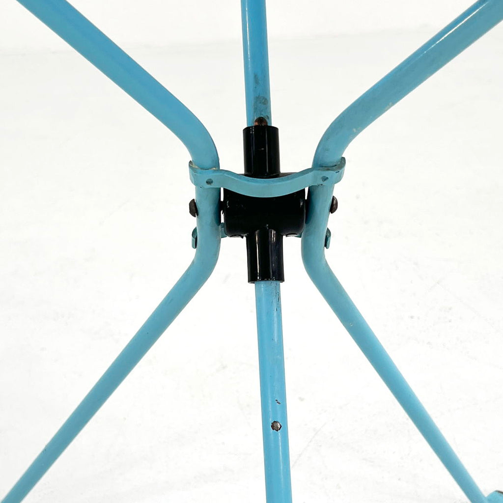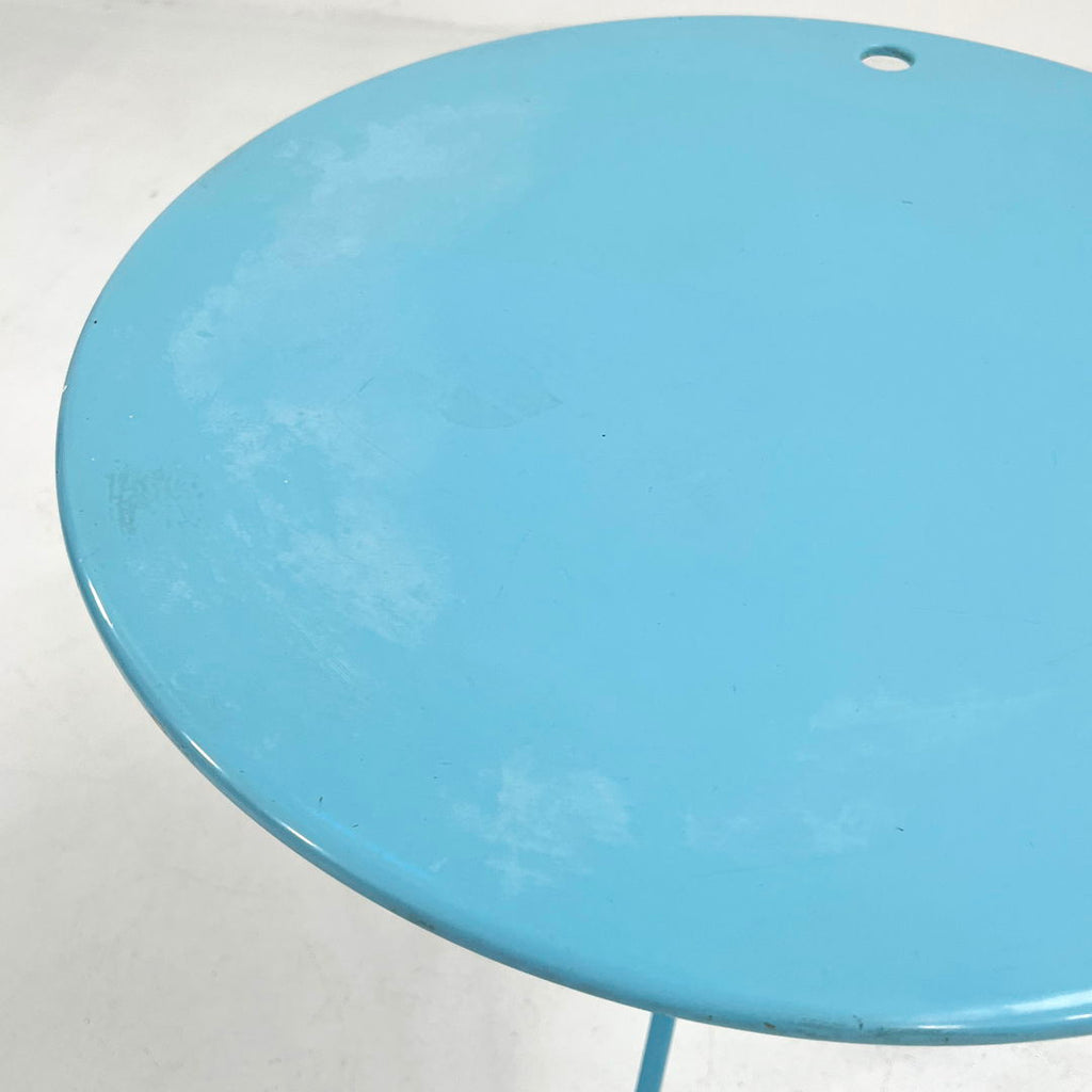 블루 쿠마노 접이식 테이블 Achille Castiglioni for Zanotta, 1970년대 디자이너 - Achille Castiglioni 프로듀서 - Zanotta 모델 - 쿠마노 접이식 테이블 디자인 기간 - 70년대 치수 - 폭 55 cm x 깊이 55 cm x 높이 70 cm 재료 - 메탈 색상 - 블루 컨디션 - 좋은 의견 - 경년 및 사용과 일치하는 가벼운 착용감. 약간의 가벼운 흠집. 테이블 보드의 한 부분에 있는 페인트의 가벼운 변색 - 세부 사항의 사진을 참조하십시오.