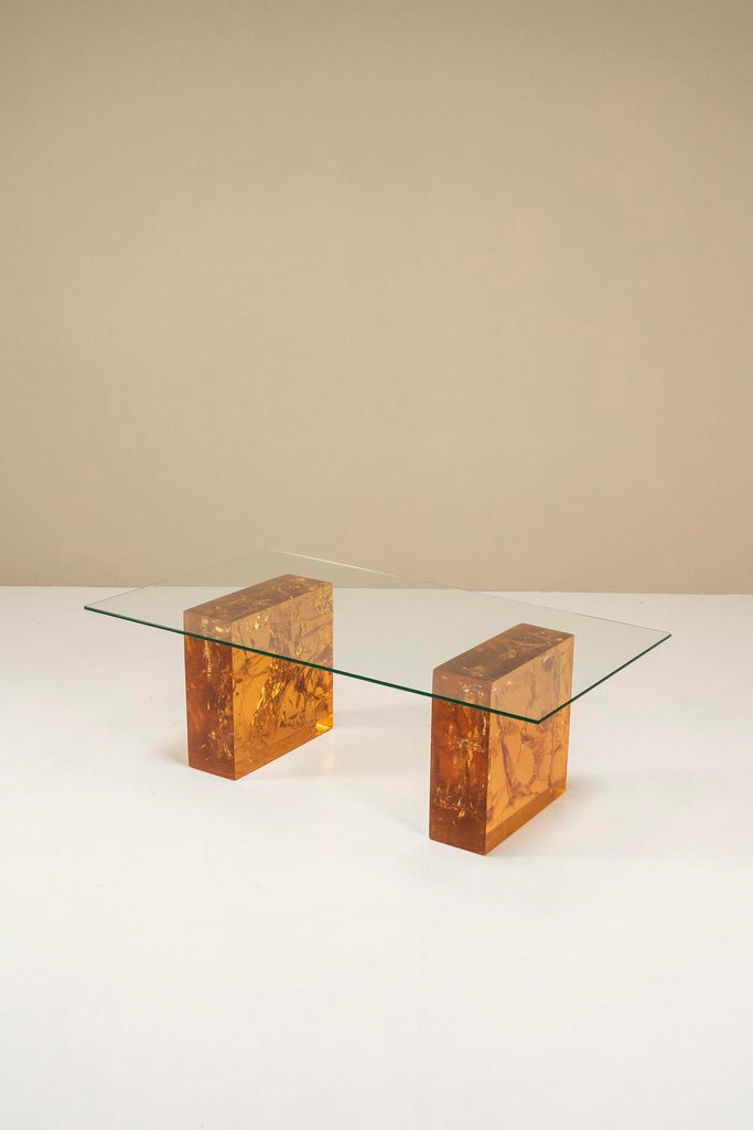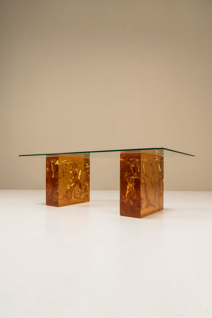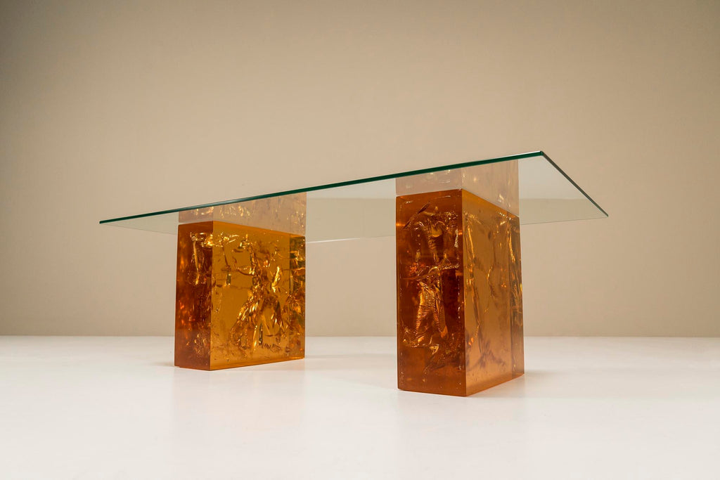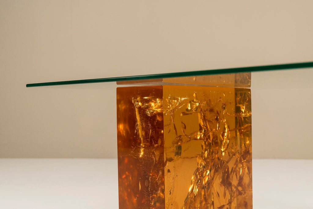 Coffee Table in Amber Fractal Resin in The Manner of Marie-Claude de Fouquières, France 1970s
