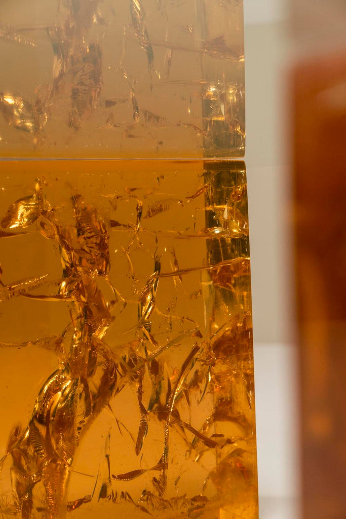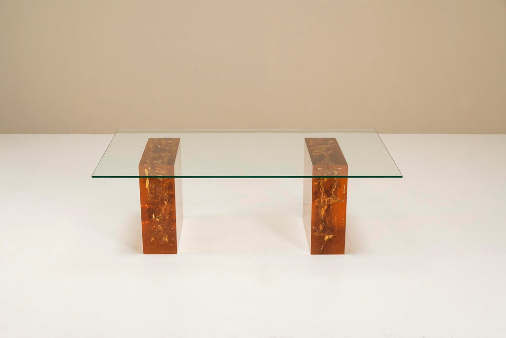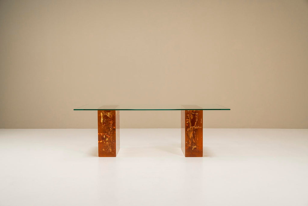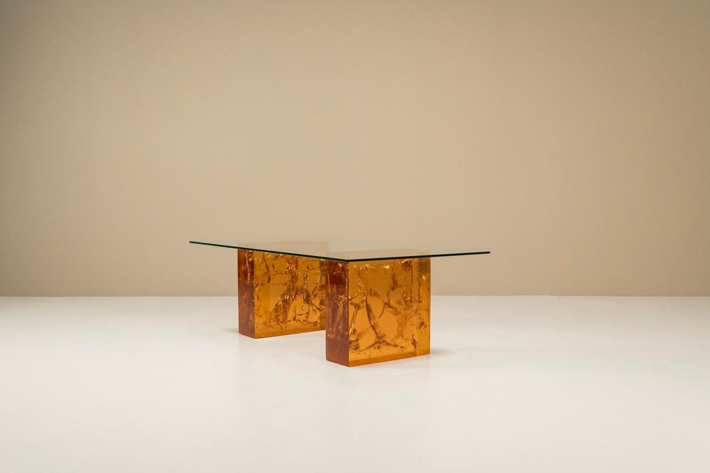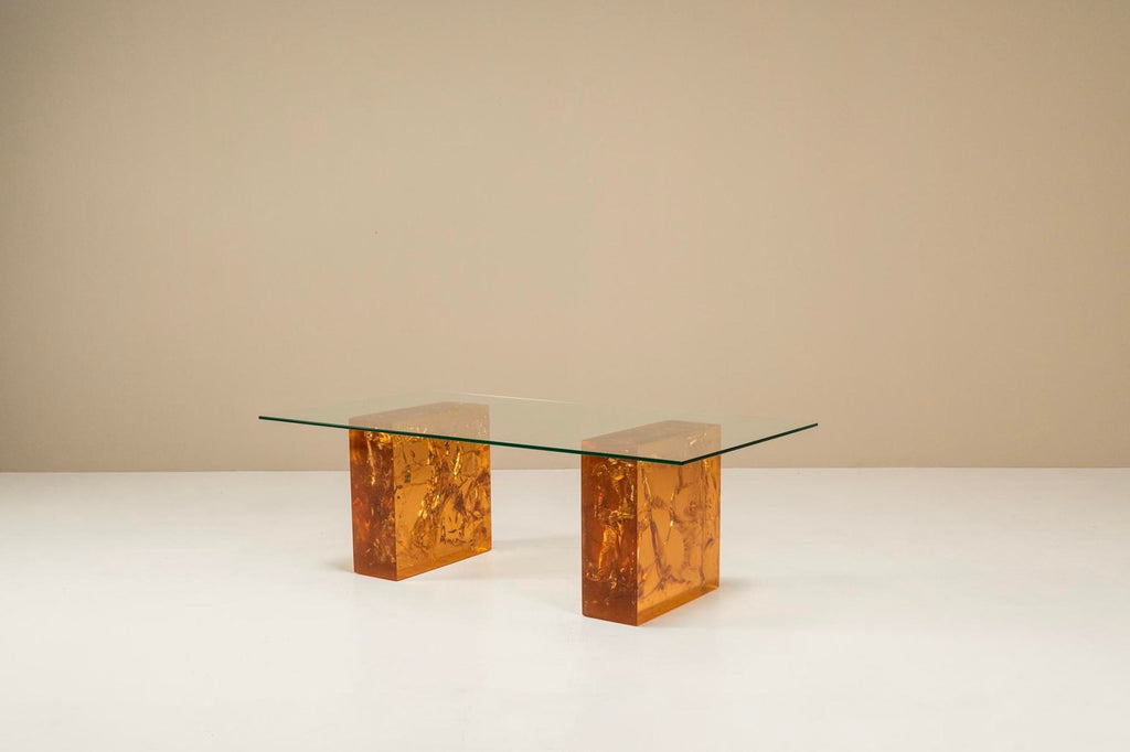 Coffee Table in Amber Fractal Resin in The Manner of Marie-Claude de Fouquières, France 1970s