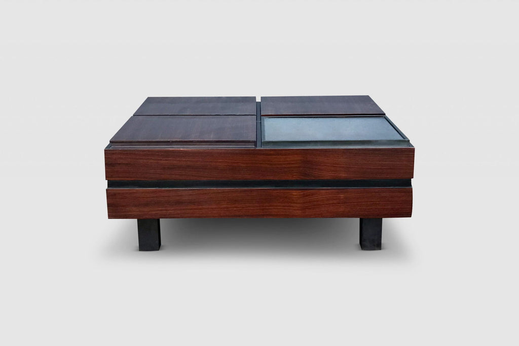 Functional and compartmented teak wood coffee table designed by Carlo Hauner and manufactured by Forma italy 1961.