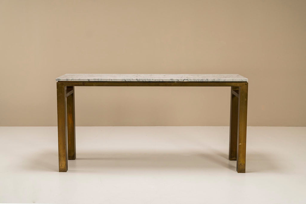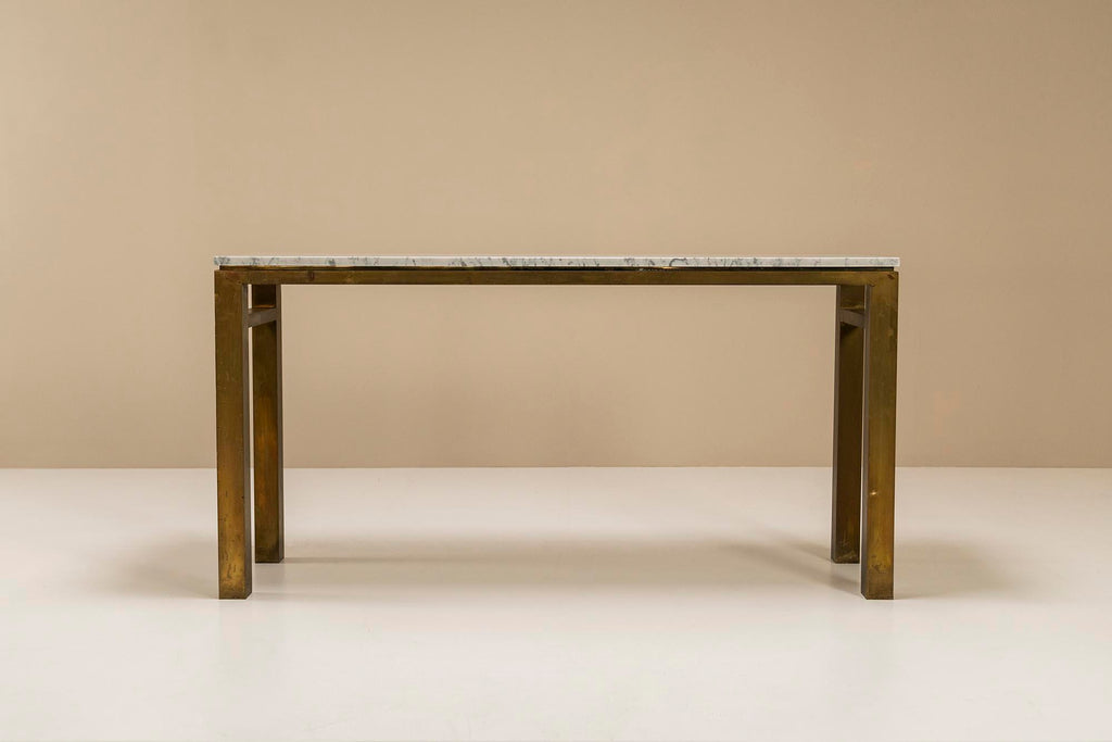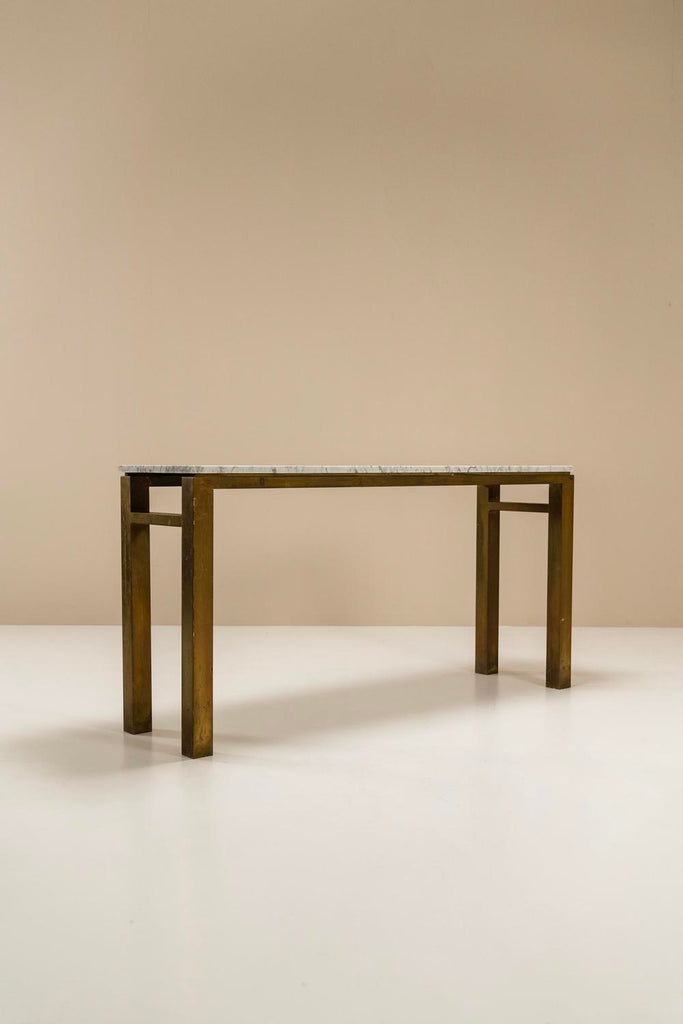 Console in Carrara Marble and Patinated Brass, Italy 1960s