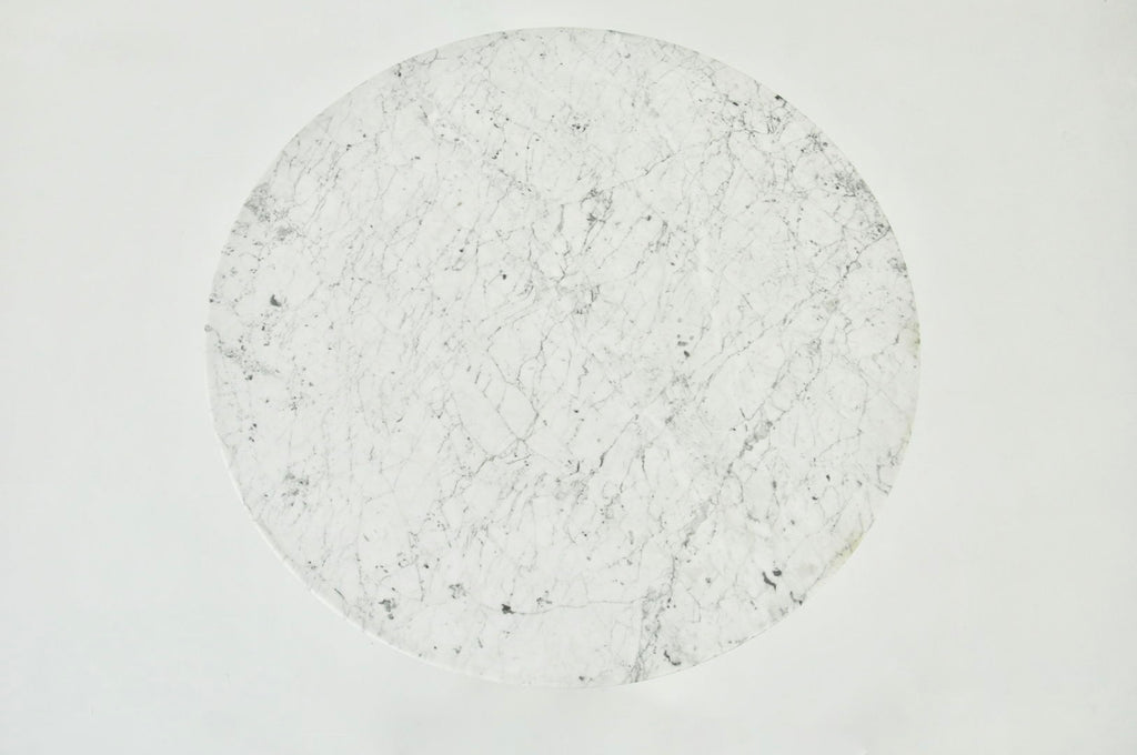 Marble table. Leg stamped Knoll. The marble has been replaced. Wear due to time and age of the table.