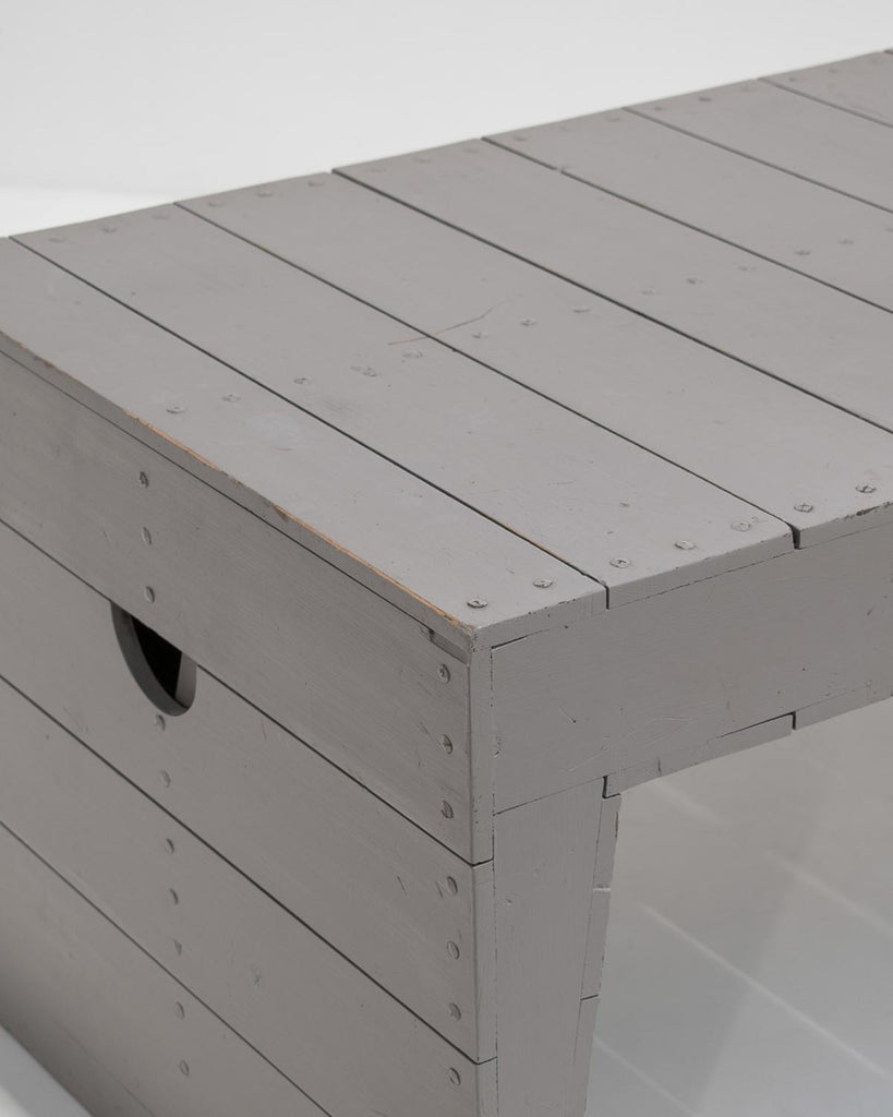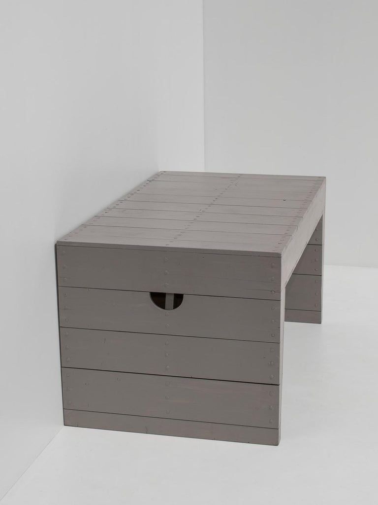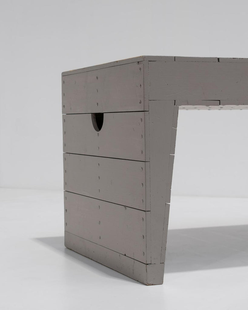 Bossche School 콘솔 또는 사이드 테이블 Dom Hans van der Laan, 네덜란드 1960년대 유명한 네덜란드 디자이너, 건축가 및 수도사 Dom Hans van der Laan의 희귀하고 수집 가능한 작품. 페인트 칠한 소나무에 구리 못을 박아 만들었고 손길이 닿지 않은 원래 상태로 서 있습니다. 이 작품은 개인 주택 프로젝트에 적용된 제한된 수의 van der Laan 디자인 중 하나라는 점에서 특히 희귀합니다. 시선을 사로잡는 미니멀리스트 디자인으로 이 테이블을 현대적인 인테리어에 완벽하게 추가할 수 있습니다. Van der Laan은 여러 언어로 번역된 그의 종합적인 건축 이론으로 전 세계적으로 찬사를 받았습니다. 그의 작품은 국제적인 규모로 출판되었으며 그의 건물은 그의 공간을 연구하고 경험하려는 건축가 및 기관의 순례지가 되었습니다. 진정한 수집가의 아이템.