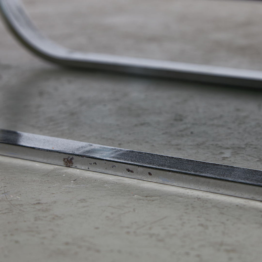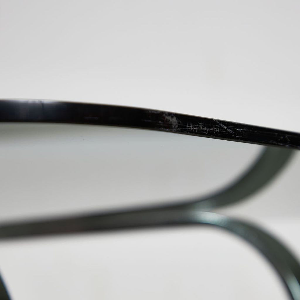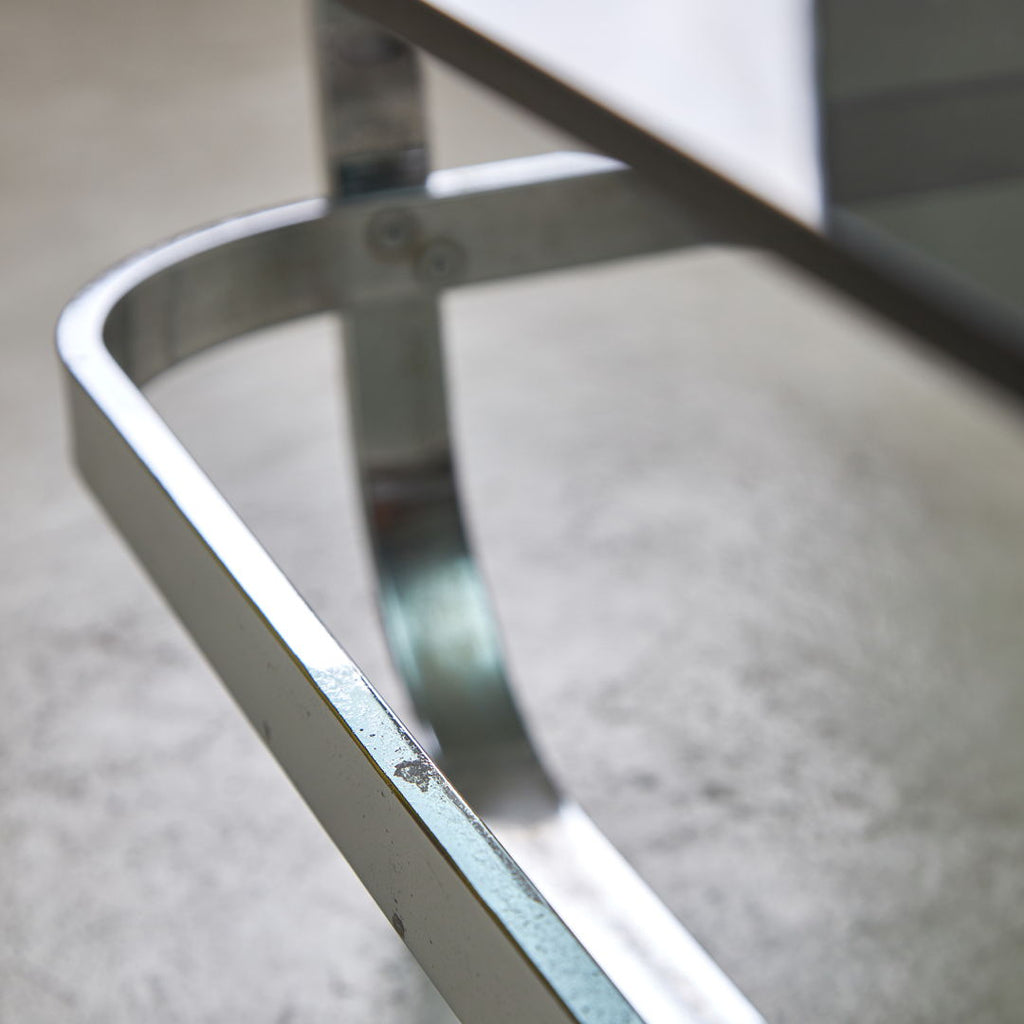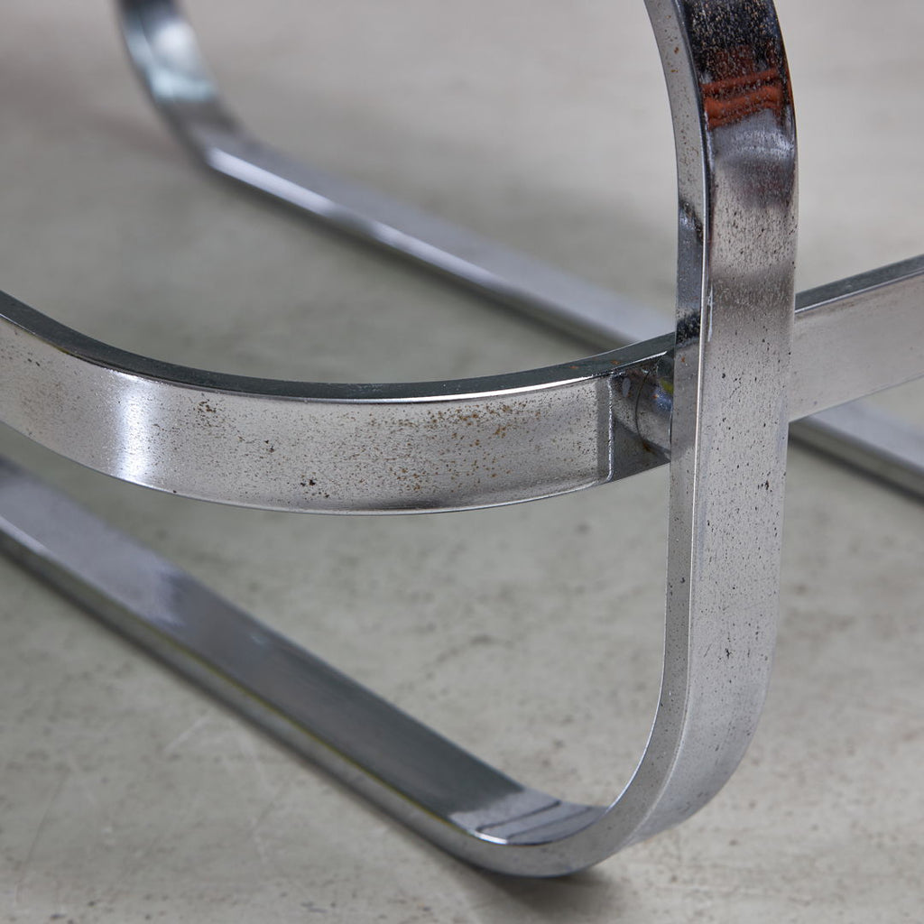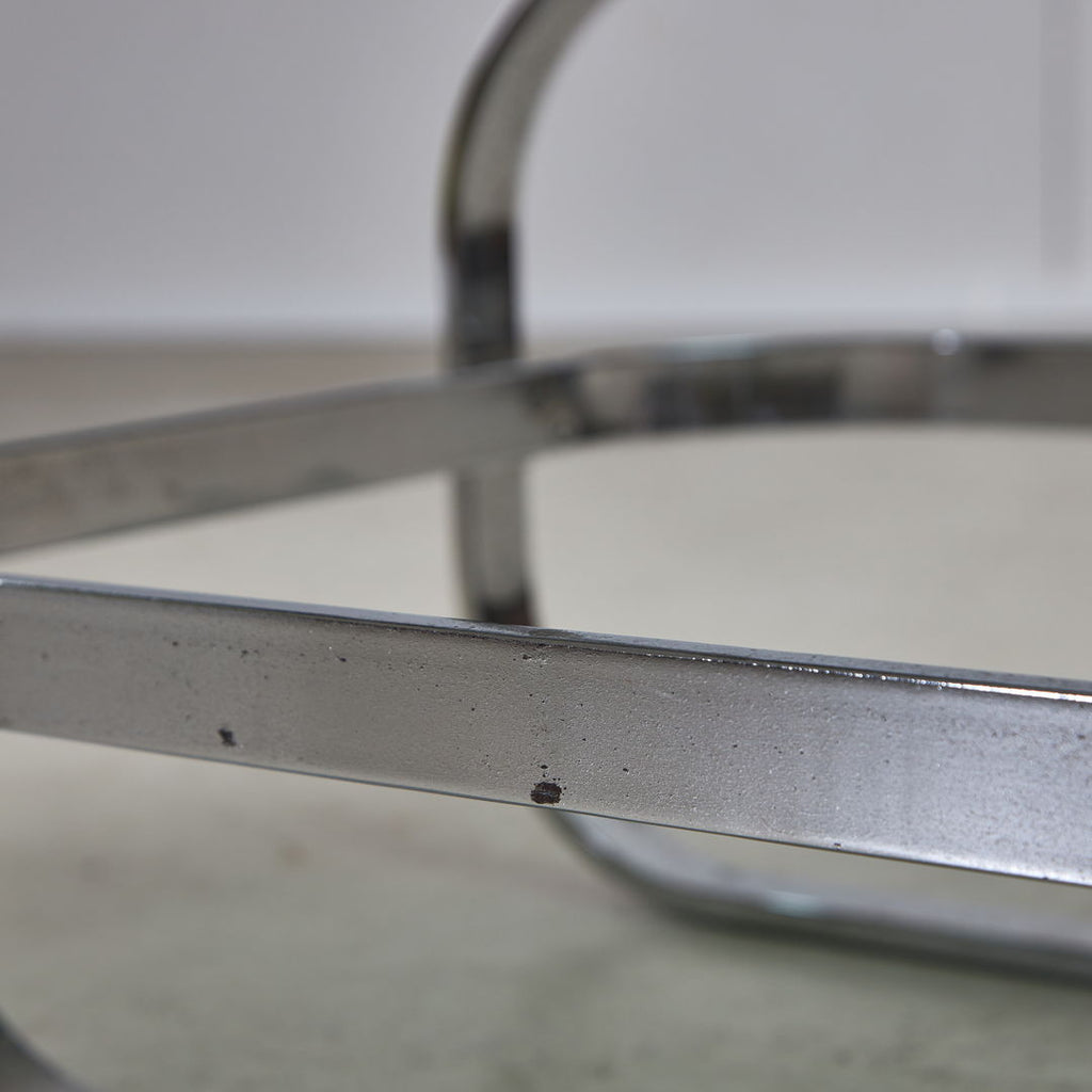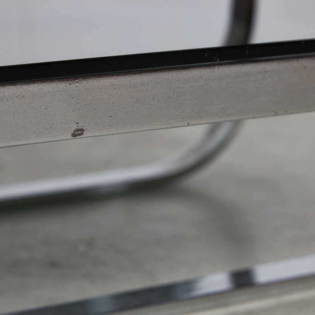 Flat, Rounded Bar-shaped Coffee Table on Chrome Base with Two Smoked Glass Tops