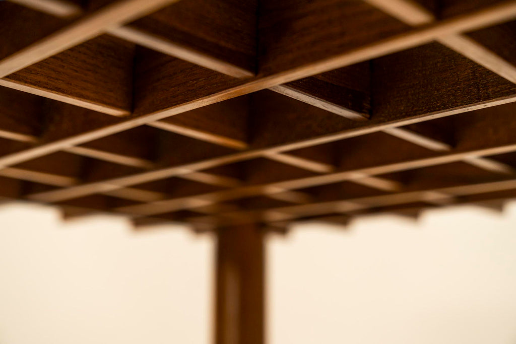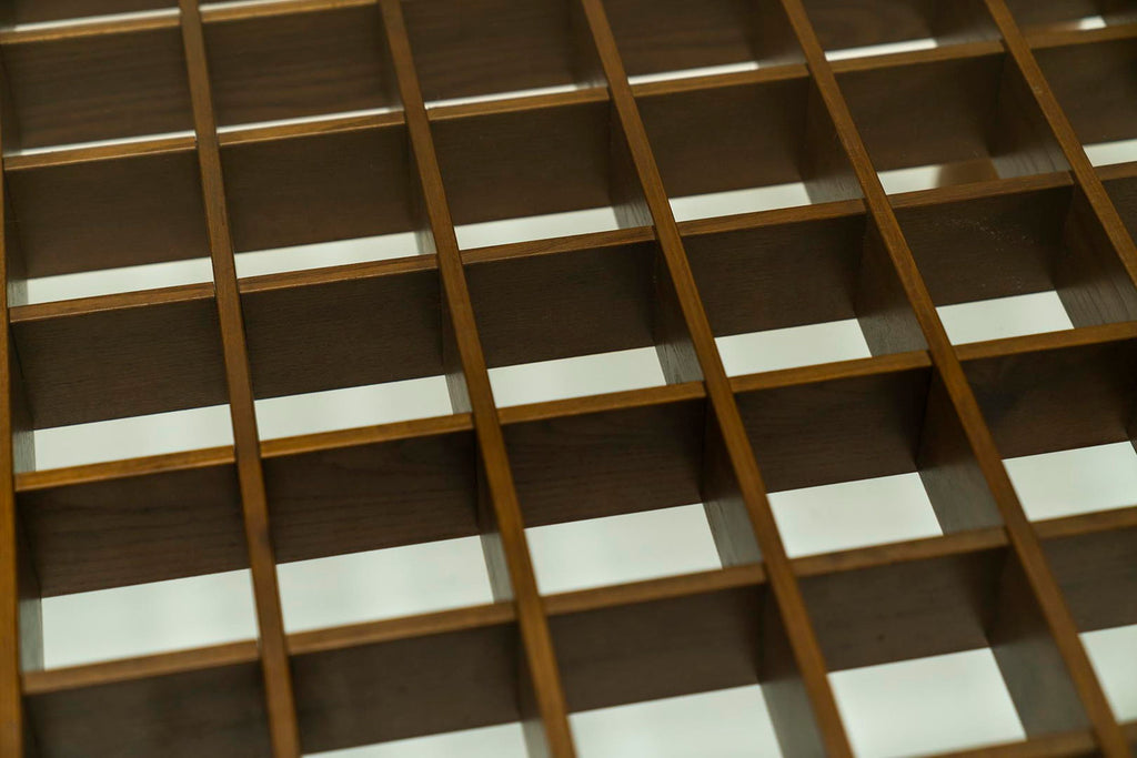 A distinguishing feature of this table is its wooden grid, which is meticulously integrated into the structure. This intricate latticework not only adds a touch of intricacy and visual interest but also creates an enchanting interplay of light and shadows. When the gentle touch of illumination dances upon the grid, an alluring symphony of patterns unfolds, captivating the senses and elevating the ambiance of any room.