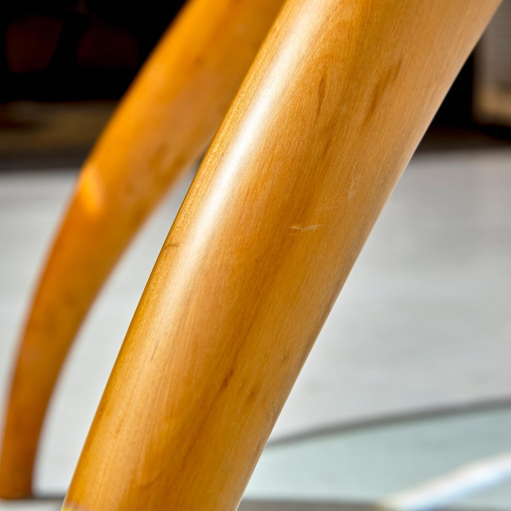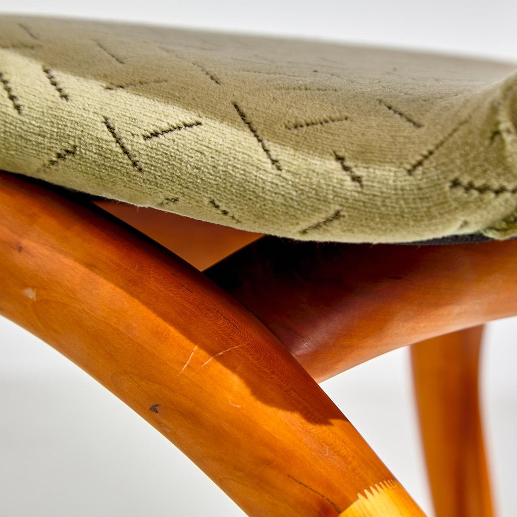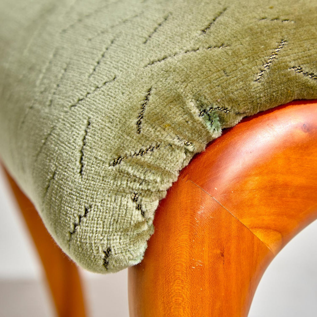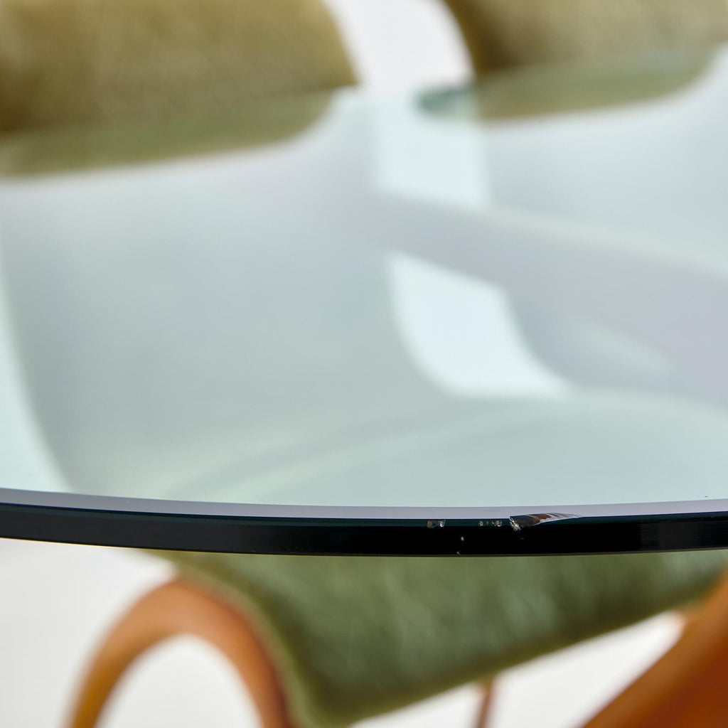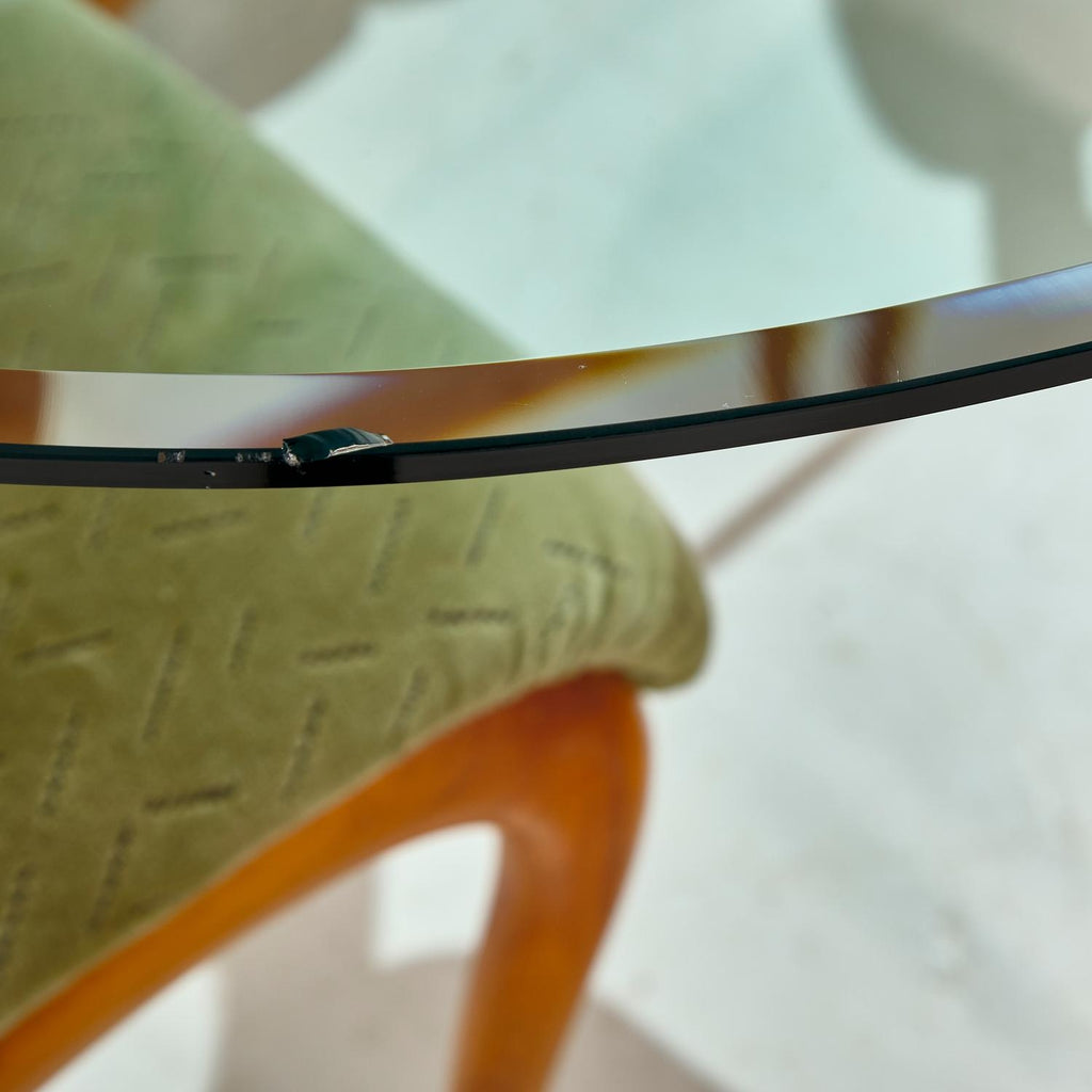 Maurizio Marconato와 Terry Zappa가 Porada를 위해 디자인한 2000년대 곡선형 호두 다리로 만든 이탈리아 '복고풍' 다이닝 세트입니다. 나무와 유리 부분에 약간의 표면 긁힘과 마모가 있고 텍스타일 덮개에 얼룩이 있습니다. 유리 상단에 작은 칩이 있습니다. 크기: 식탁: 205x73x100 cm /// 식탁 의자: 47x82x40 cm, 높이: 50 cm