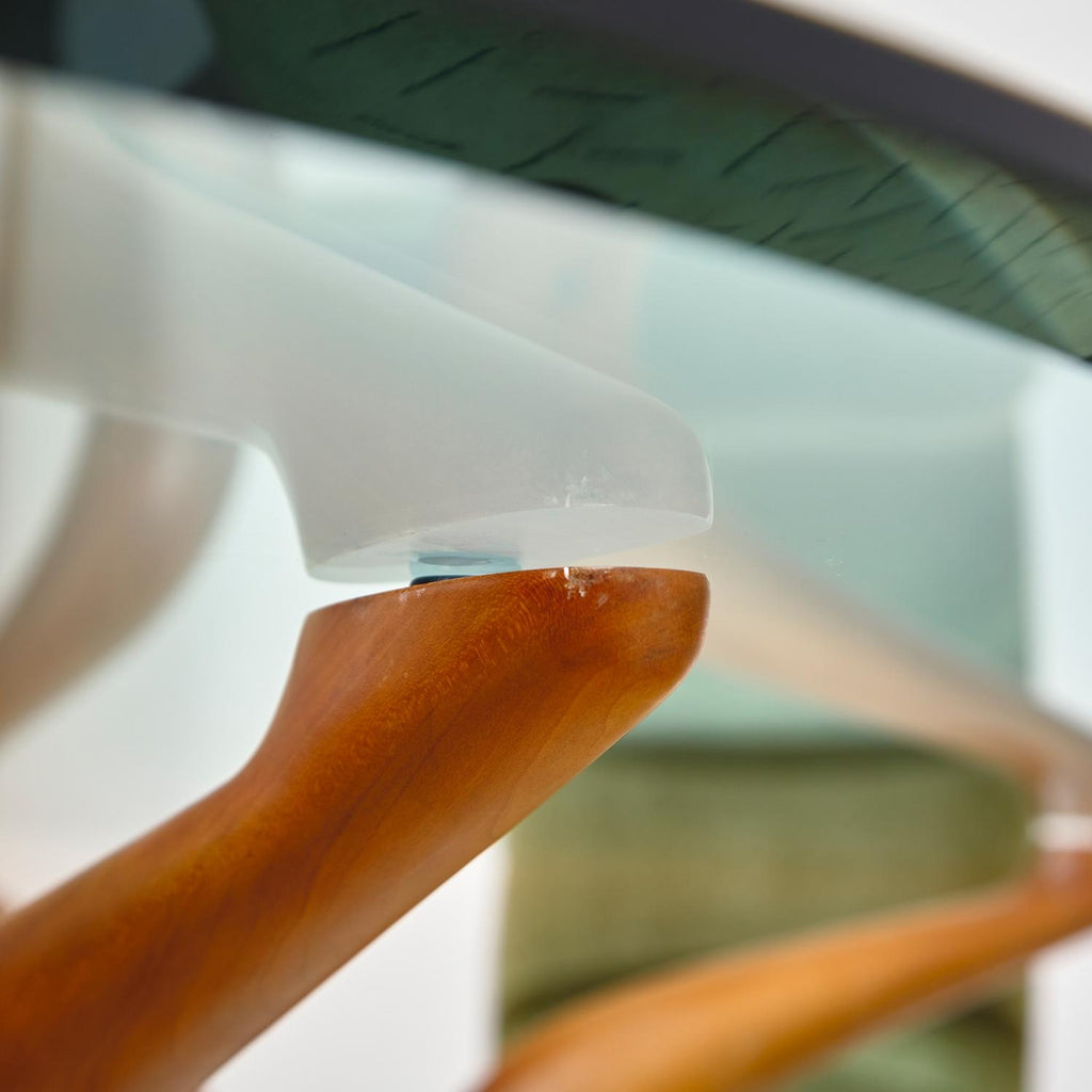 Material: UPHOLSTERY, WALNUT, WOOD, METAL, GLASS