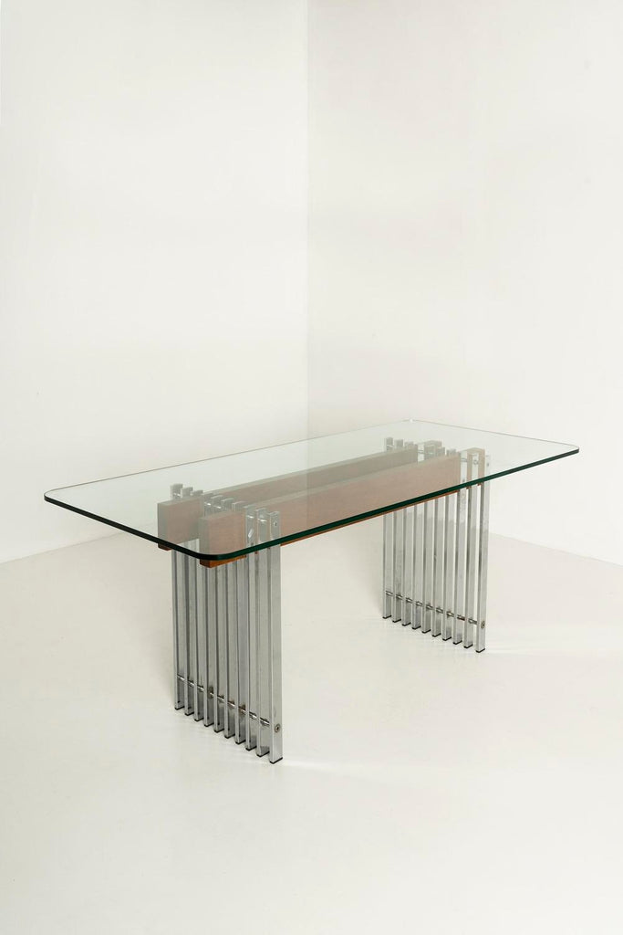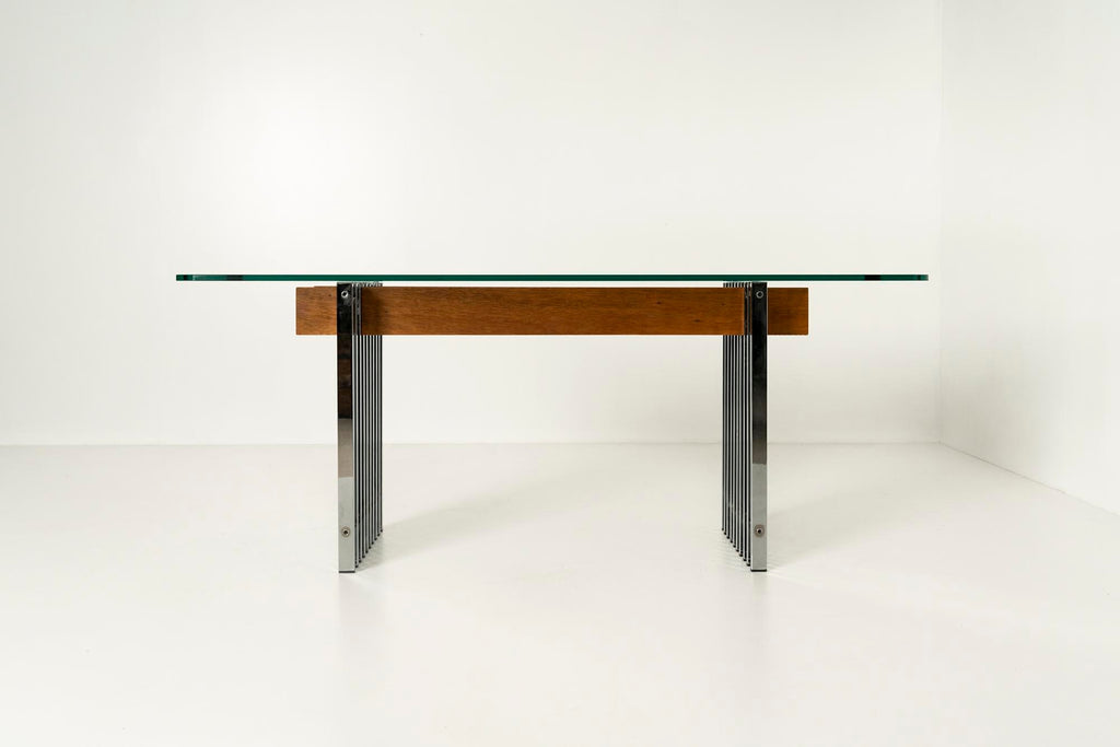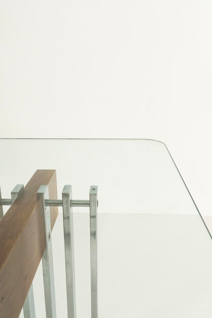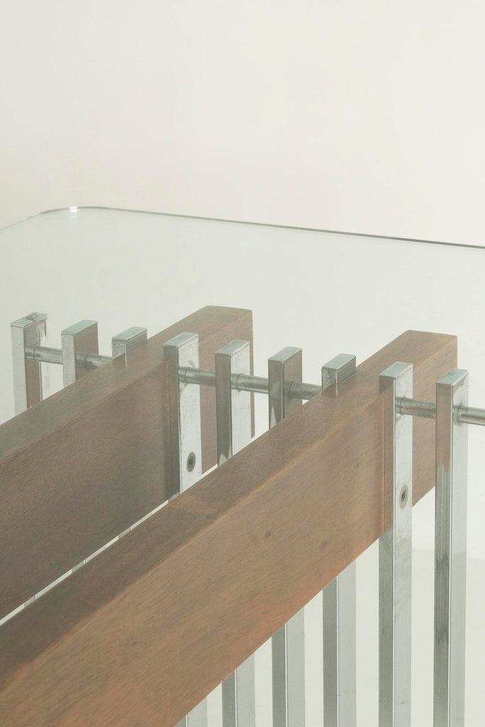 Italian Vintage Dining Table in Glass, Wood and Metal, 1970s