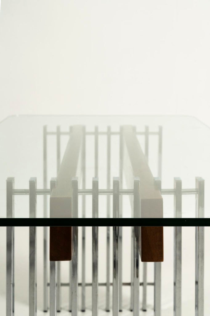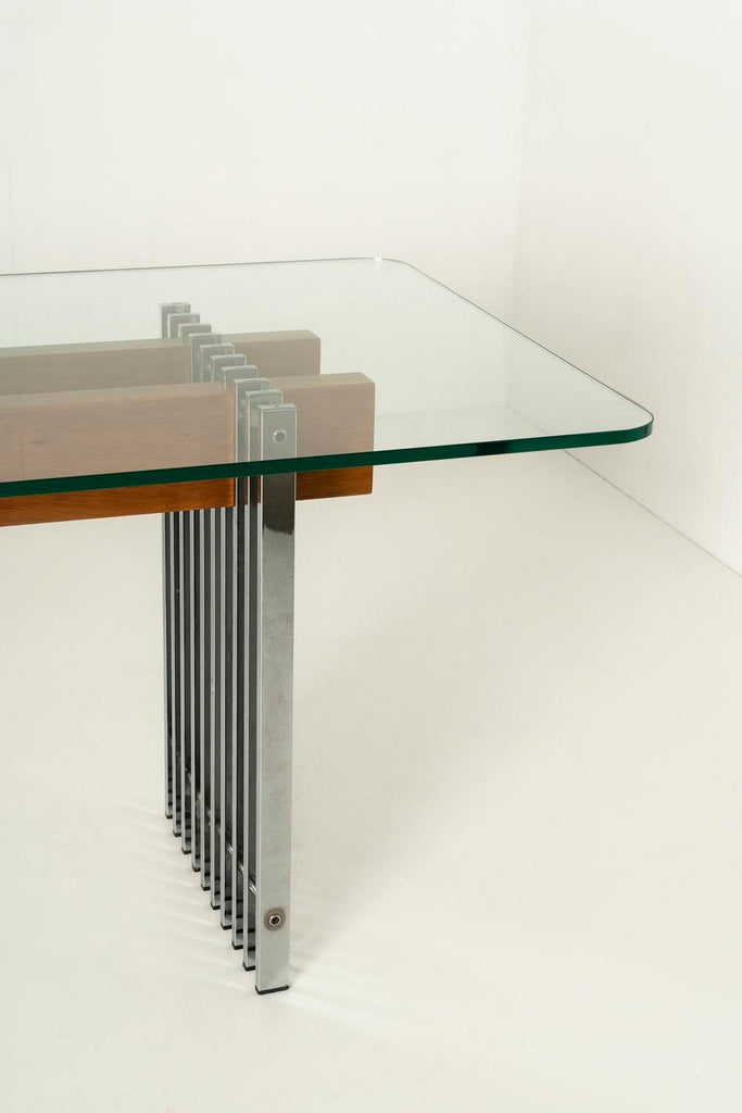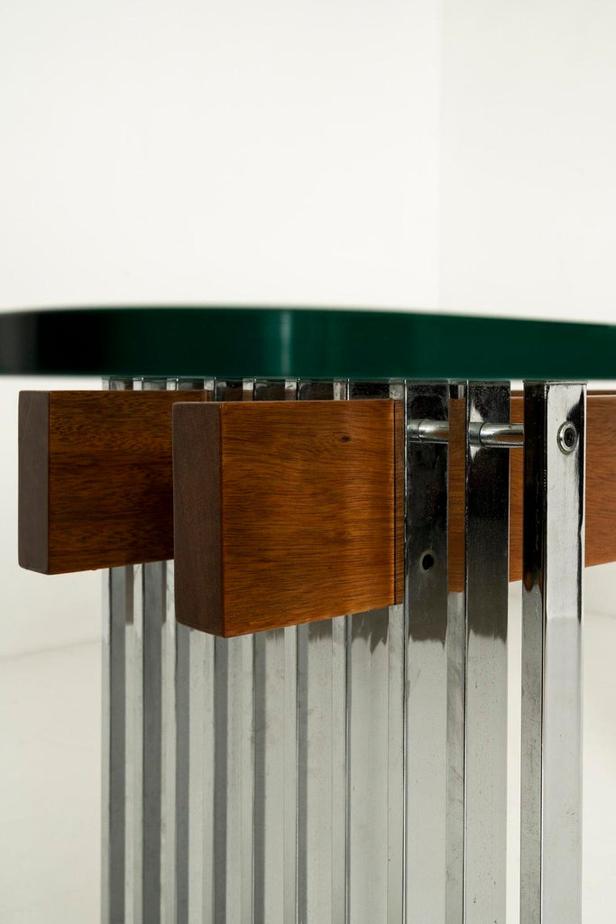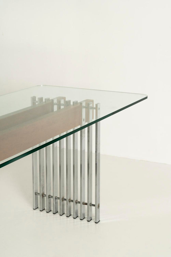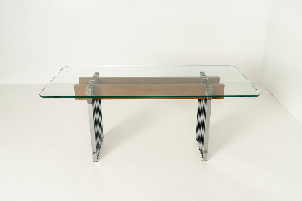 Italian Vintage Dining Table in Glass, Wood and Metal, 1970s