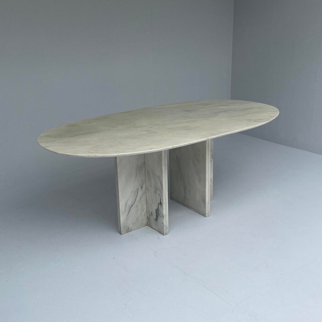 이탈리아산 화이트 대리석 식탁입니다. 치수: L185cm, H74cm, W100cm 전반적으로 아주 좋은 상태입니다. 테이블 측면에 작은 홈이 있고 테이블 상판에 작은 얼룩이 있으며 테이블 바닥에 약간의 손상이 있습니다.