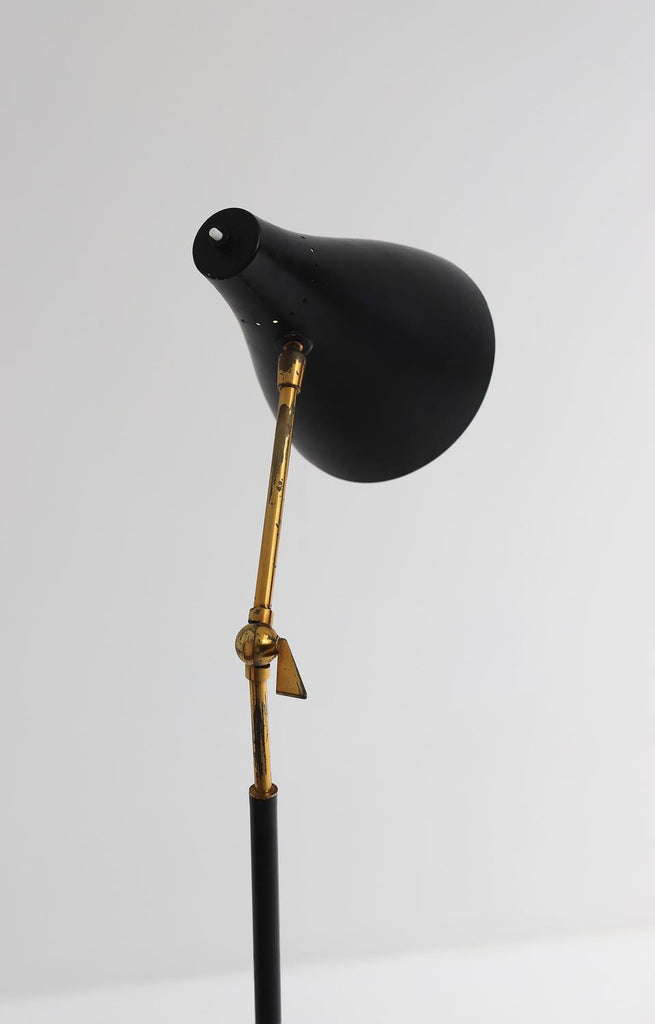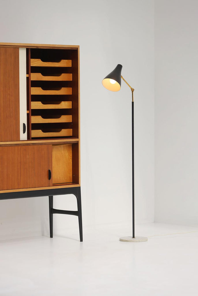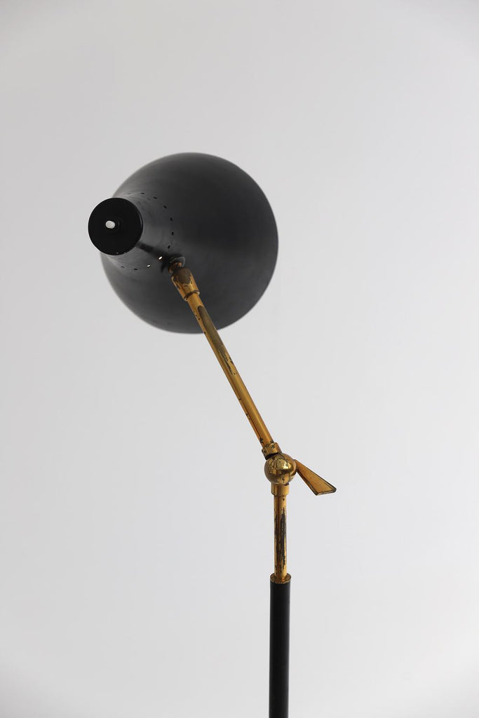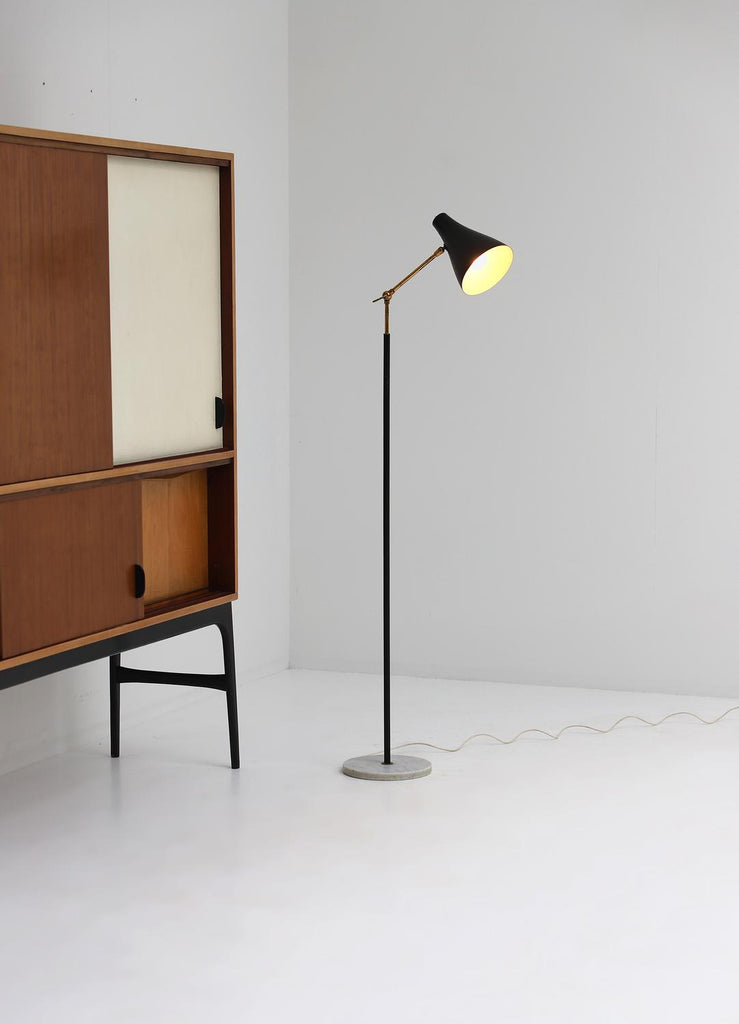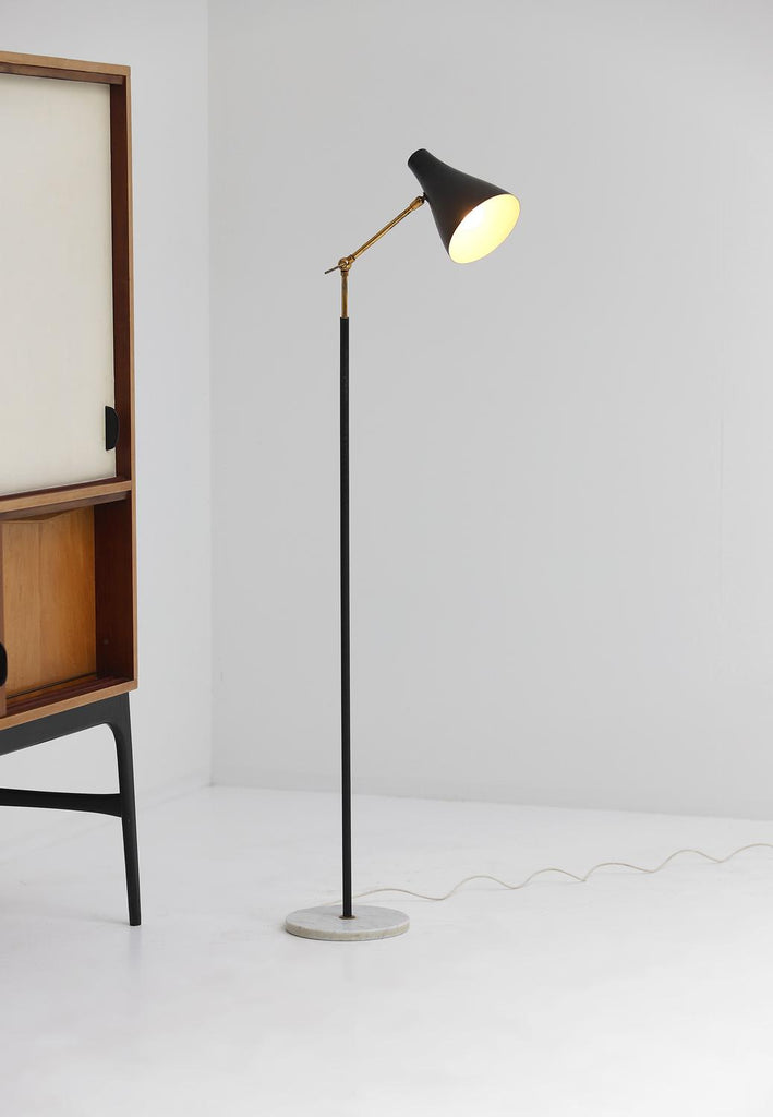 Mid-Century Black and Brass Floor Lamp with Marble Base by Stilux, Milano 1950s