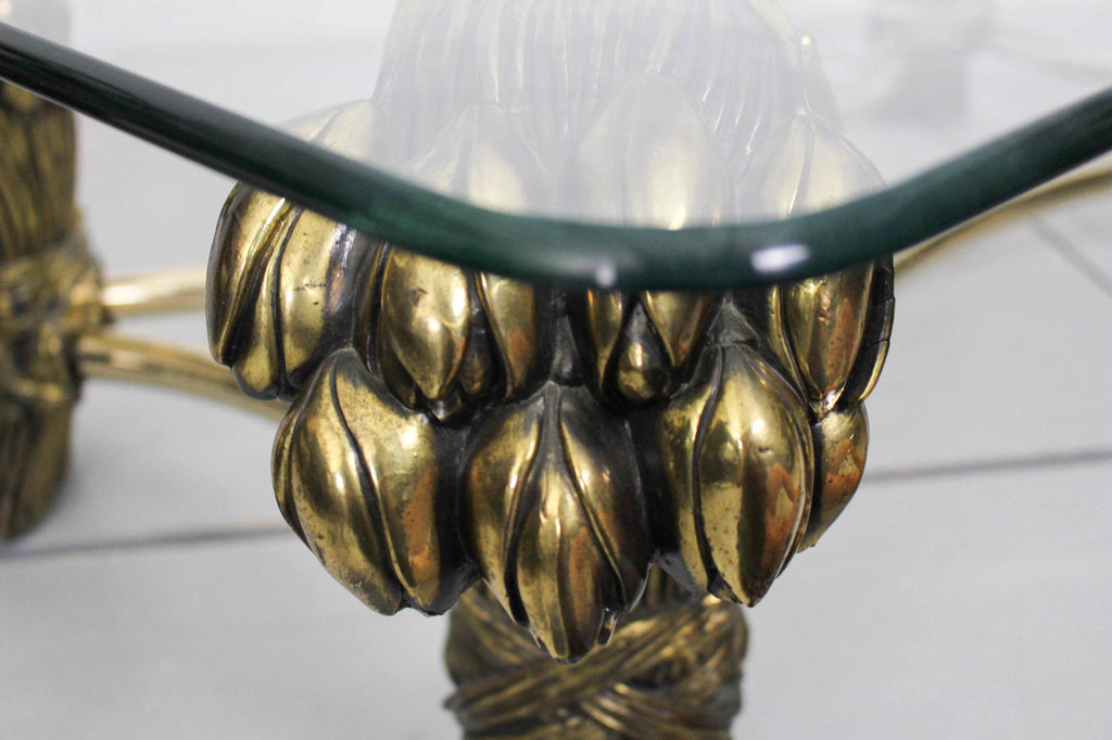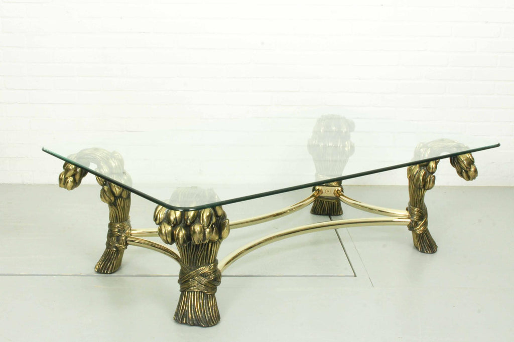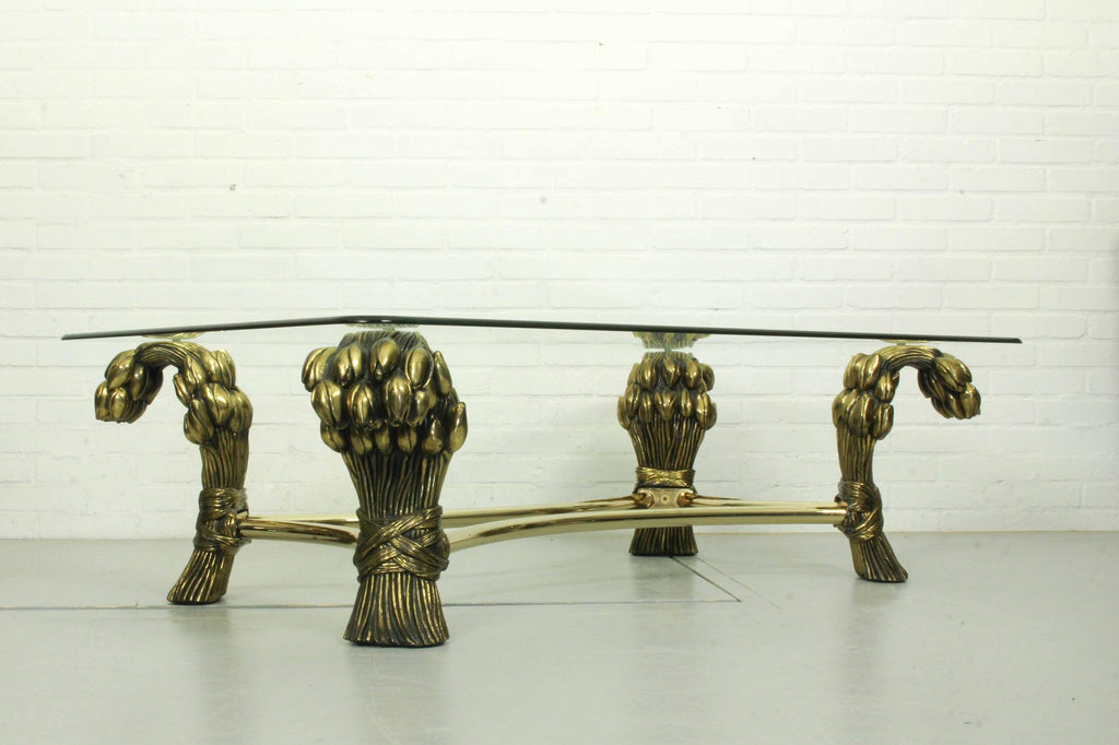이 독특한 커피 테이블은 Willy Daro가 디자인했습니다. 테이블에는 튤립 모양의 무거운 황동 다리에 두꺼운 유리 상판이 있습니다!