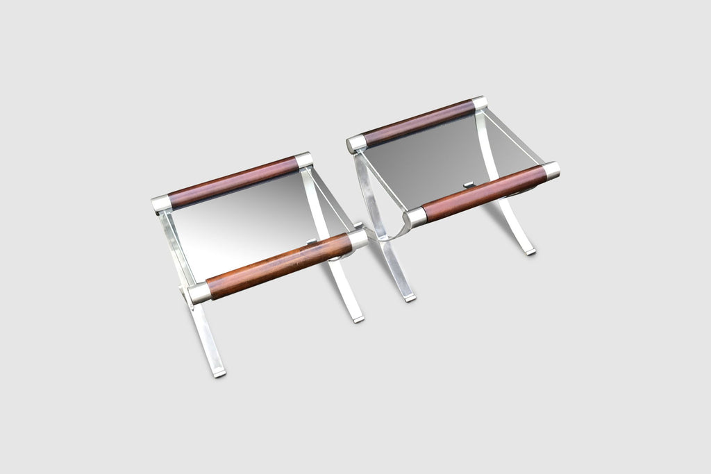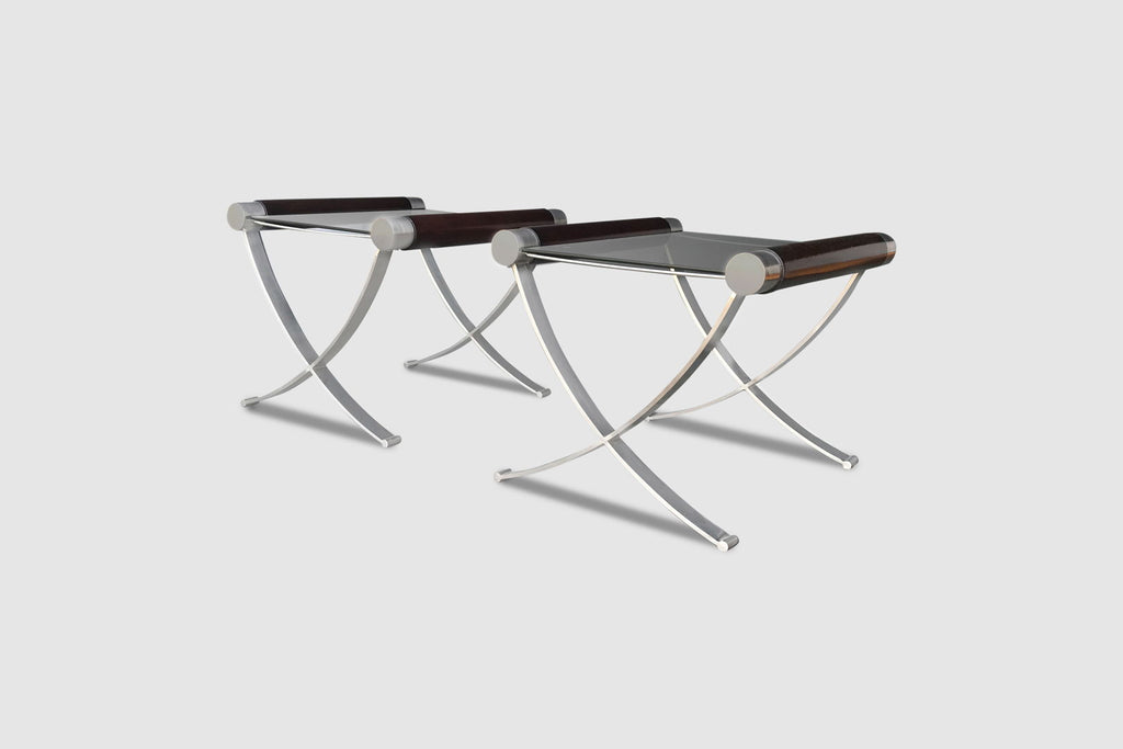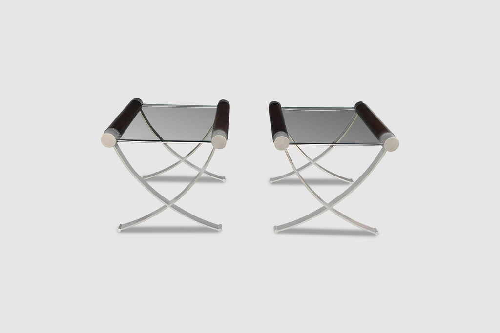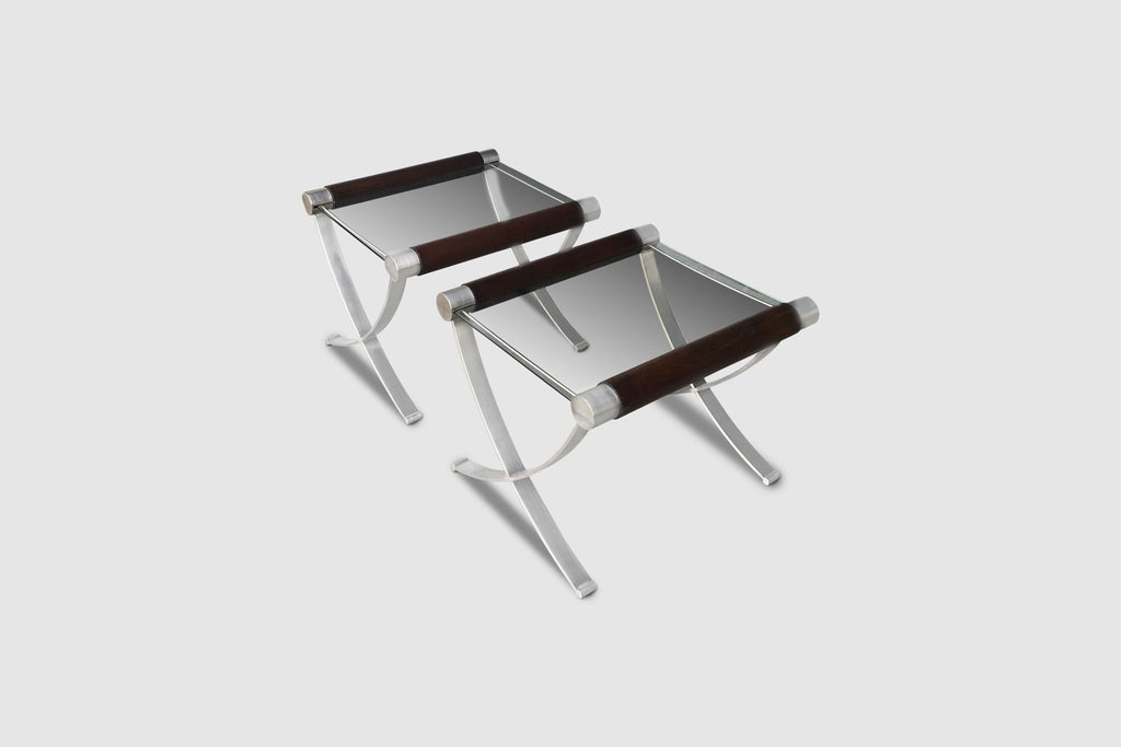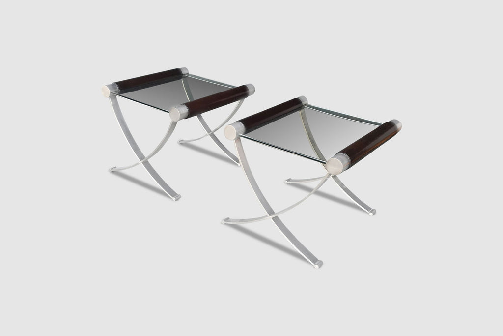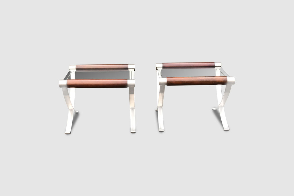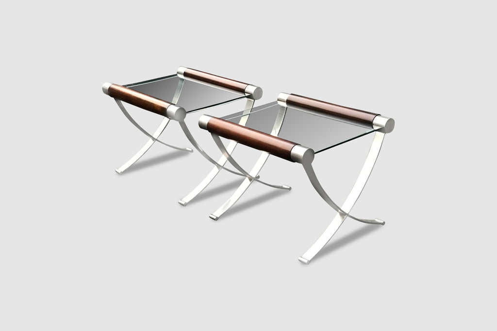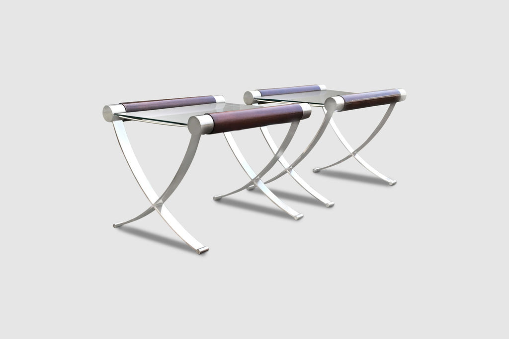 Modernist glass, walnut and brushed steel side table Italy 1970s, set of 2
