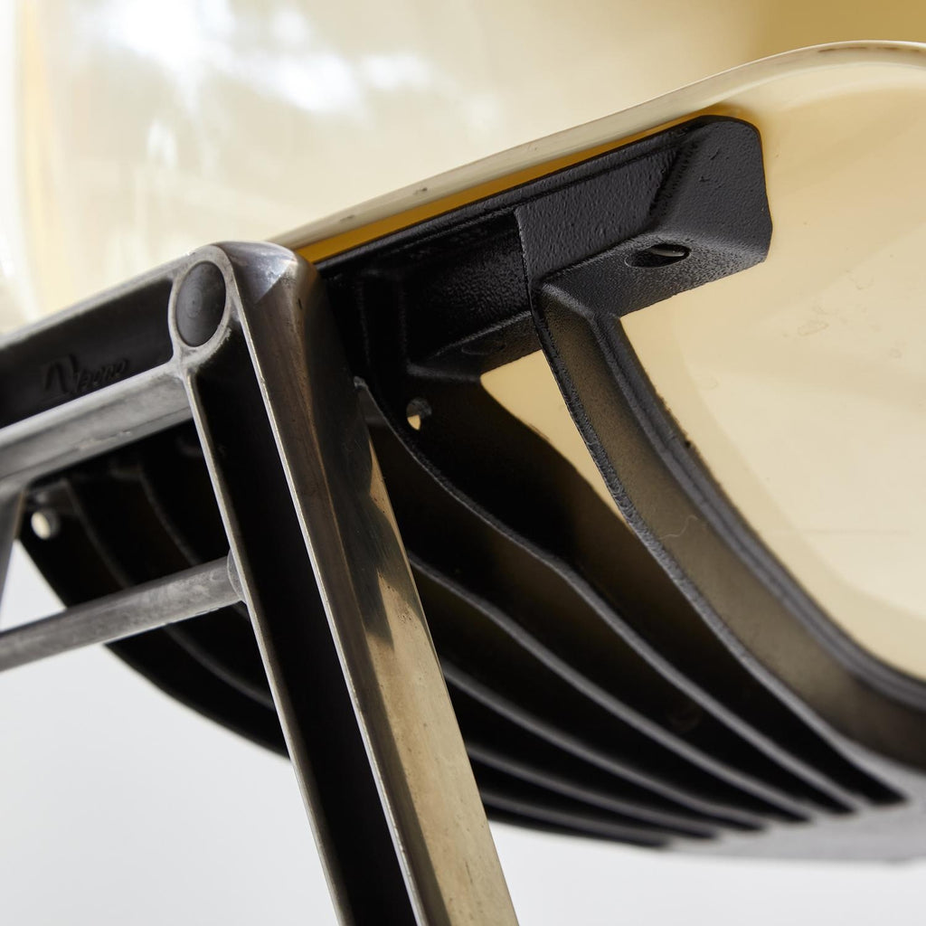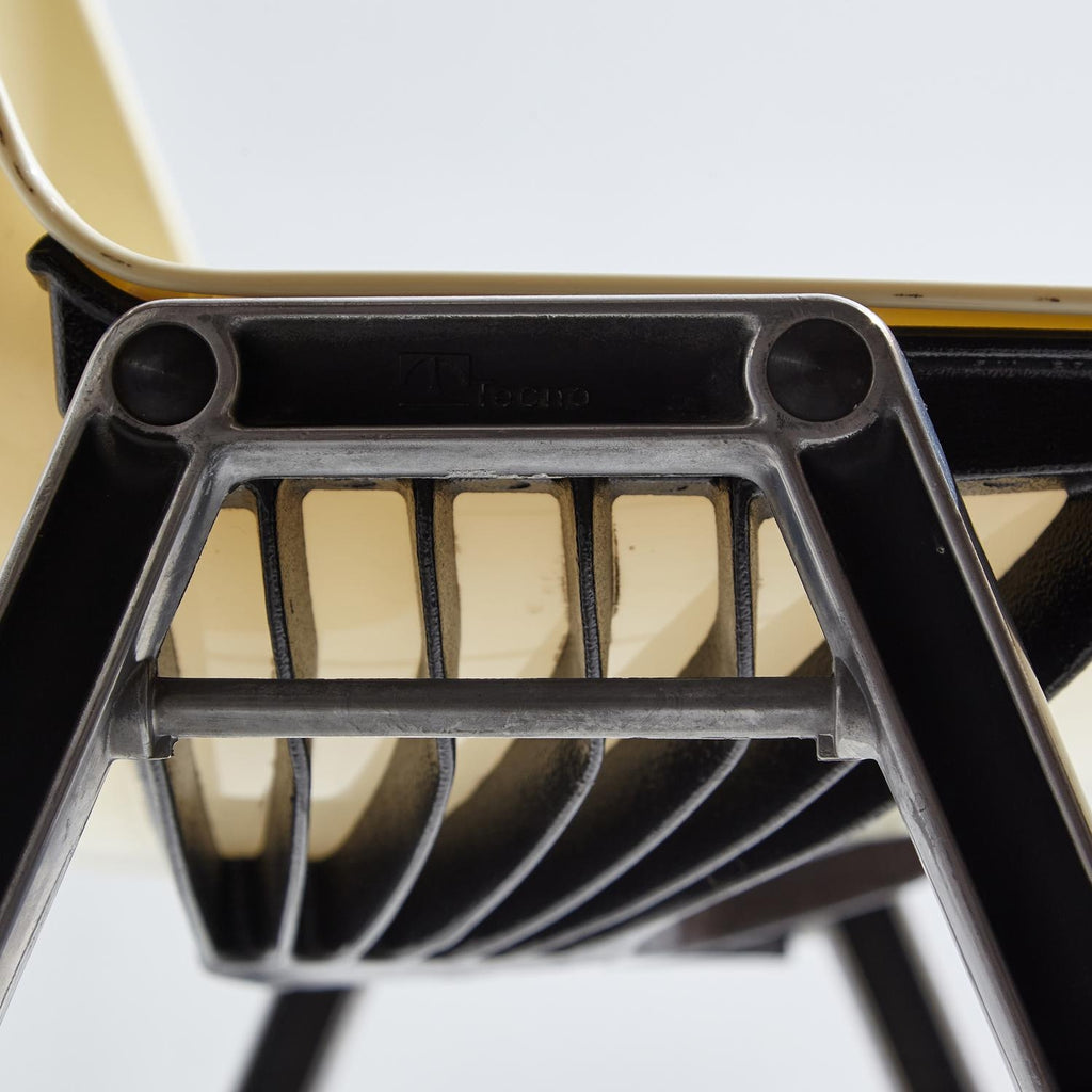 Tecno를 위해 Osvaldo Borsani가 디자인한 1980년대 금속 다리에 쌓을 수 있는 플라스틱 의자 'Modus SM 203'. 금속 및 플라스틱 부품에 약간의 긁힘 및 마모가 있습니다.