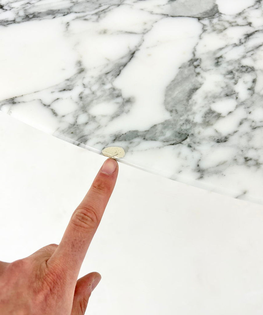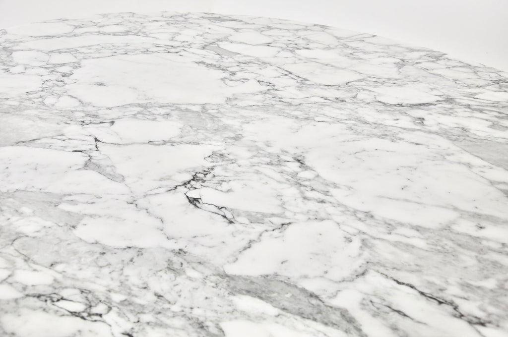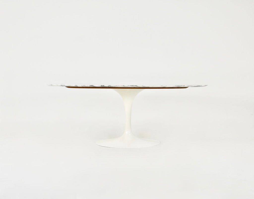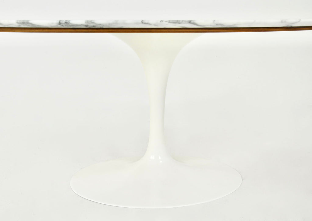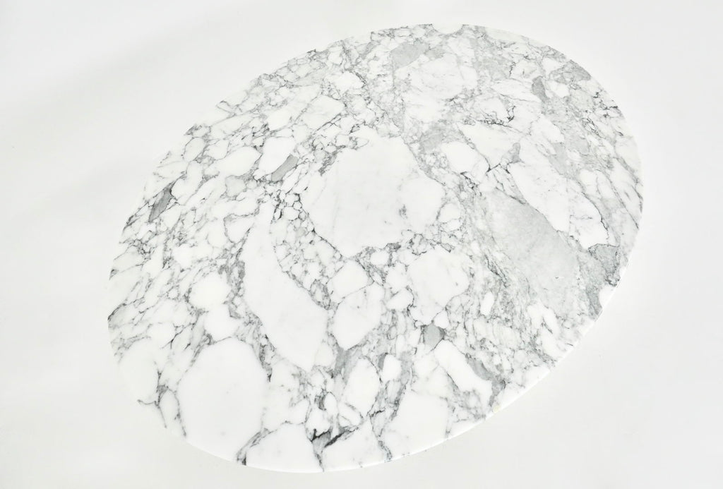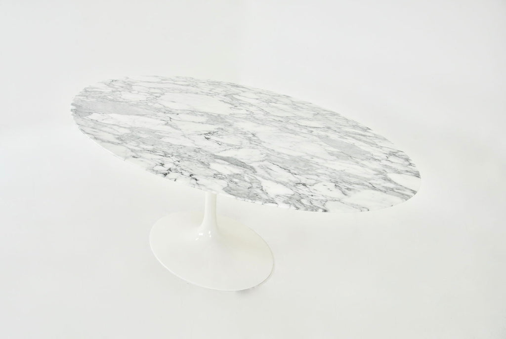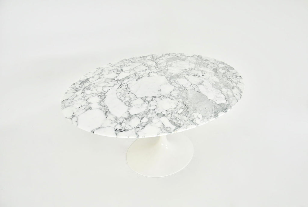 Beautiful oval marble table with aluminium base designed by Eero Saarinen and produced by Knoll International. Table numbered. Wear due to time and age of table.