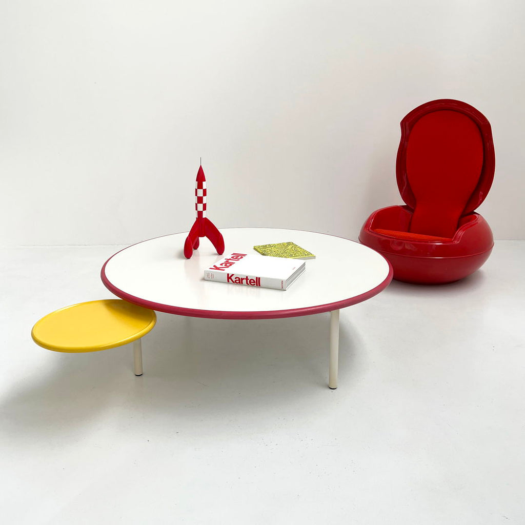 디자인 기간 - 80년대 치수 - 폭 120cm x 깊이 120cm x 높이 36cm 재질 - 라미네이트, 금속, 플라스틱 색상 - 빨간색, 노란색, 흰색 연식과 사용에 따라 가벼운 착용.