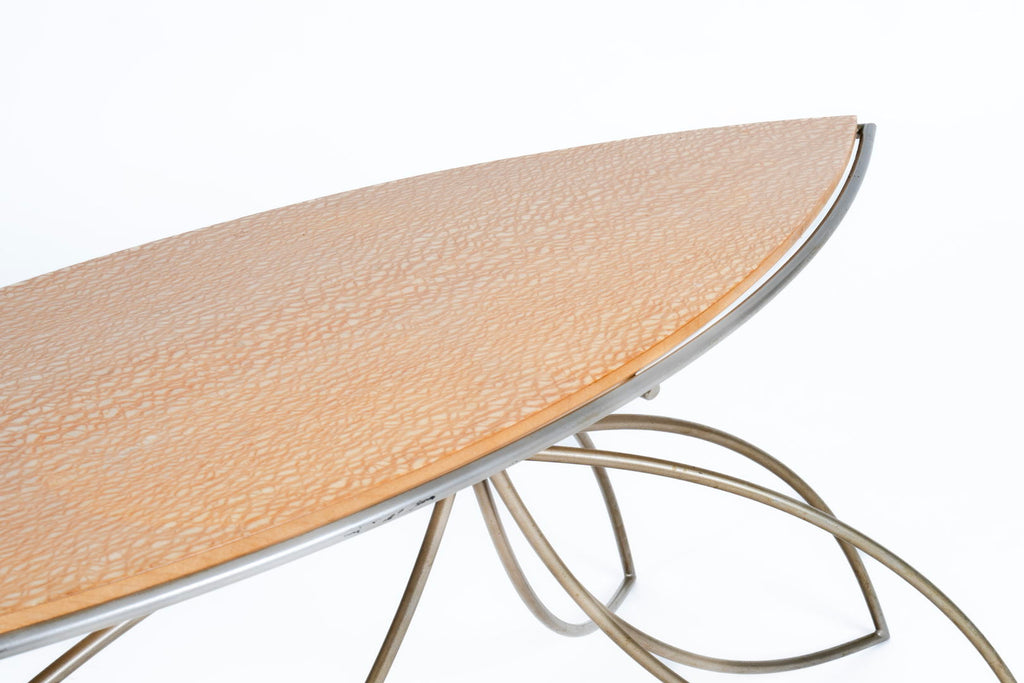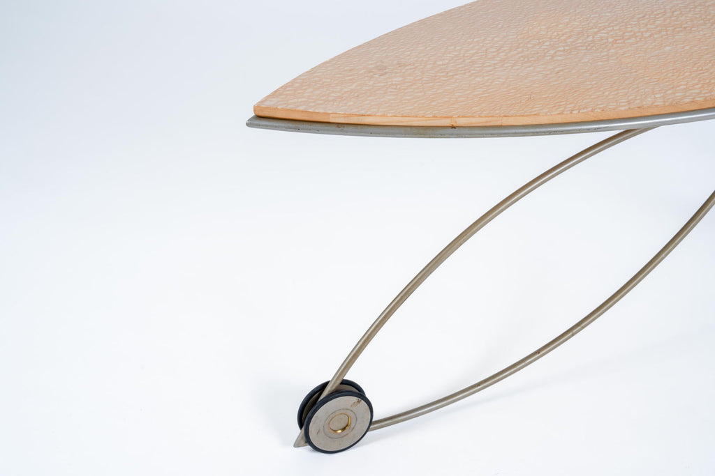 A unique and well-made postmodern design table from the 1980s in Memphis Milano style, found in Italy. The designer is unknown to me.