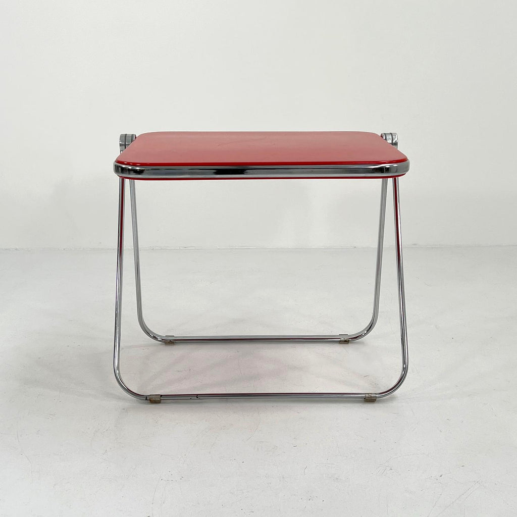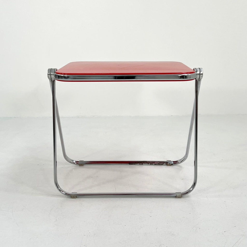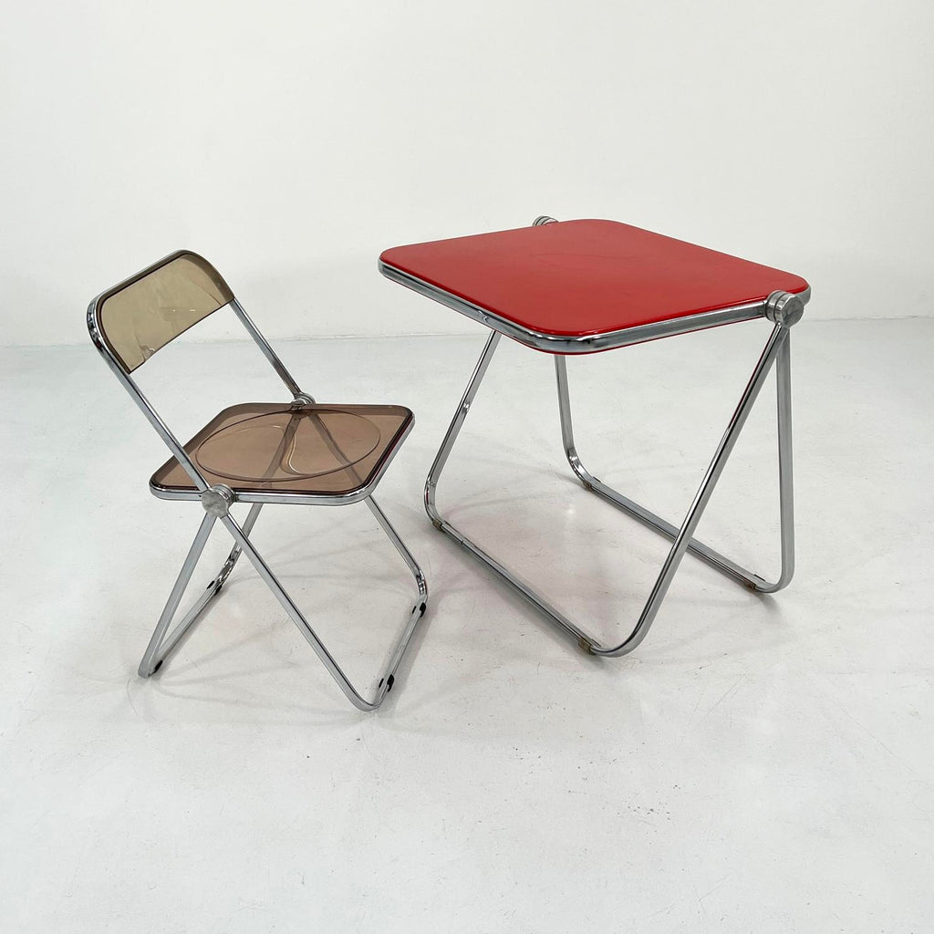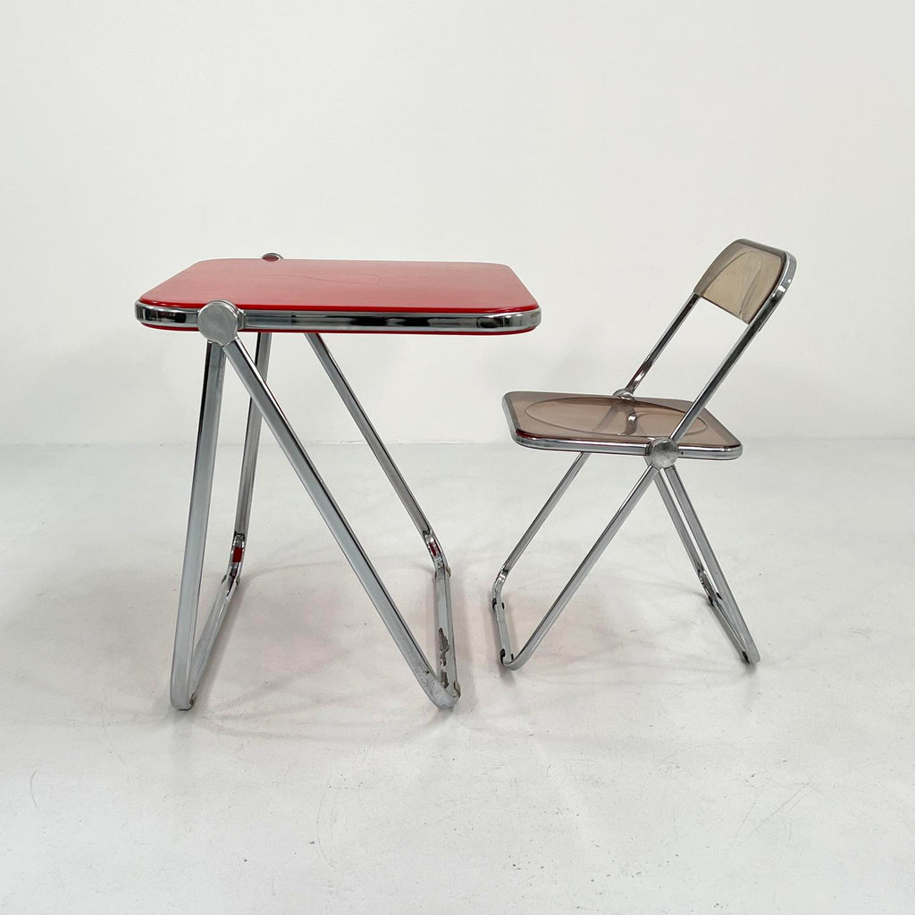 Designer - Giancarlo Piretti Producer - Anonima Castelli Model - Platone Folding Desk Design Period - Seventies Measurements - Width 82 cm x Depth 65 cm x Height 70 cm Materials - Perspex, Steel Color - Red, Silver 경년과 사용에 따라 가벼운 마모. 테이블 보드에 약간의 흠집이 있습니다. 크롬 도금이 발에 약간 찔렸습니다. 자세한 내용은 사진을 참조하십시오.