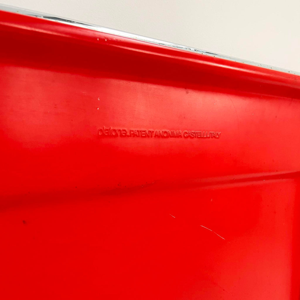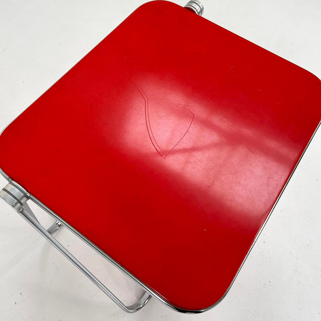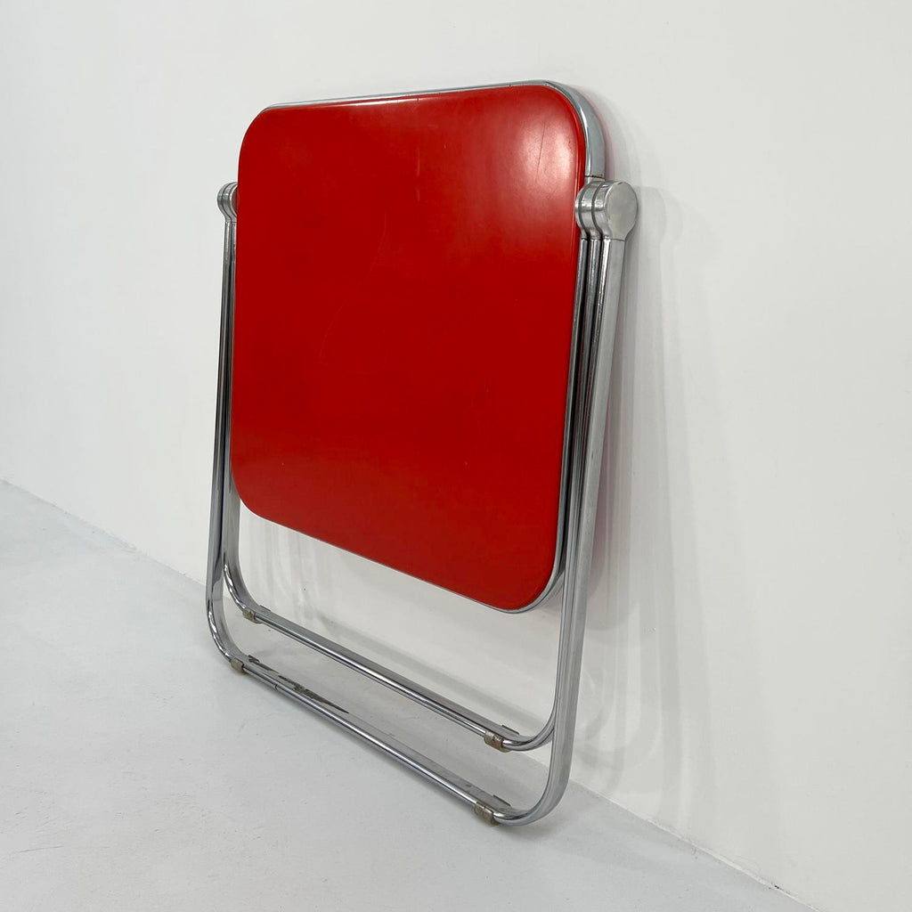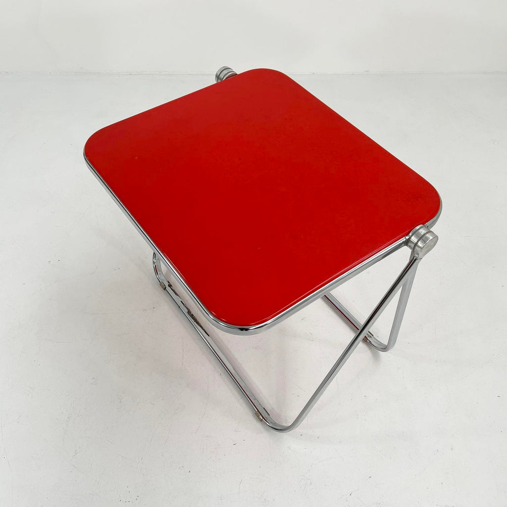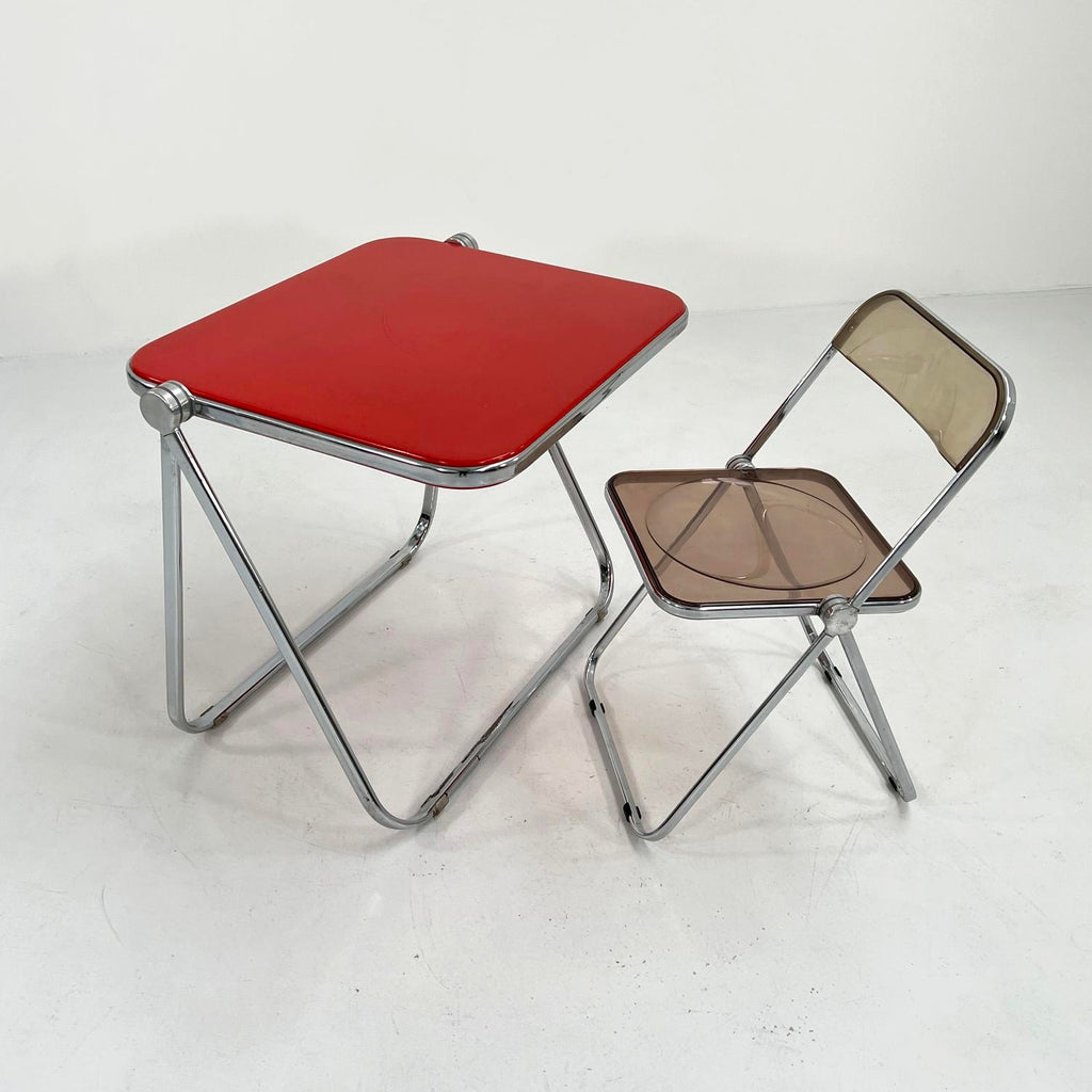 Designer - Giancarlo Piretti Producer - Anonima Castelli Model - Platone Folding Desk Design Period - Seventies Measurements - Width 82 cm x Depth 65 cm x Height 70 cm Materials - Perspex, Steel Color - Red, Silver 경년과 사용에 따라 가벼운 마모. 테이블 보드에 약간의 흠집이 있습니다. 크롬 도금이 발에 약간 찔렸습니다. 자세한 내용은 사진을 참조하십시오.