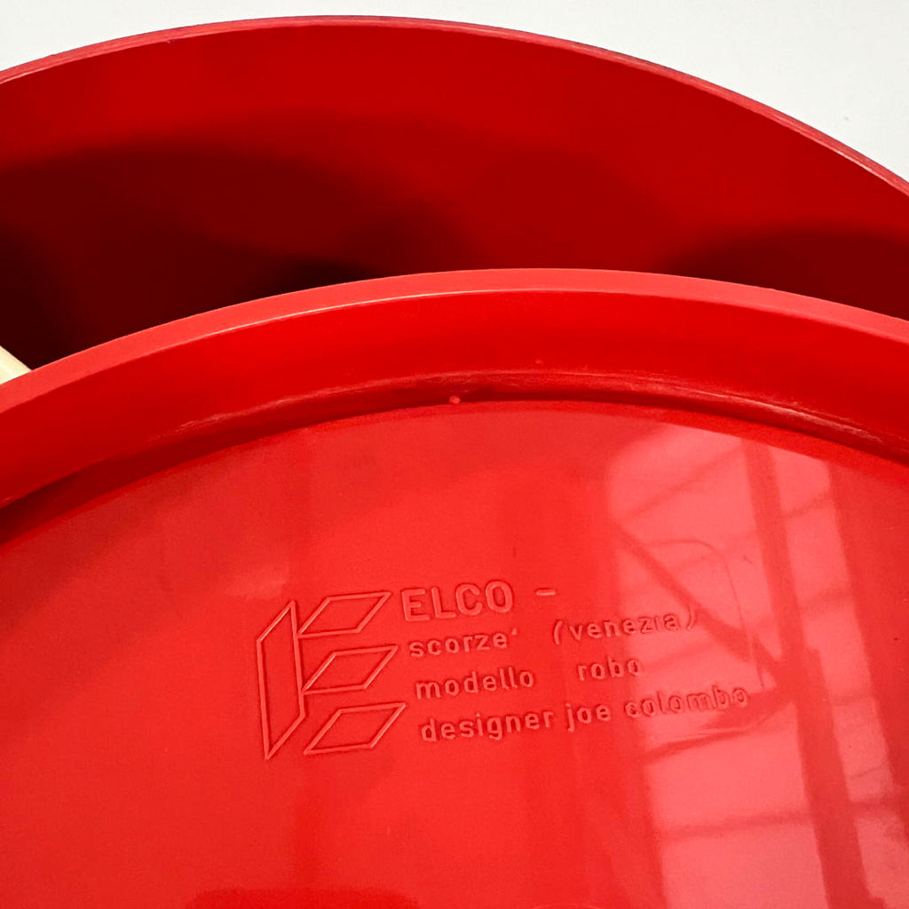 조 콜롬보가 엘코를 위해 만든 레드 로보 사이드 테이블, 1970년대 디자이너 - 조 콜롬보 프로듀서 - 엘코 모델 - 로보 사이드 테이블 디자인 기간 - 70년대 치수 - 폭 39 cm x 깊이 39 cm x 높이 44 cm 재질 - 플라스틱 색상 - 레드, 화이트 상태 - 좋은 코멘트 - 세월과 사용감에 따른 가벼운 착용감. 가벼운 흠집.