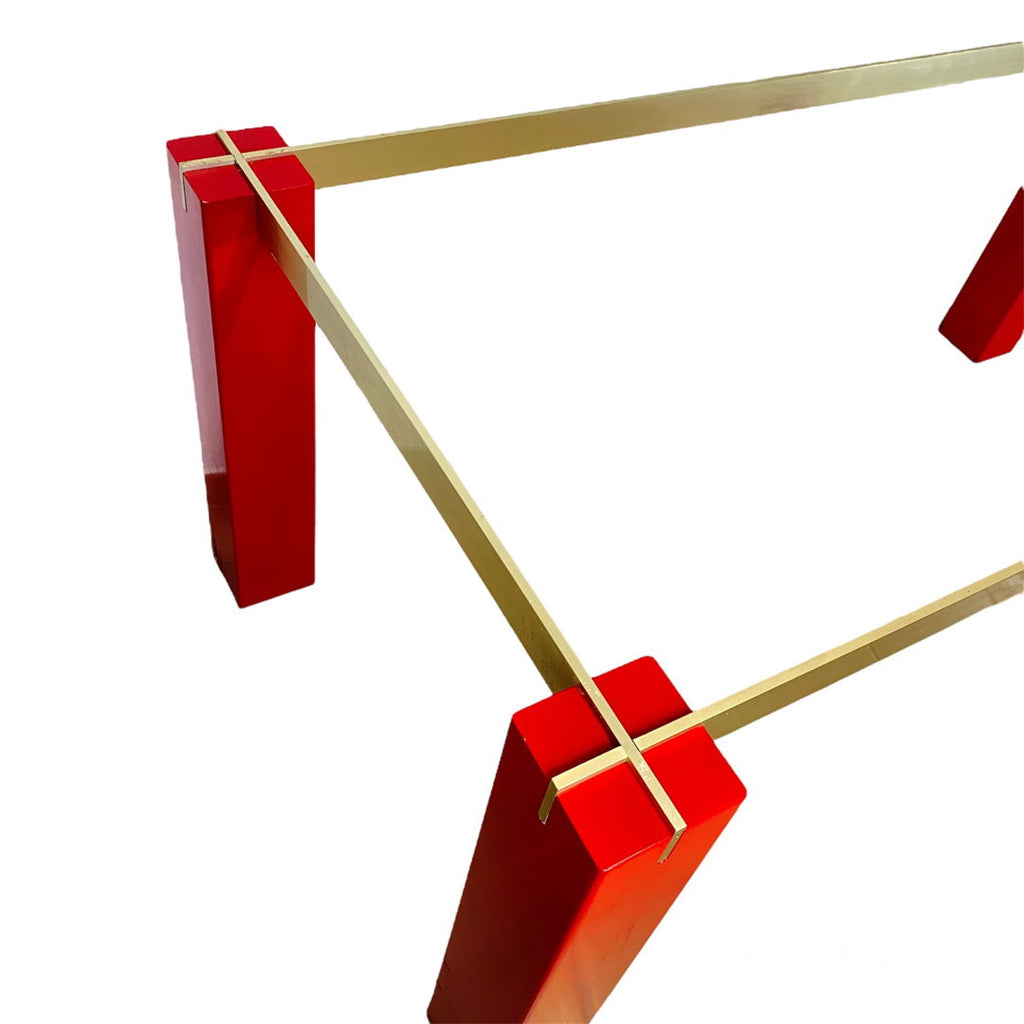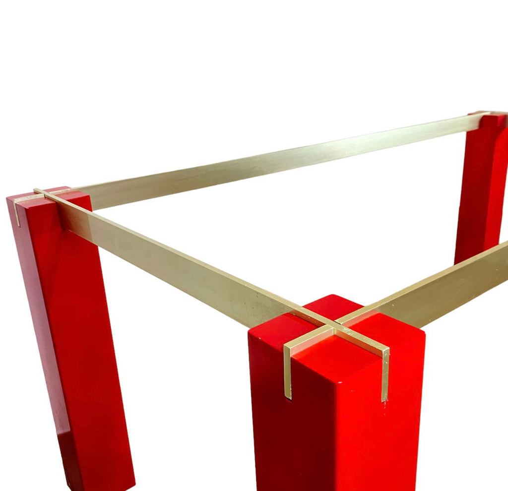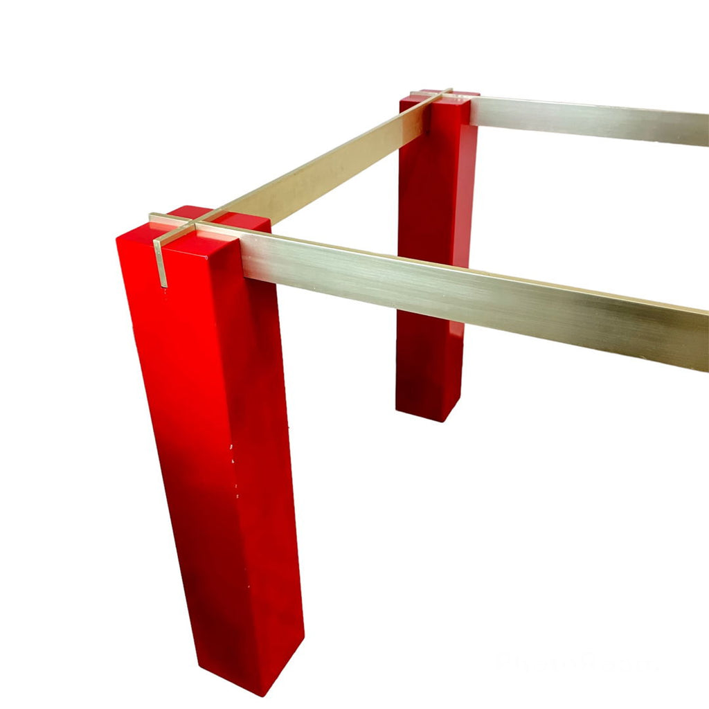 Renato Polidori for Skipper "Faraone" 테이블, 이탈리아 1970년대. 희귀 Renato Polidori 모드. 이 희귀한 빨간색의 "Faraone" 테이블은 시중에서 유일하게 판매되고 있습니다. 구조는 알루미늄 "황동 도금"이 있는 목재로 되어 있습니다. 테이블에는 크리스탈 탑이 없습니다. 폴리도리는 제한된 수량만 생산 및 판매될 것으로 예상됩니다. 표에 약간의 사용 흔적이 있을 수 있습니다. 치수 H: 71cm L: 200cm D: 100cm