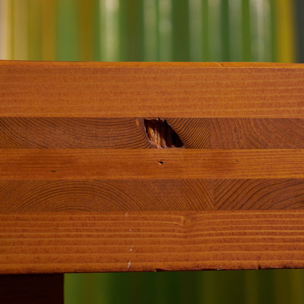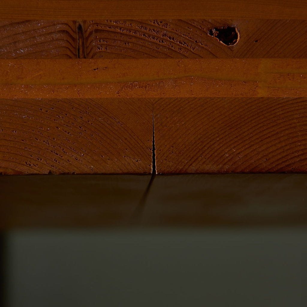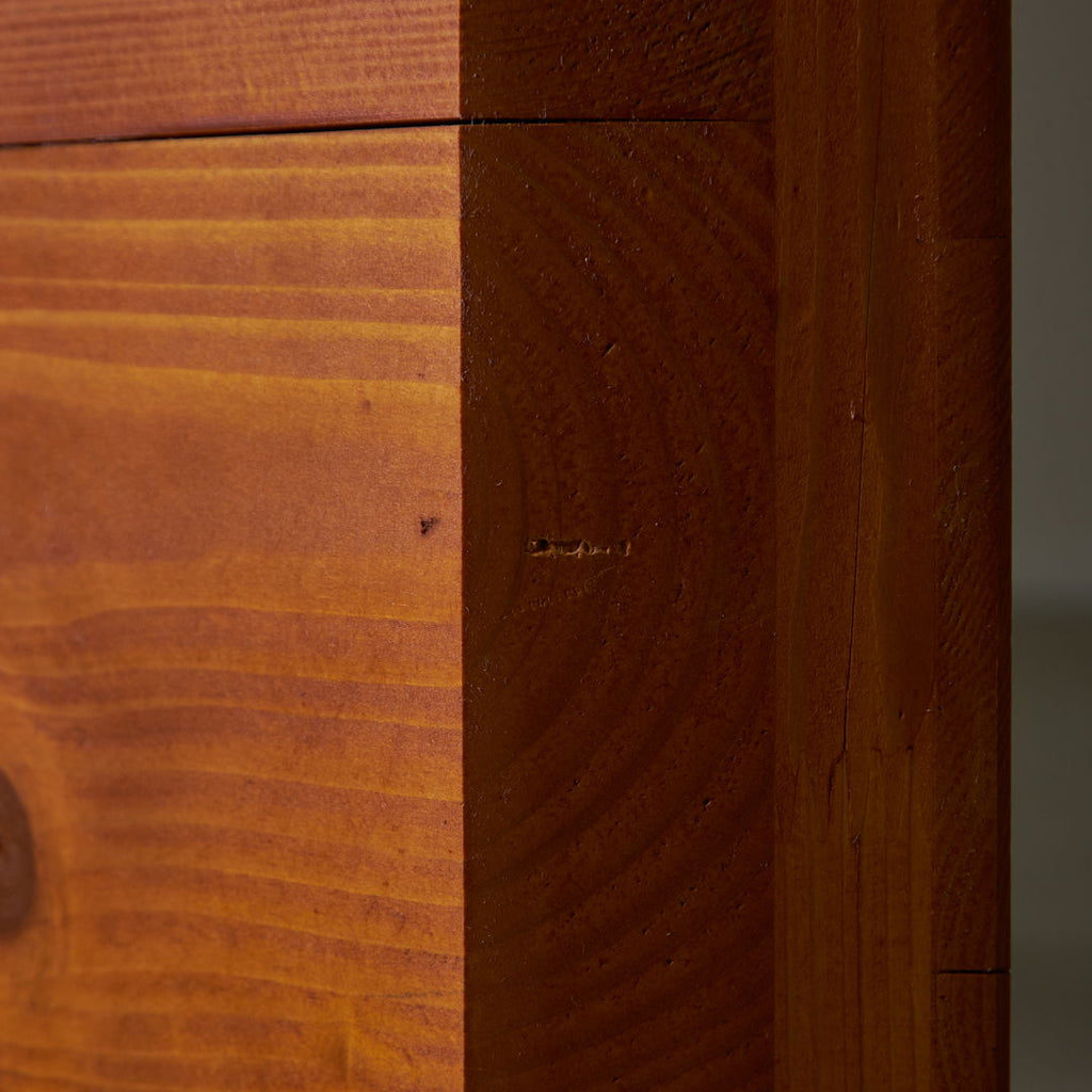 정사각형 상단과 육각형 다리가 있는 견고한 소나무 식탁입니다. 나무의 따뜻한 색감이 돋보이는 멋진 작품입니다. 전반적으로 좋은 상태이며, 목재의 특성을 더욱 강조하는 일부 갈라짐과 균열이 있습니다. 크기: 폭 100 x 높이 72 x 깊이 100cm