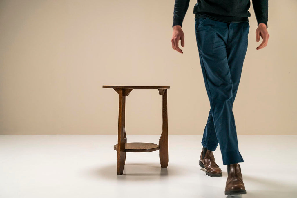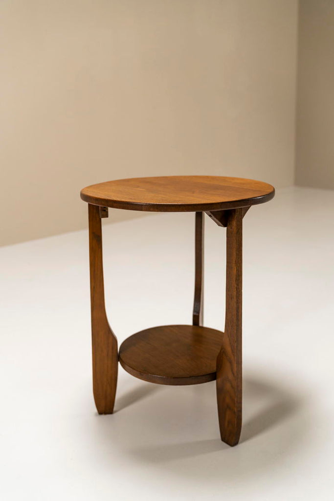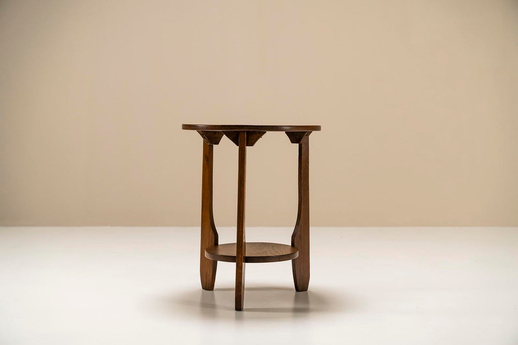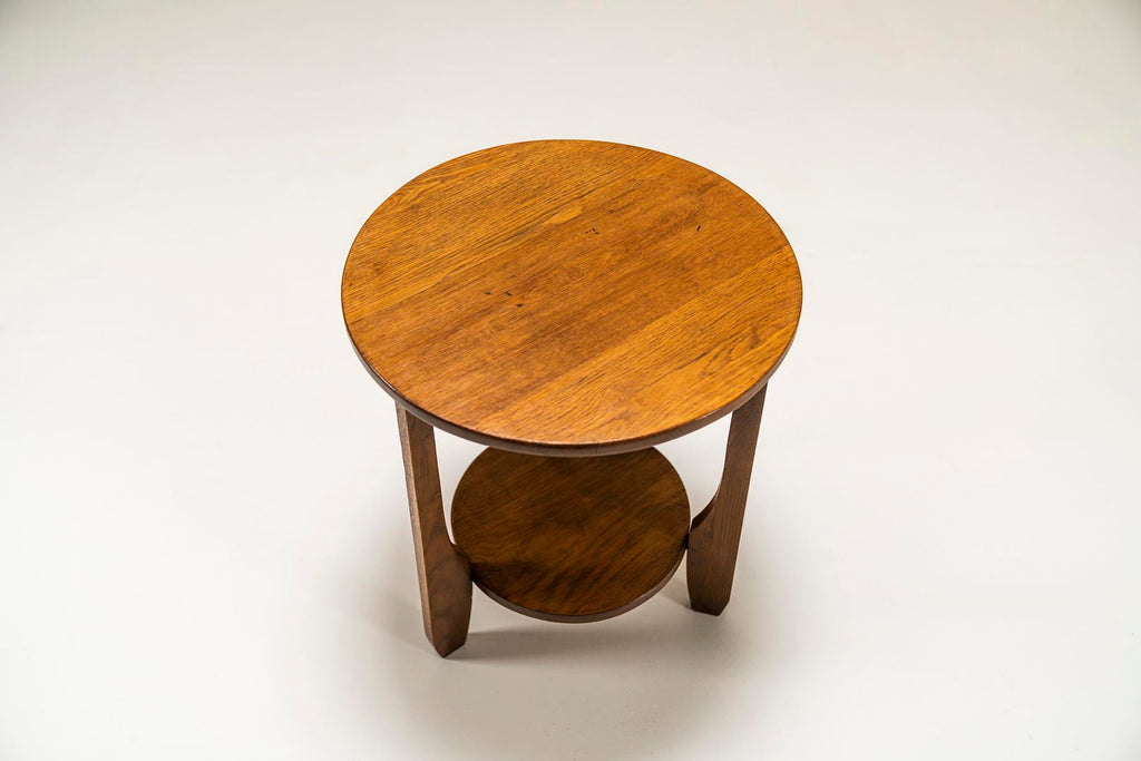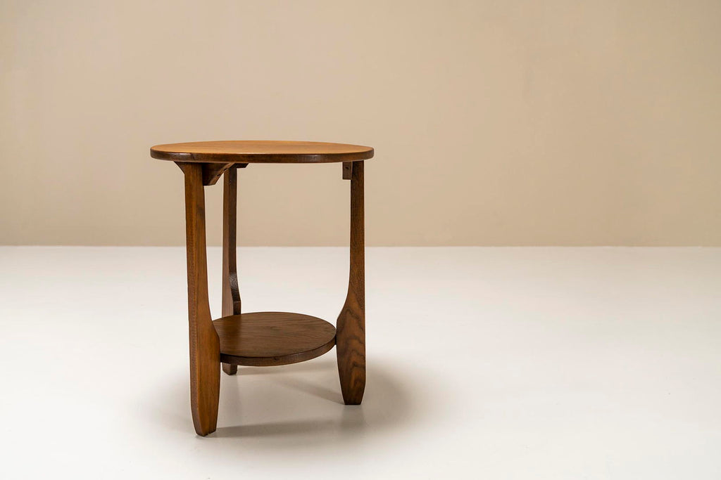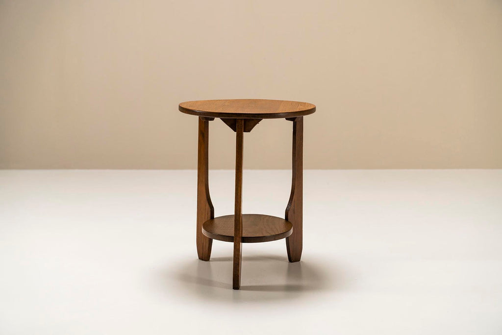 Round Amsterdam School Side Table In Oak, Netherlands 1930s