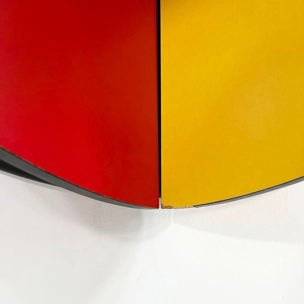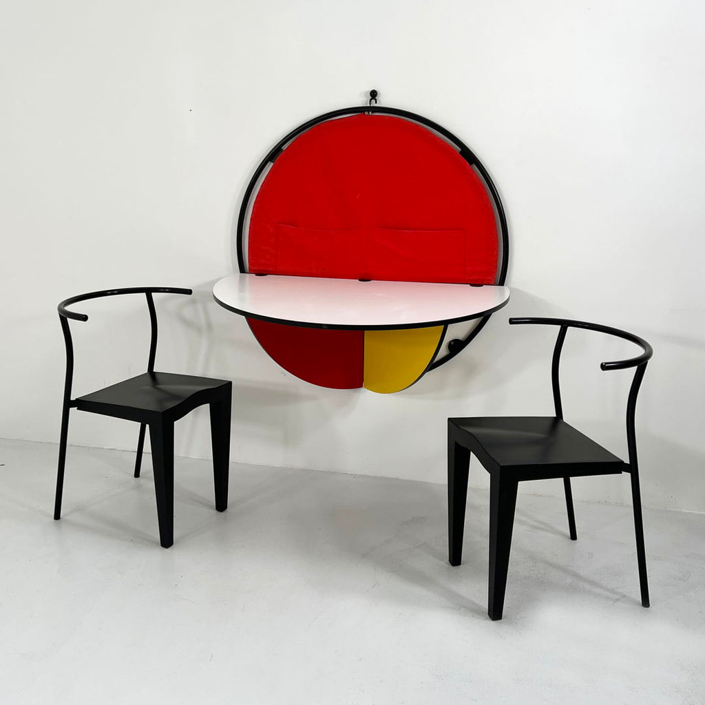 디자이너 - Giorgio Manzali 프로듀서 - Bonaldo 이탈리아 모델 - Rudy 디자인 기간 - 80년대 치수 - 폭 97 cm x 깊이 열림 62 cm - 닫힘 5 cm x 높이 103 cm 소재 - 금속, 라미네이트 색상 - 노란색, 빨간색, 흰색, 검정색 가벼운 착용 지속 나이와 사용에 따라. 가장자리에 약간의 흠집이 있습니다. 자세한 내용은 사진을 참조하세요.