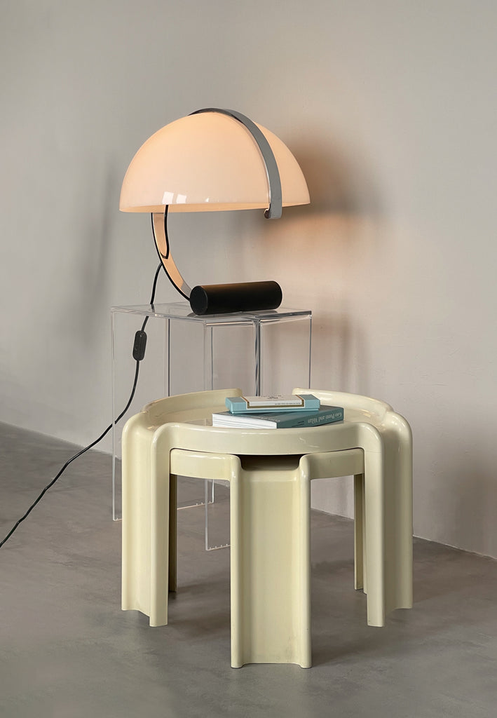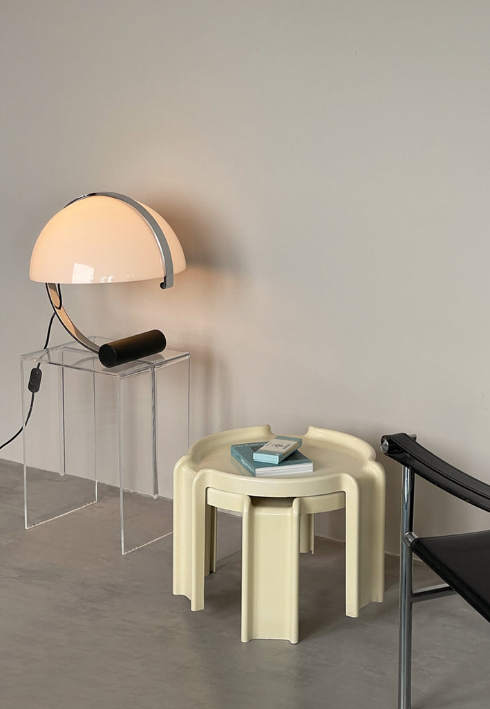 산업 디자인 협회 ADI의 회원으로서 Stoppino는 Arteluce 및 Kartell을 위한 많은 디자인을 남겼습니다. 이 네스팅 테이블은 Kartell 을 위한 디자인으로 스태킹을 한 상태에서도 사용성과 디자인을 해치지 않고 실용성 있는 빈티지 입니다.