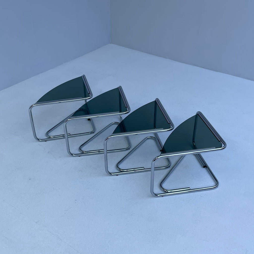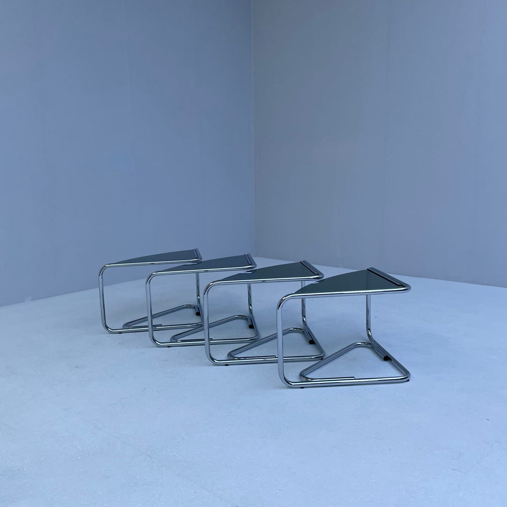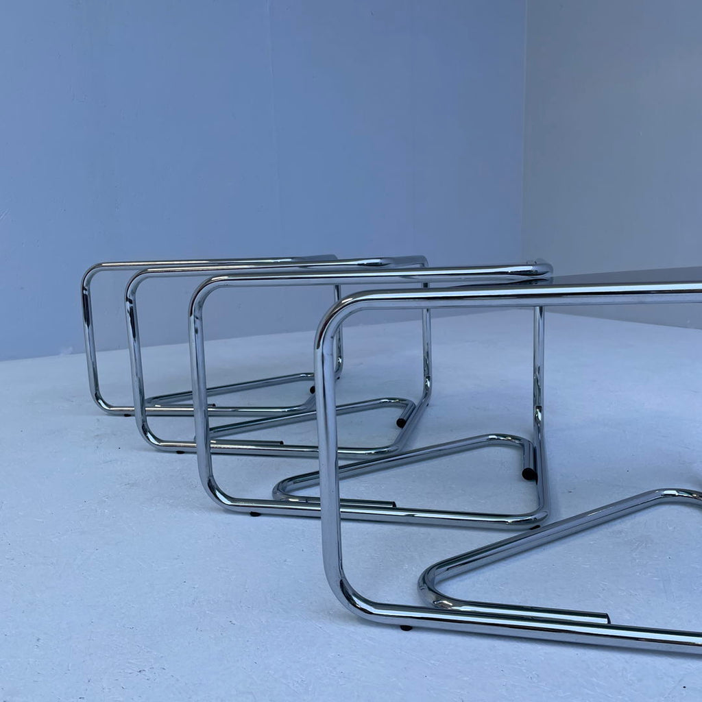 Set of 4 walnut Italian mid century chairs with rush seating