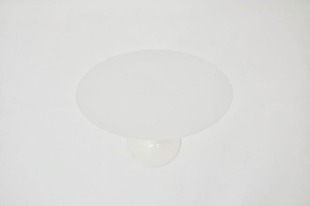 Eero Saarinen이 디자인하고 1960년대에 Knoll International에서 생산한 타원형 사이드 테이블. 스탬프 놀 인터내셔널. 테이블의 시간과 나이로 인한 마모.