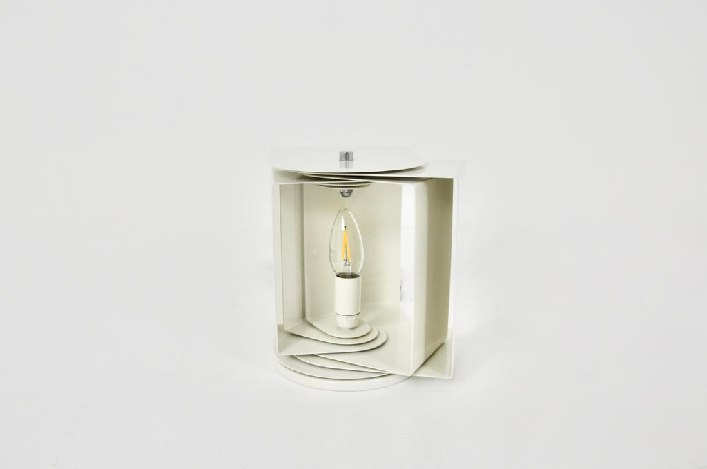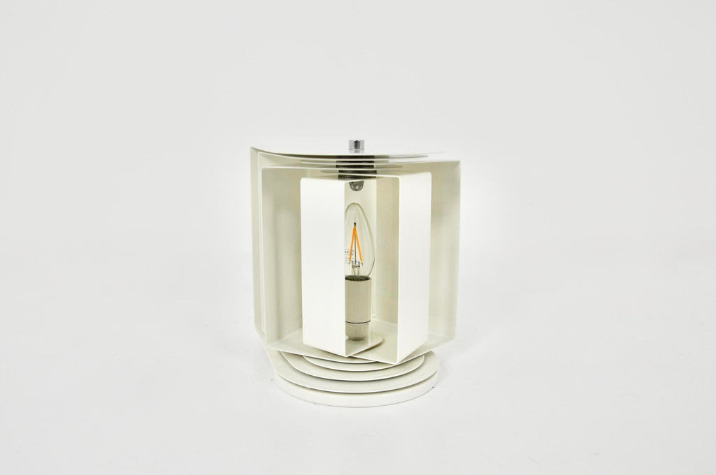 흰색 금속 회전 램프. 램프의 시간과 수명으로 인한 사용감이 보여집니다.