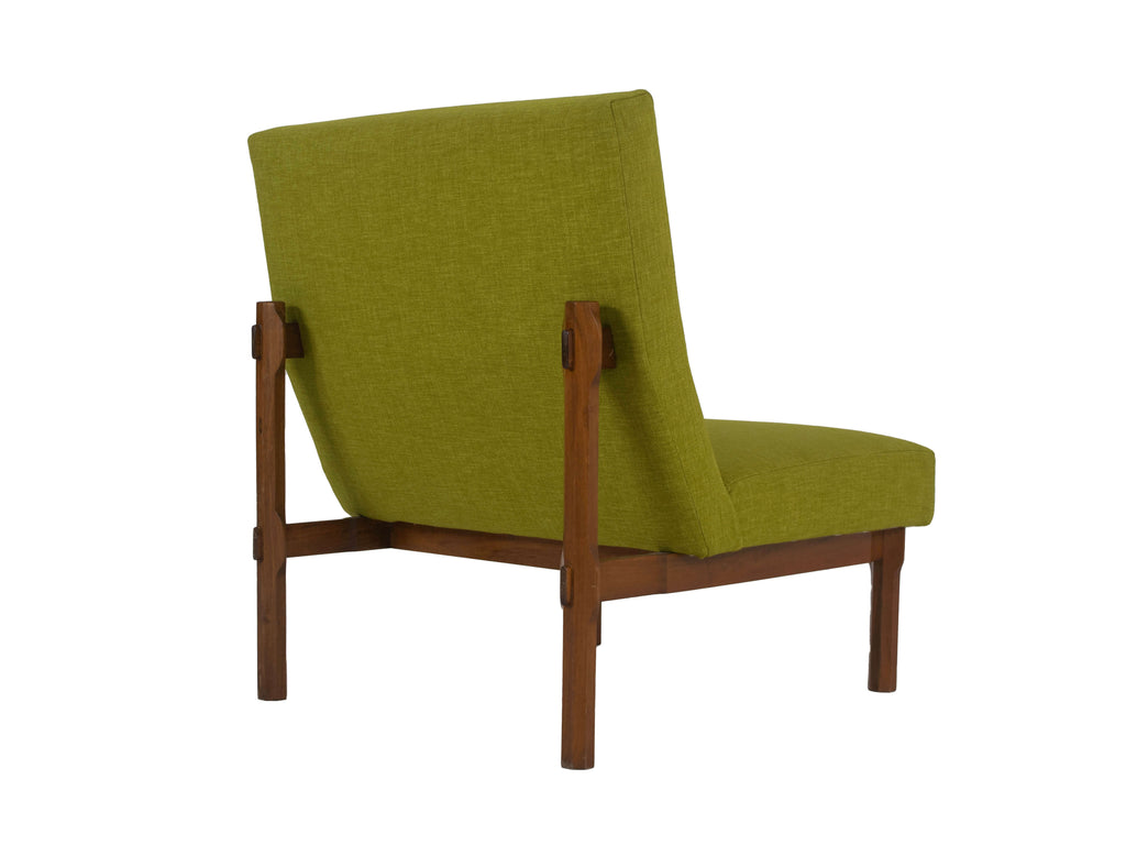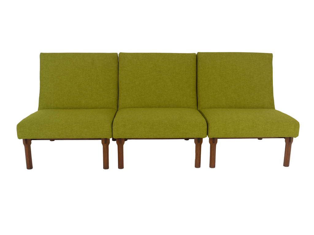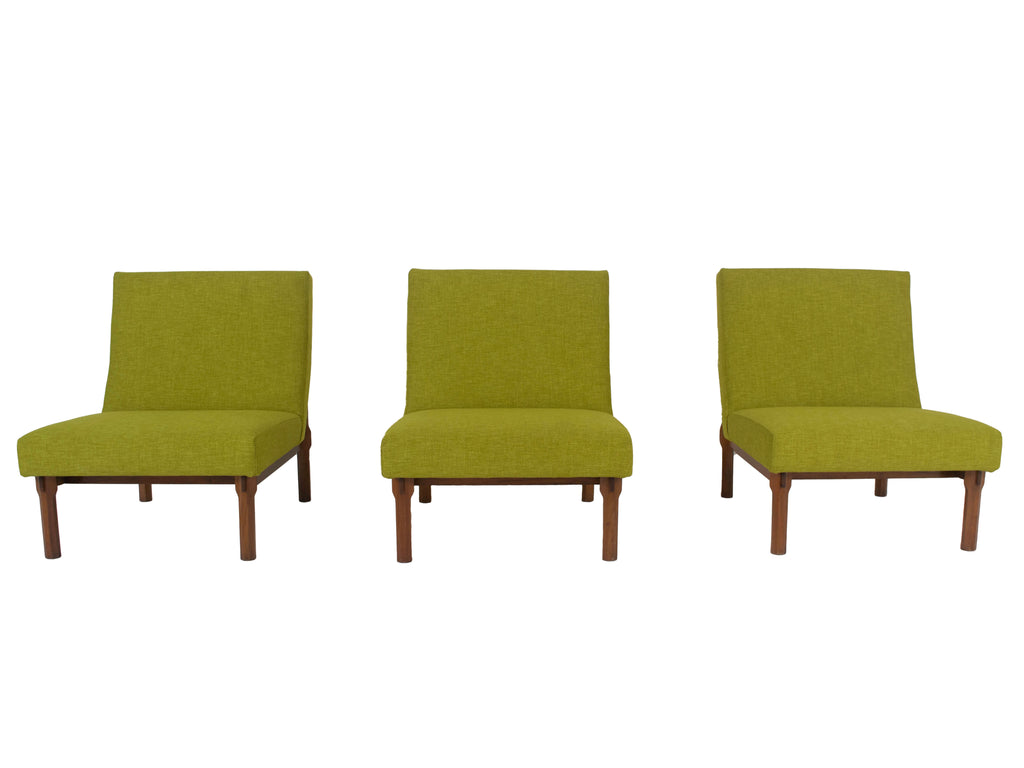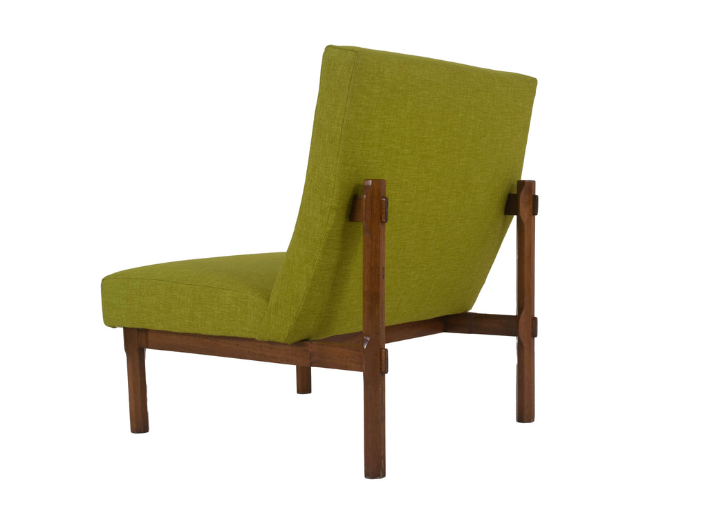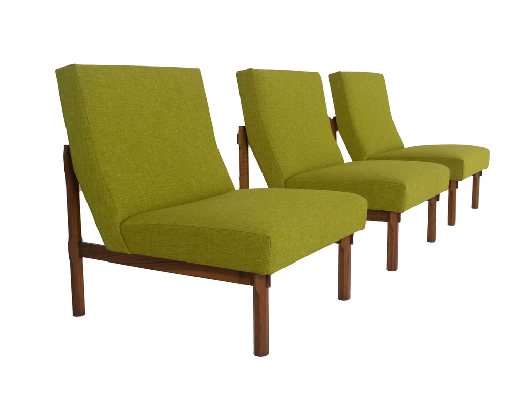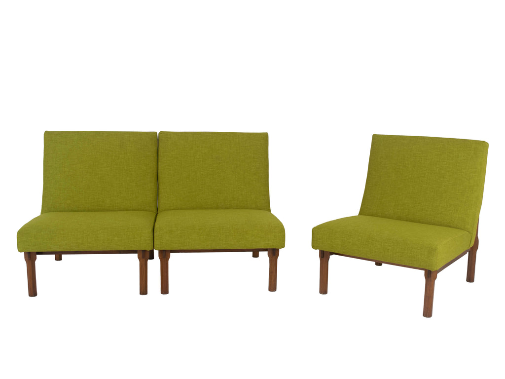 1960년대 이탈리아의 Cassina를 위해 제작된 Walnut Model 869의 3개의 Italian Modern Ico Parisi Chairs. 이 의자는 합치면 소파 역할도 할 수 있습니다. 그들은 녹색 패브릭으로 새로 덮개를 씌웠습니다(참조 그림 참조). 나무 프레임의 디테일은 놀랍고 '인터로킹' 구조를 가지고 있습니다. 시트는 팔각형 모양의 나무 스트럿으로 구성된 시스템으로 고정됩니다. 이들은 수평 슬랫과 맞물리도록 조각되고 잘립니다. 원목은 다양한 부품이 맞물리는 지점에서 우아하게 확장됩니다. 이 의자는 Grosseto의 Hotel Lorena를 제공하는 데에도 사용되었습니다. 이 세트는 좋은 상태입니다. Domus n.385, dicembre 1961, page 43 – 48 및 책 'Ico Parisi Design Catalogo Ragionato 1936-1960', page 543에 실려 있습니다. 언급된 가격은 3개의 전체 의자 세트에 대한 것입니다.